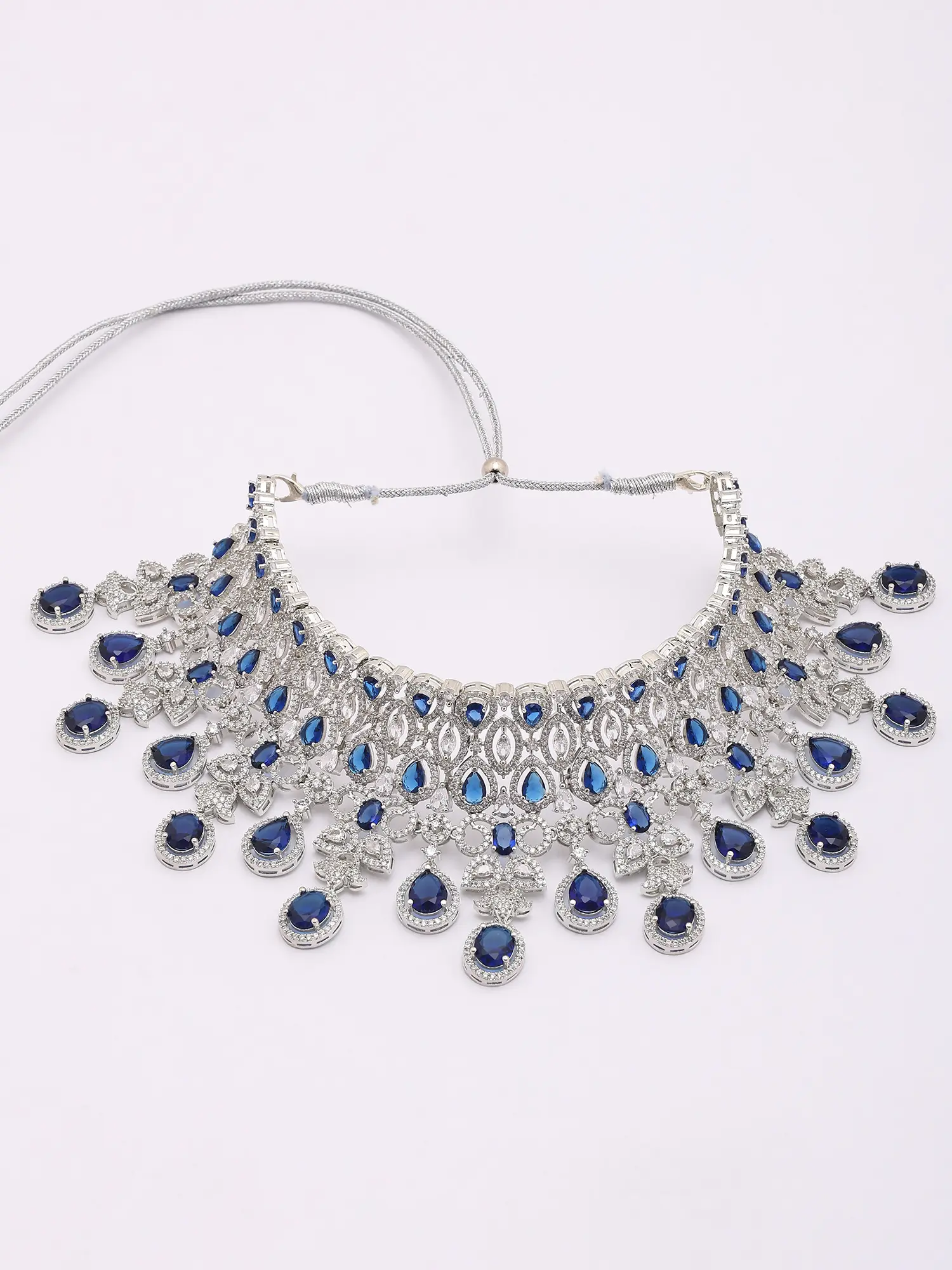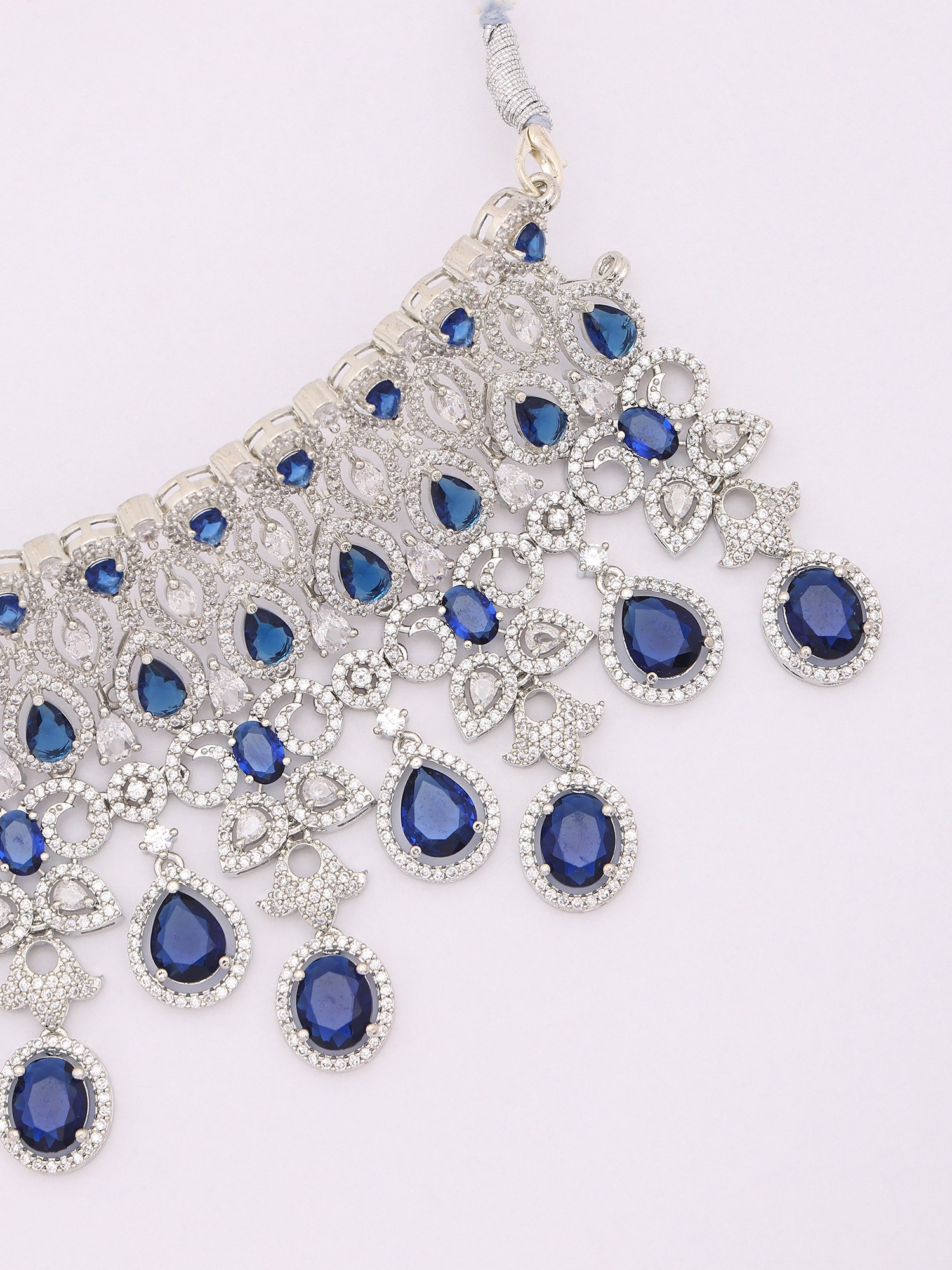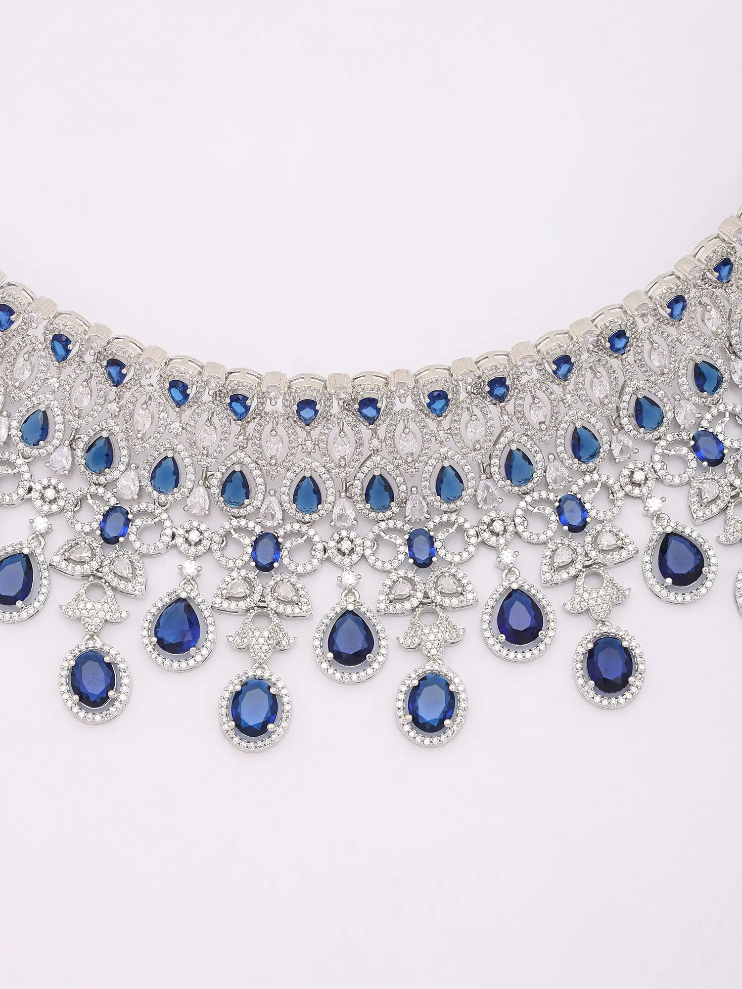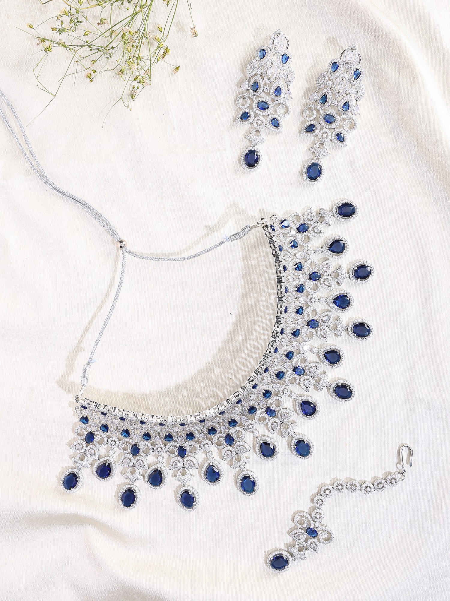 Royal Blue American Diamond Bridal Necklace Set with Maang Tikka