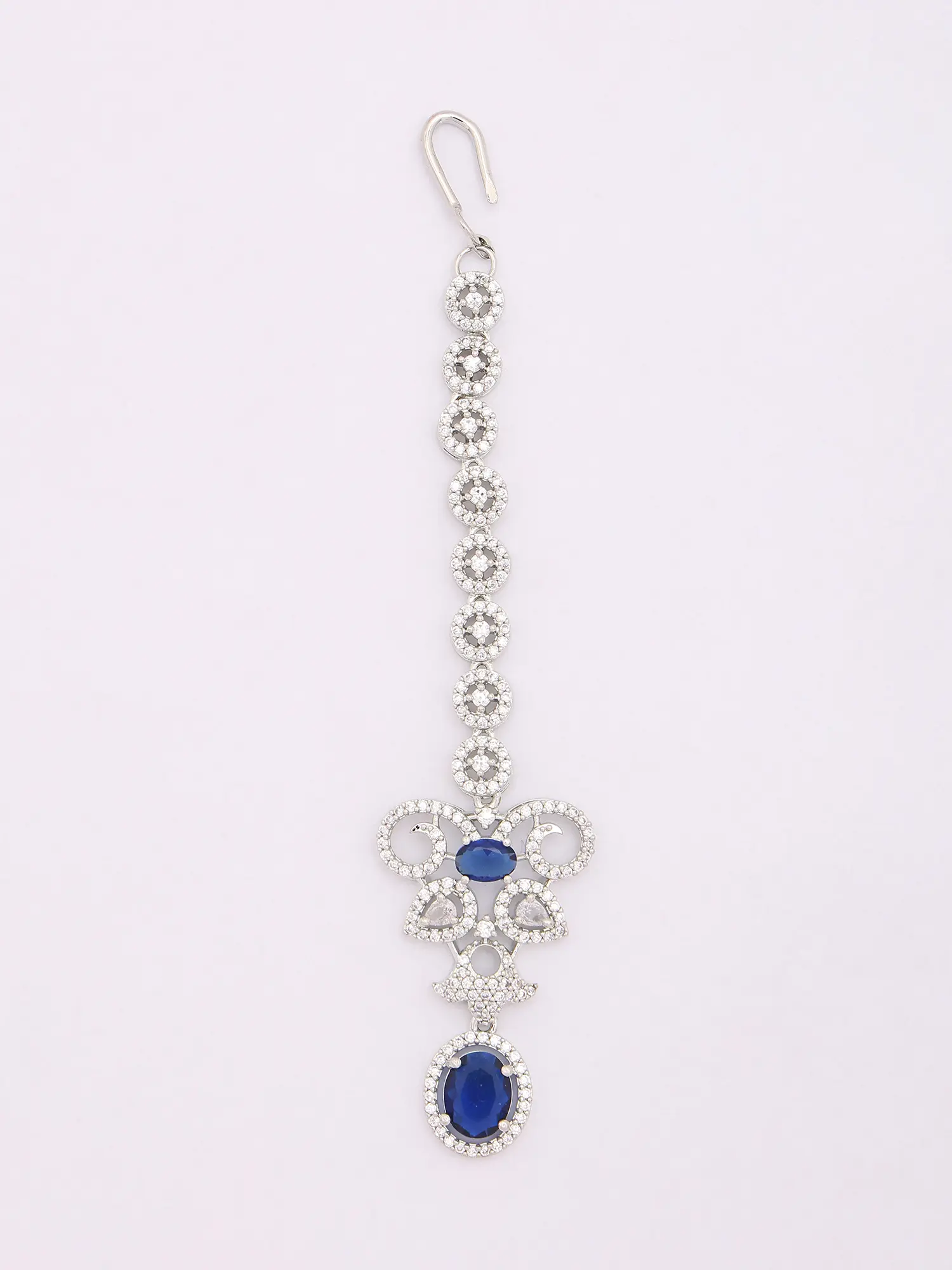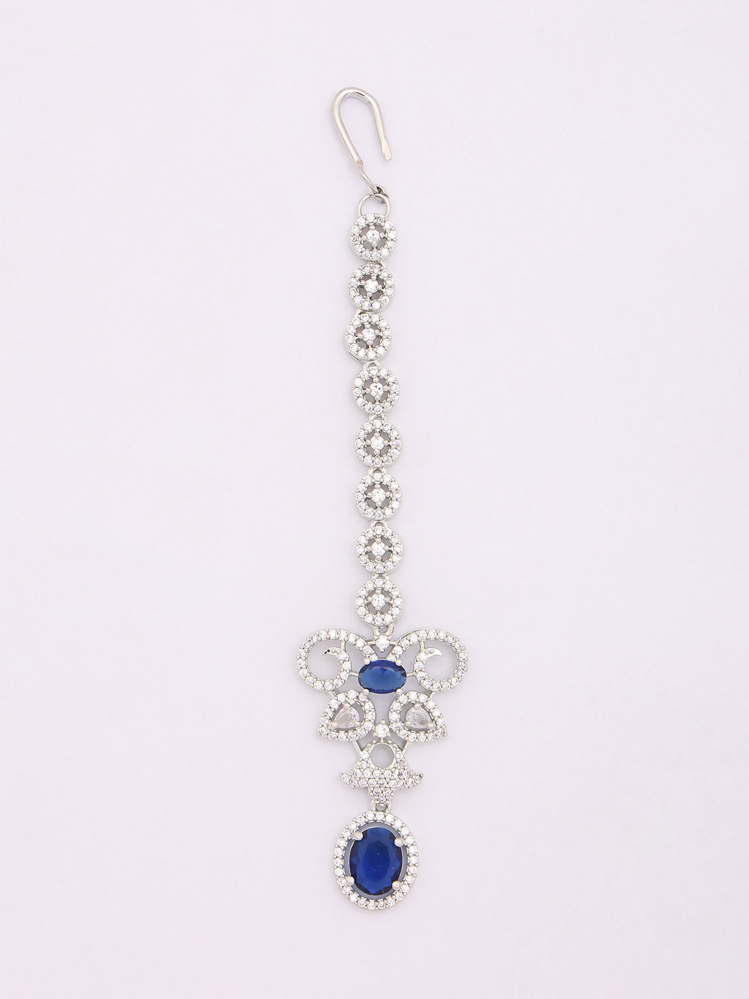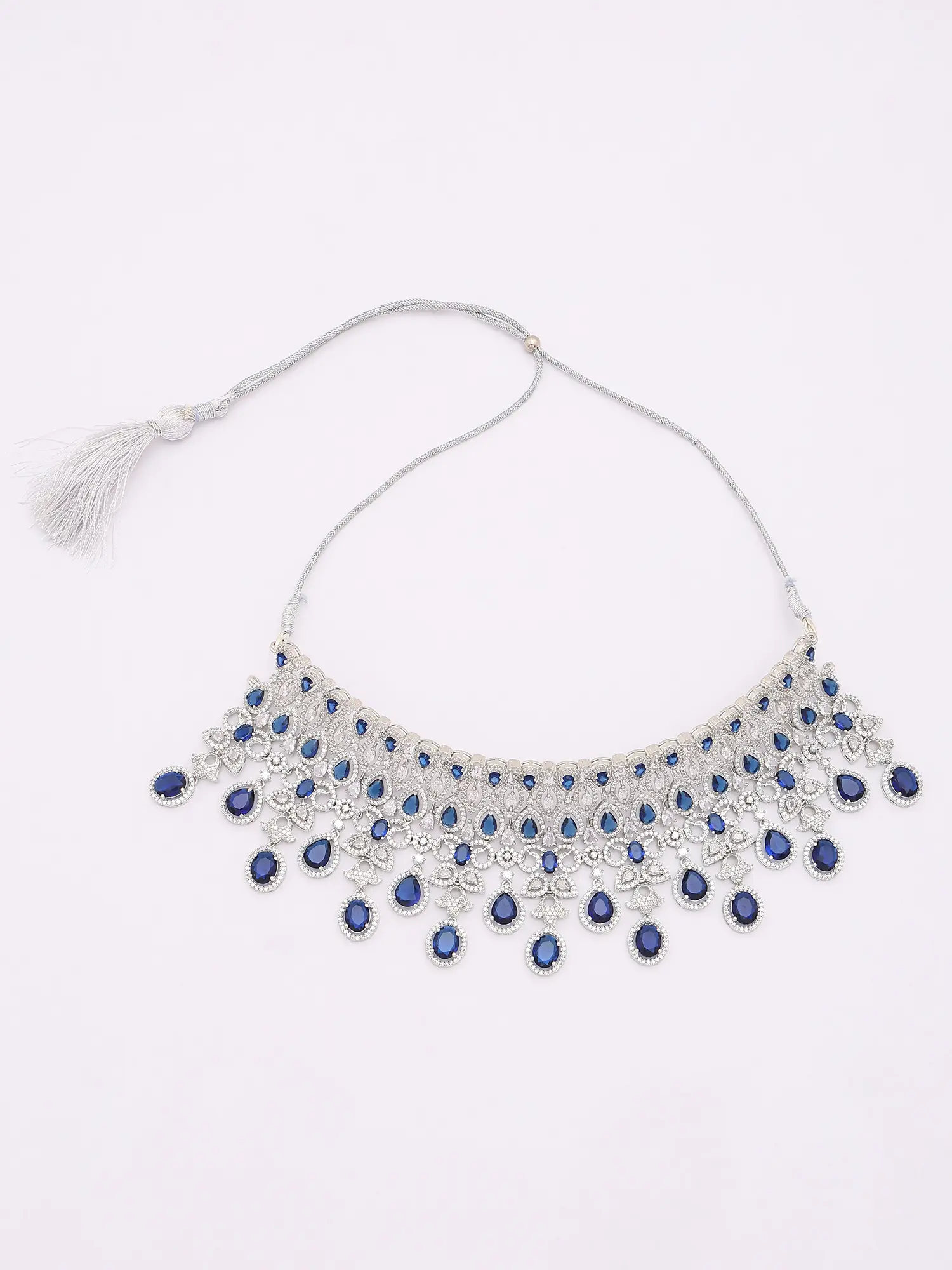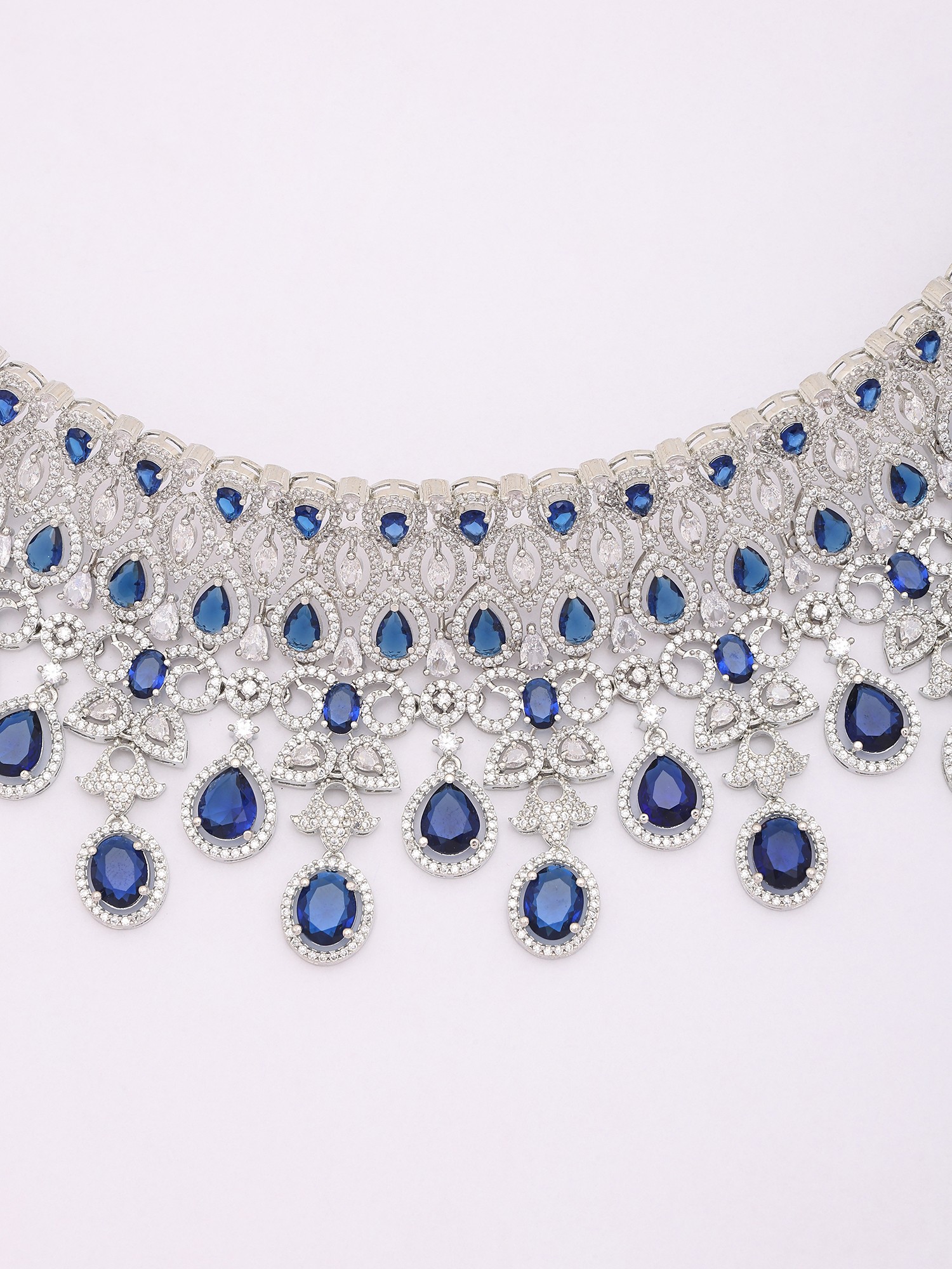 Royal Blue American Diamond Bridal Necklace Set with Maang Tikka