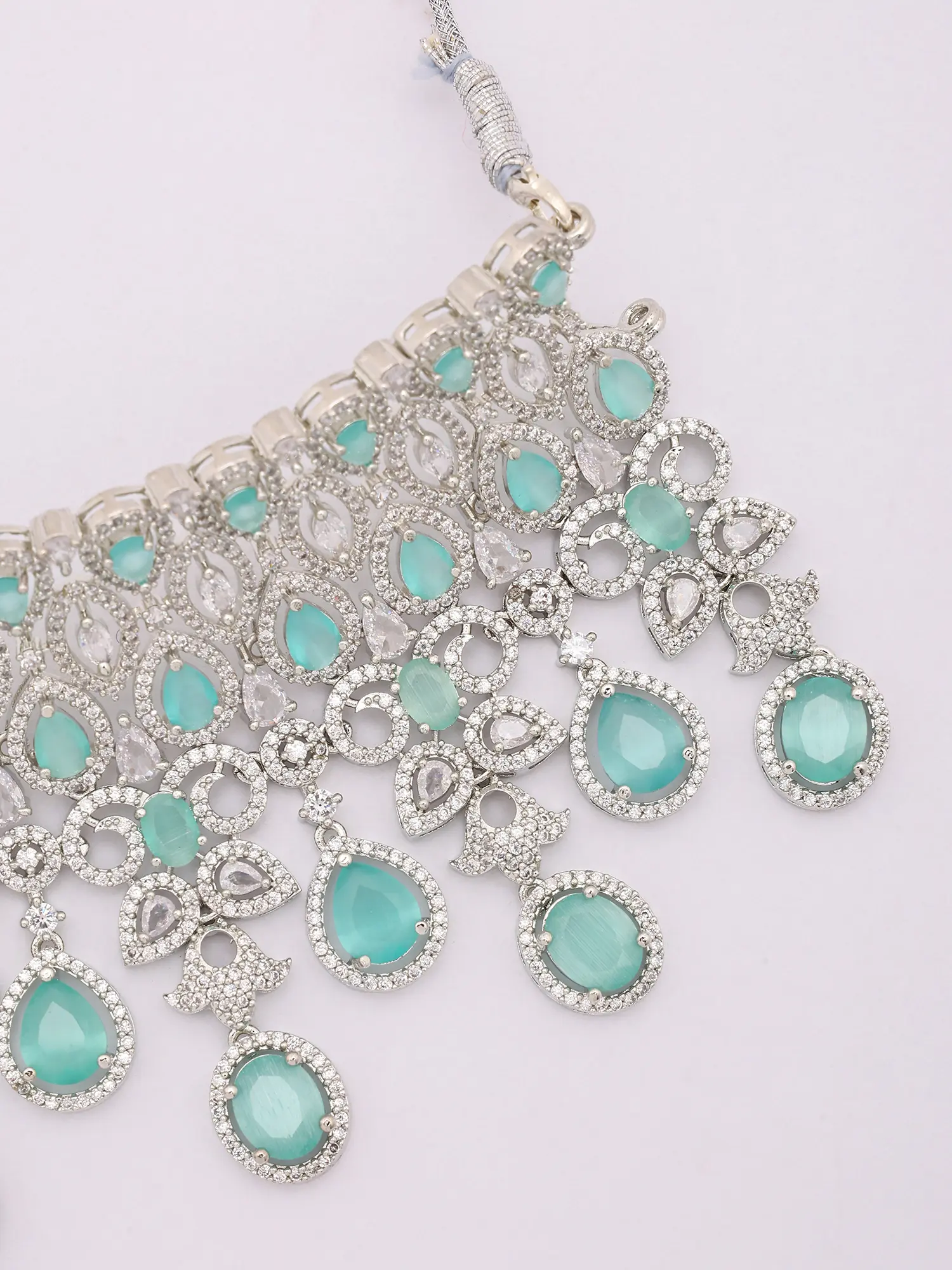 Bridal Necklace Set with Teardrop American Diamonds and Colorful Gemstones