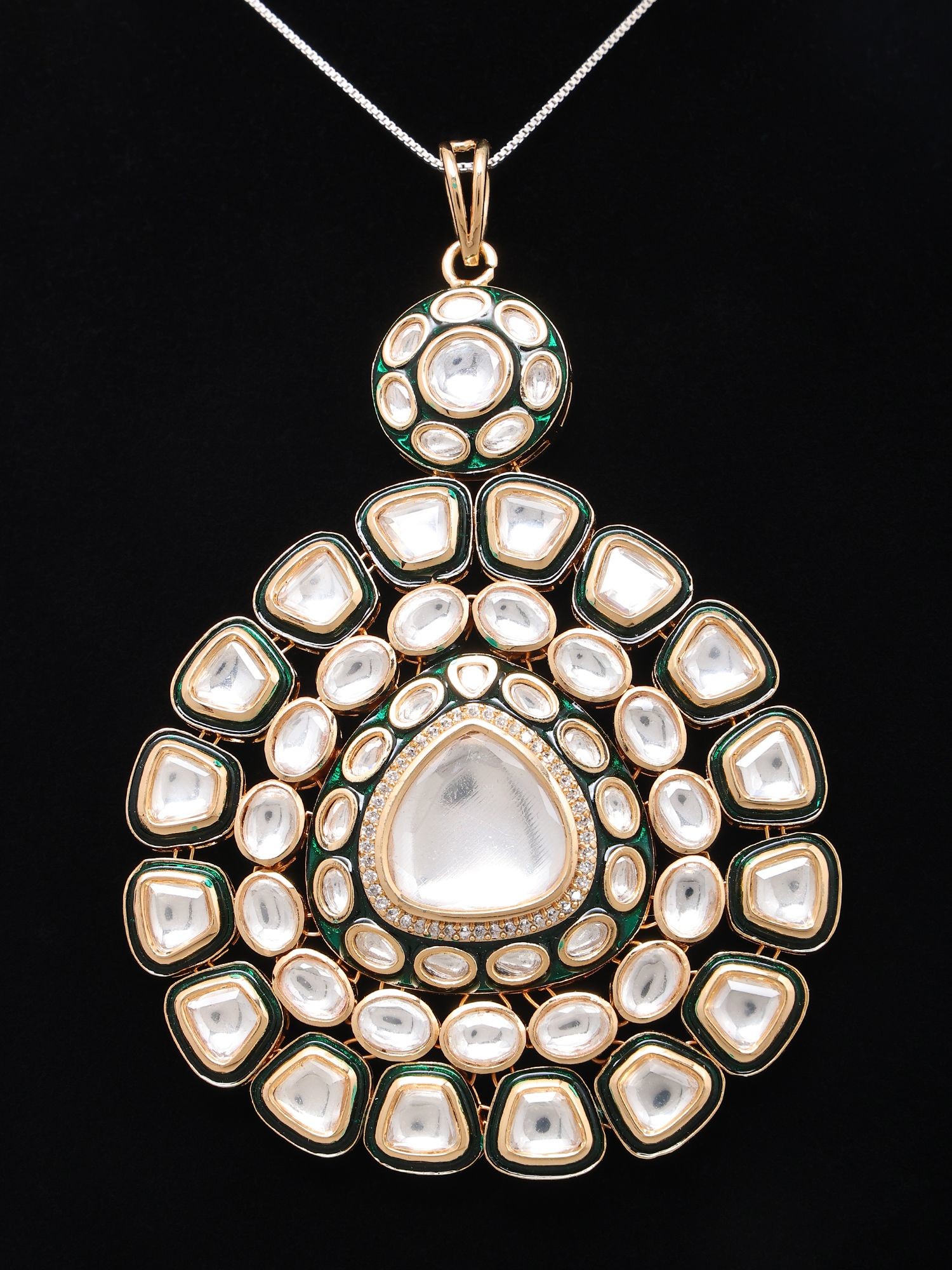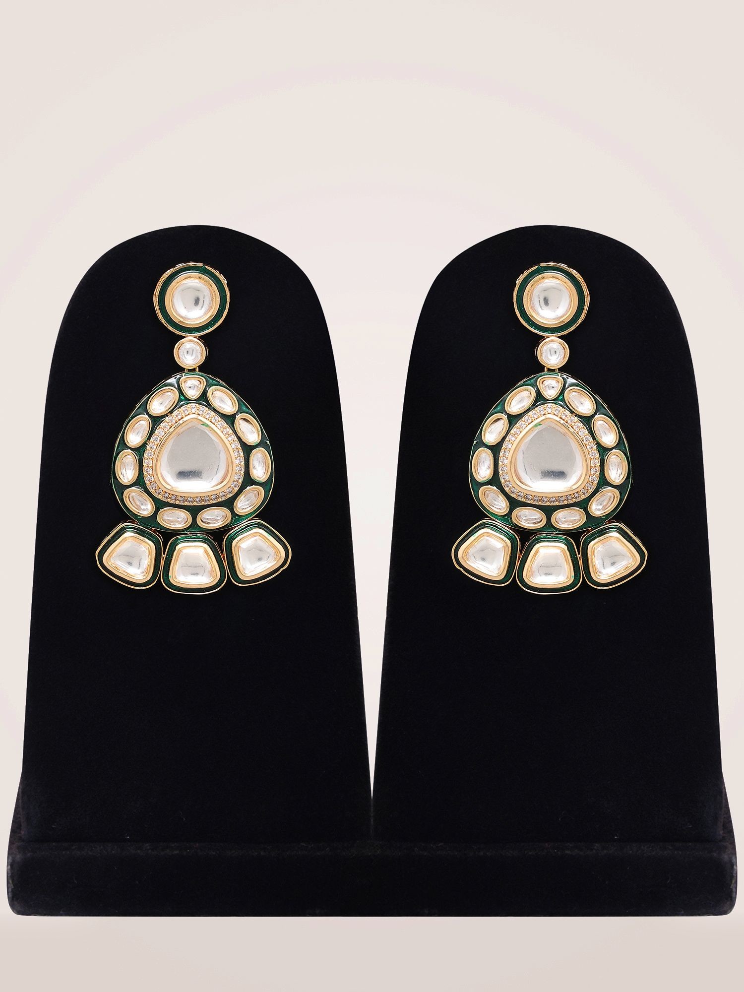 Adorned with sparkling polki stones for a brilliant finish.