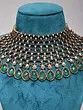 Bridal Kundan Choker Necklace Set with Sea Green Stones and Maang Tikka