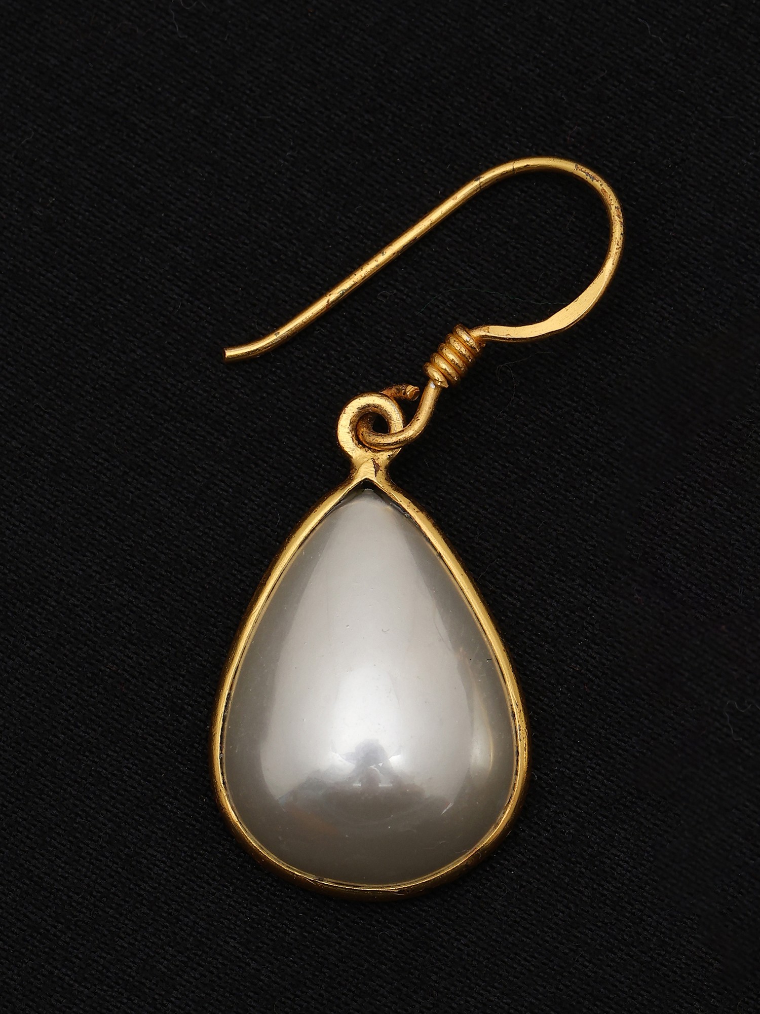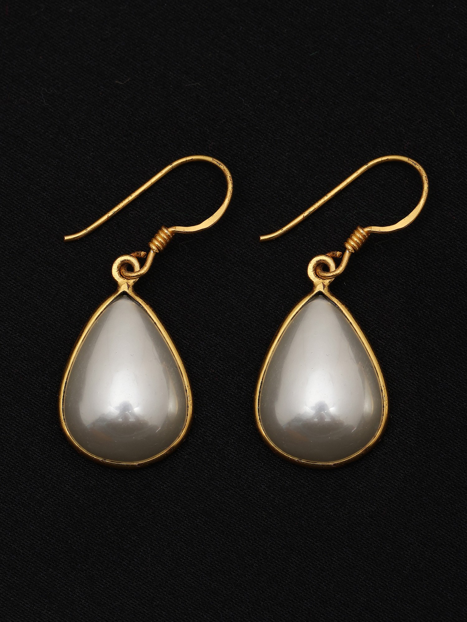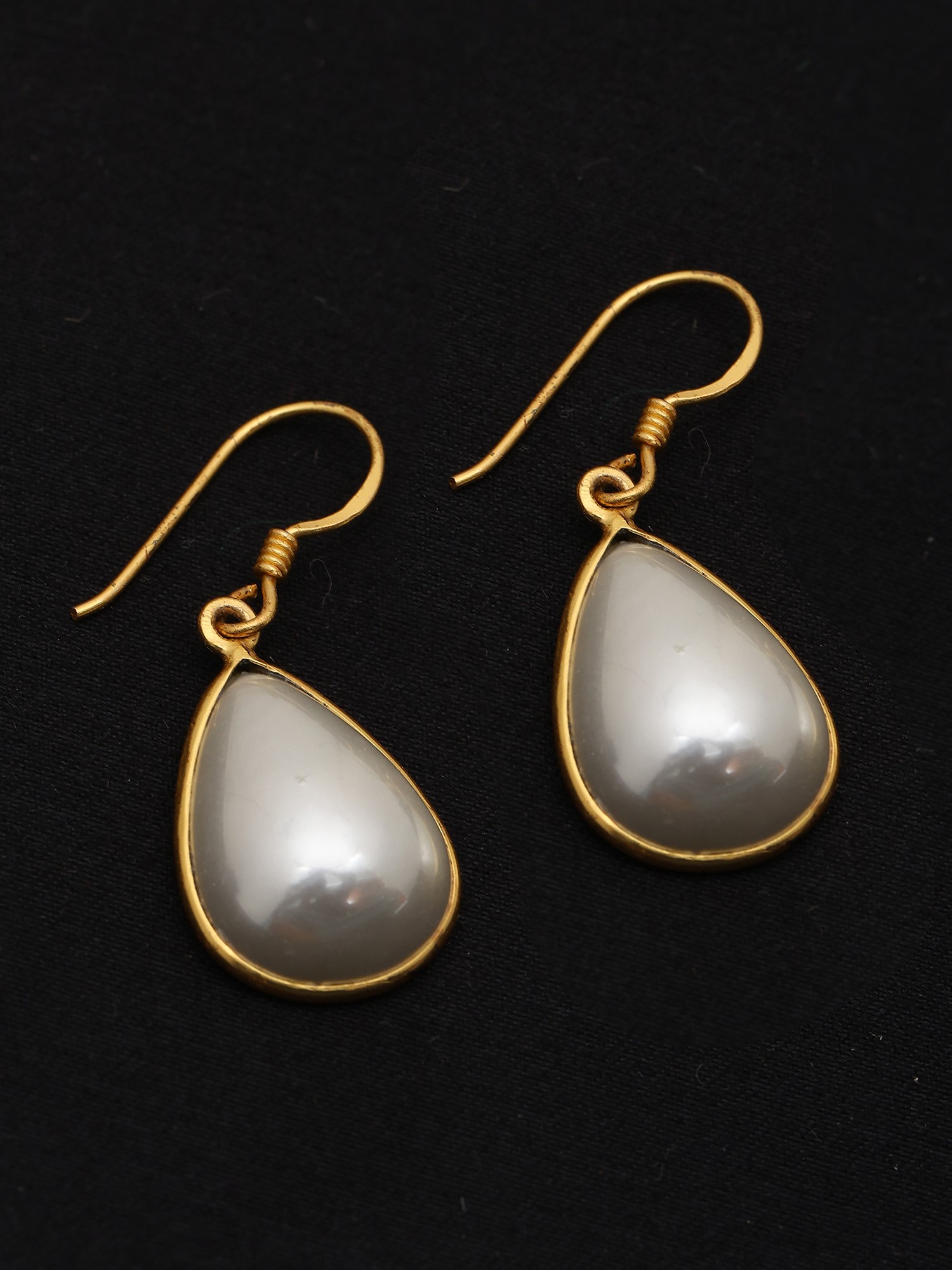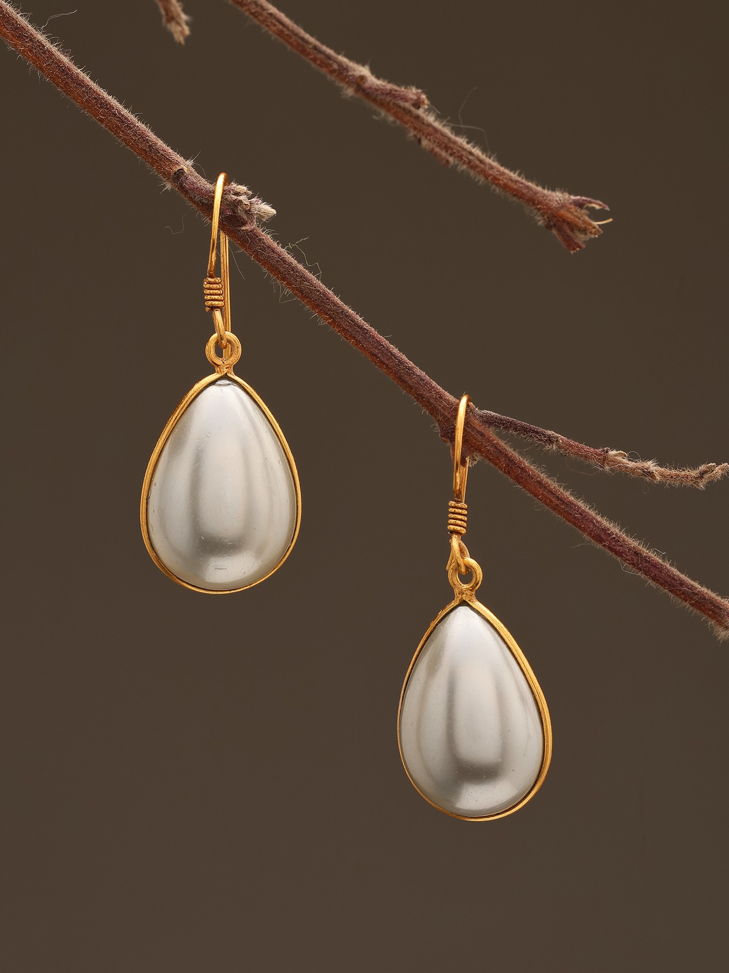 These stunning earrings are made from sterling silver, which has been plated with a layer of gold to give it a rich, warm color. This not only enhances the aesthetic appeal but also provides added durability and resistance to tarnish, ensuring that your earrings retain their luster for years to come. The lustrous pearl is carefully chosen for its smooth surface and radiant sheen, adding a touch of luxury to the overall design. The meticulous craftsmanship is evident in every detail, from the carefully shaped pearl to the secure and comfortable hook closure.