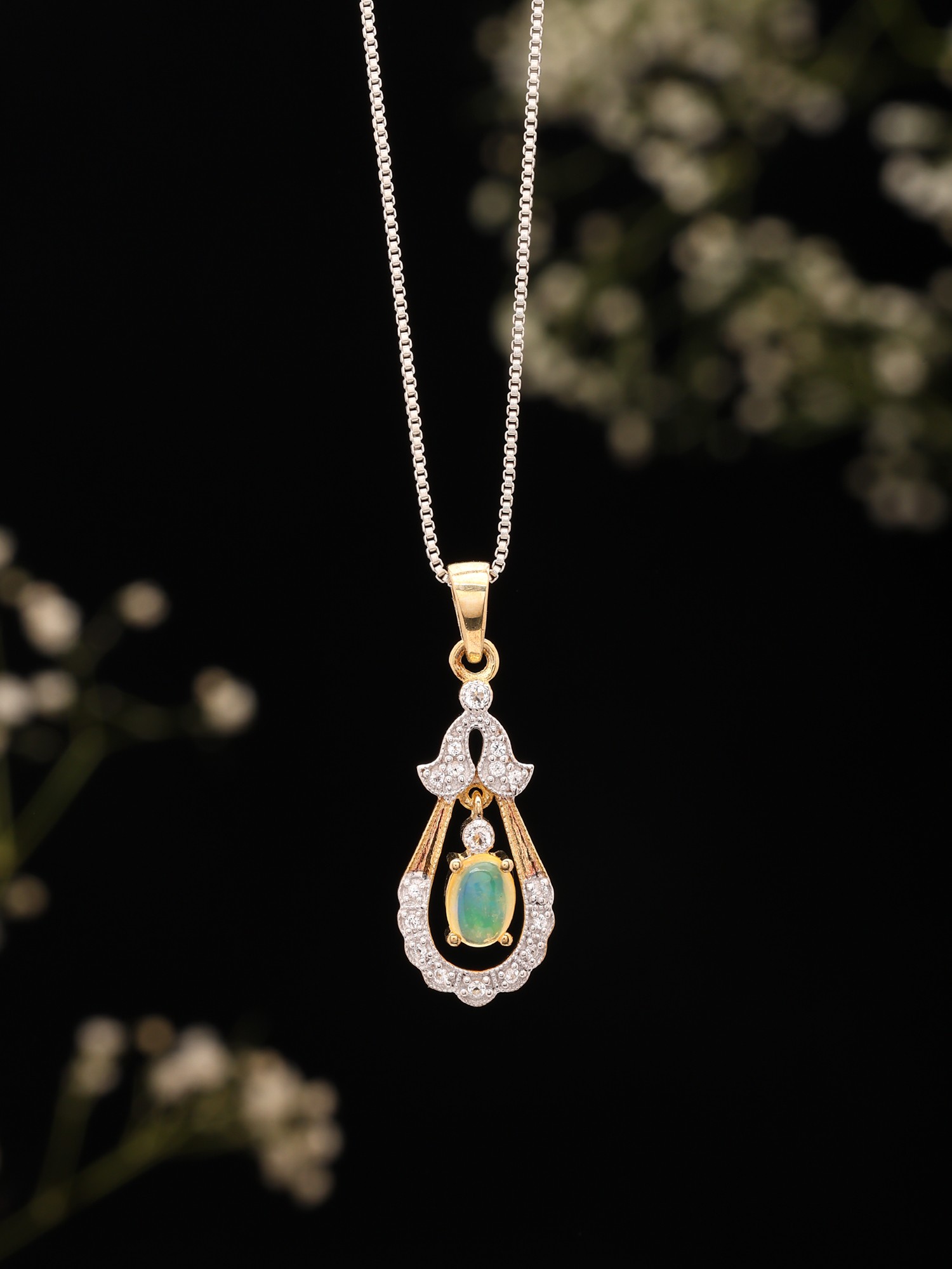 Floral Cabochon Ethiopian Opal Pendant