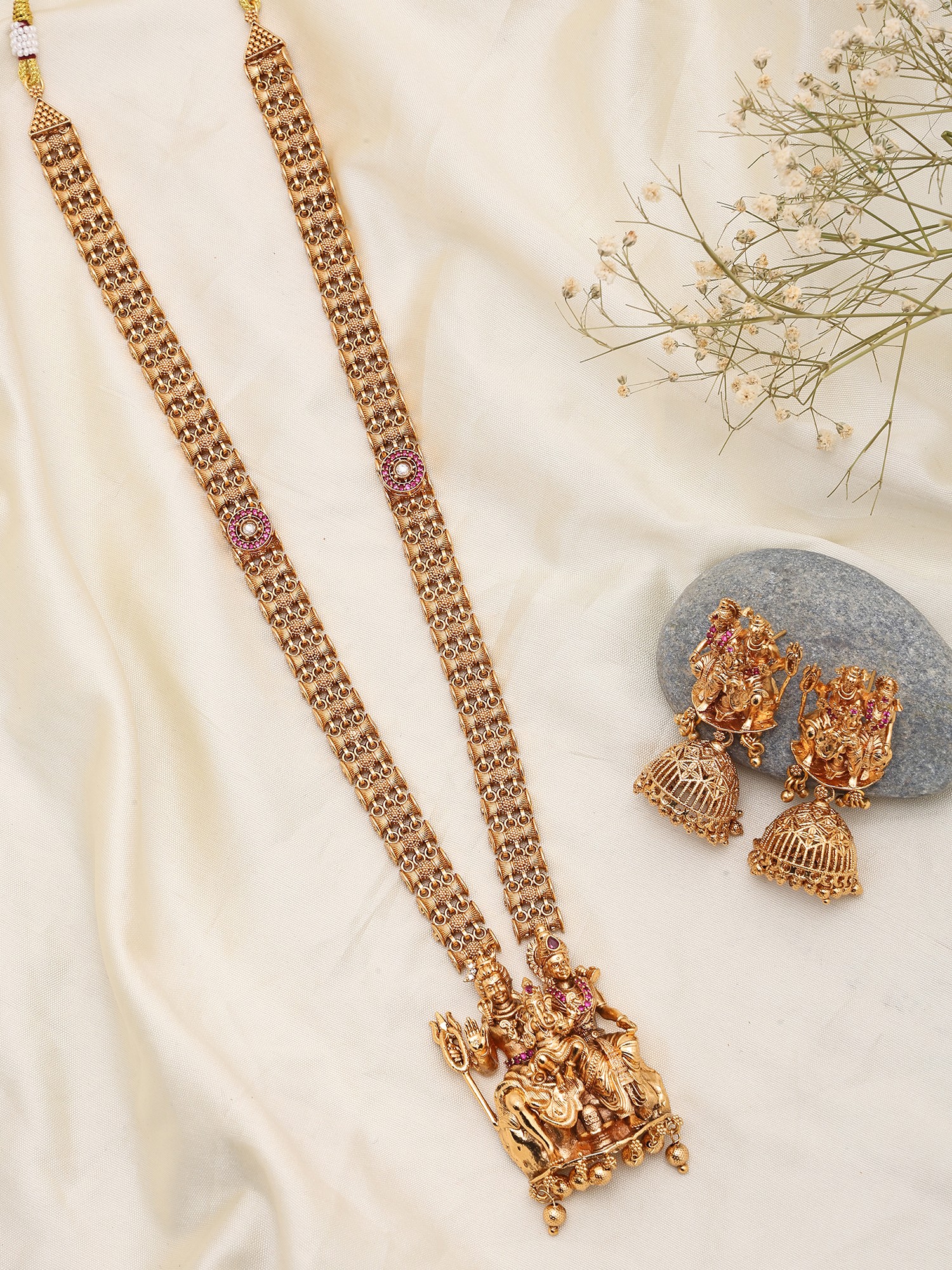 Temple-Inspired Deity Shiva, Parvati and Ganesha Long Necklace & Earrings Set