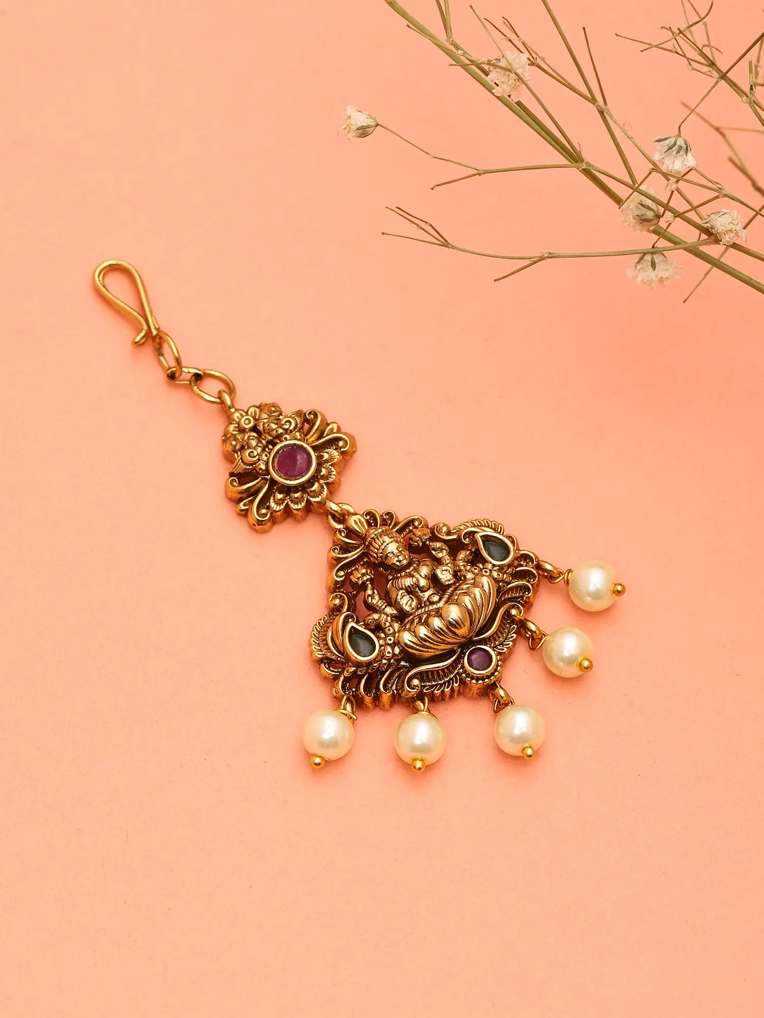 Stone Studded Goddess Lakshmi Maang Tikka
