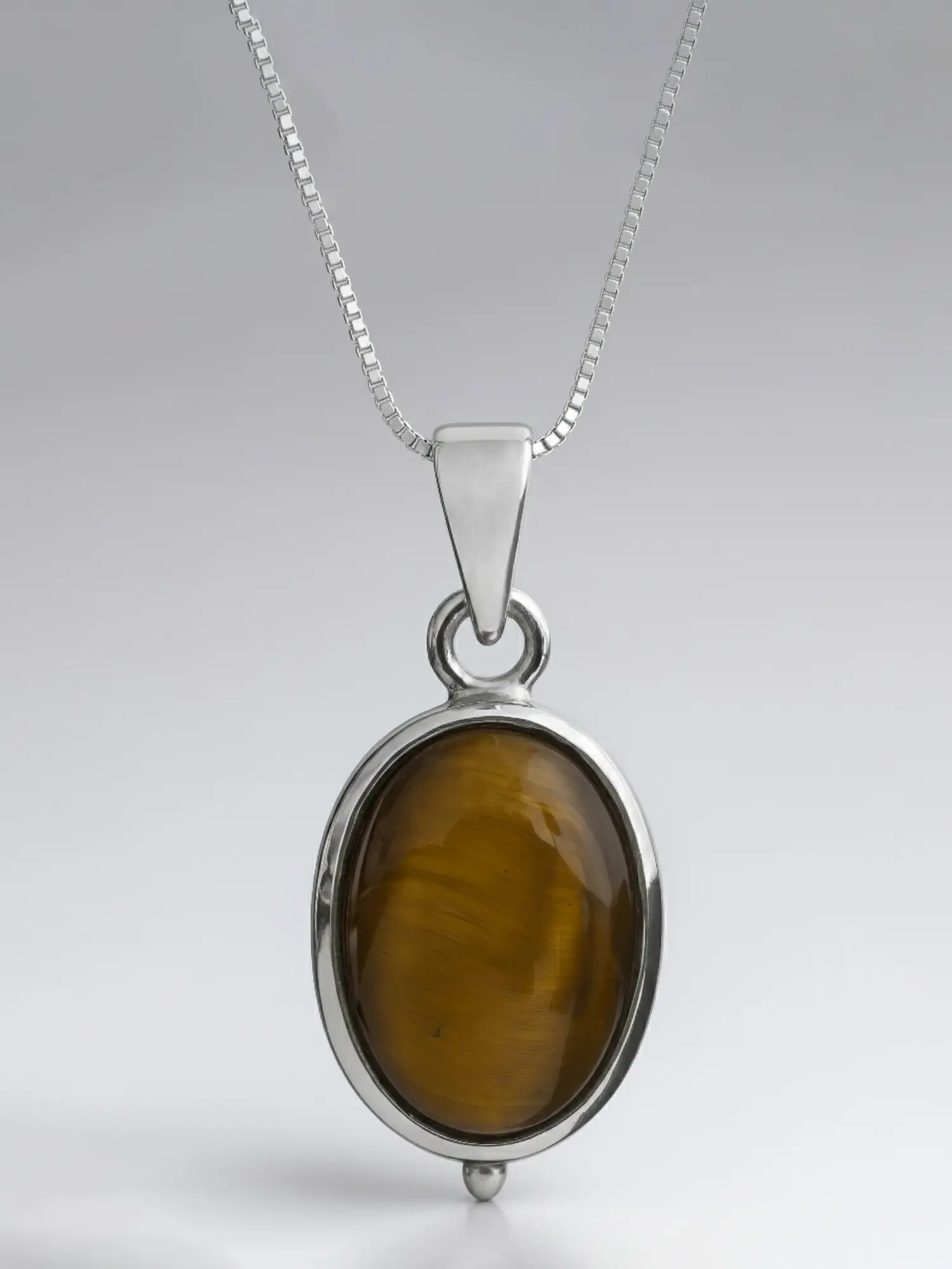 Small Oval Shaped Tiger Eye in Sterling Silver Pendant