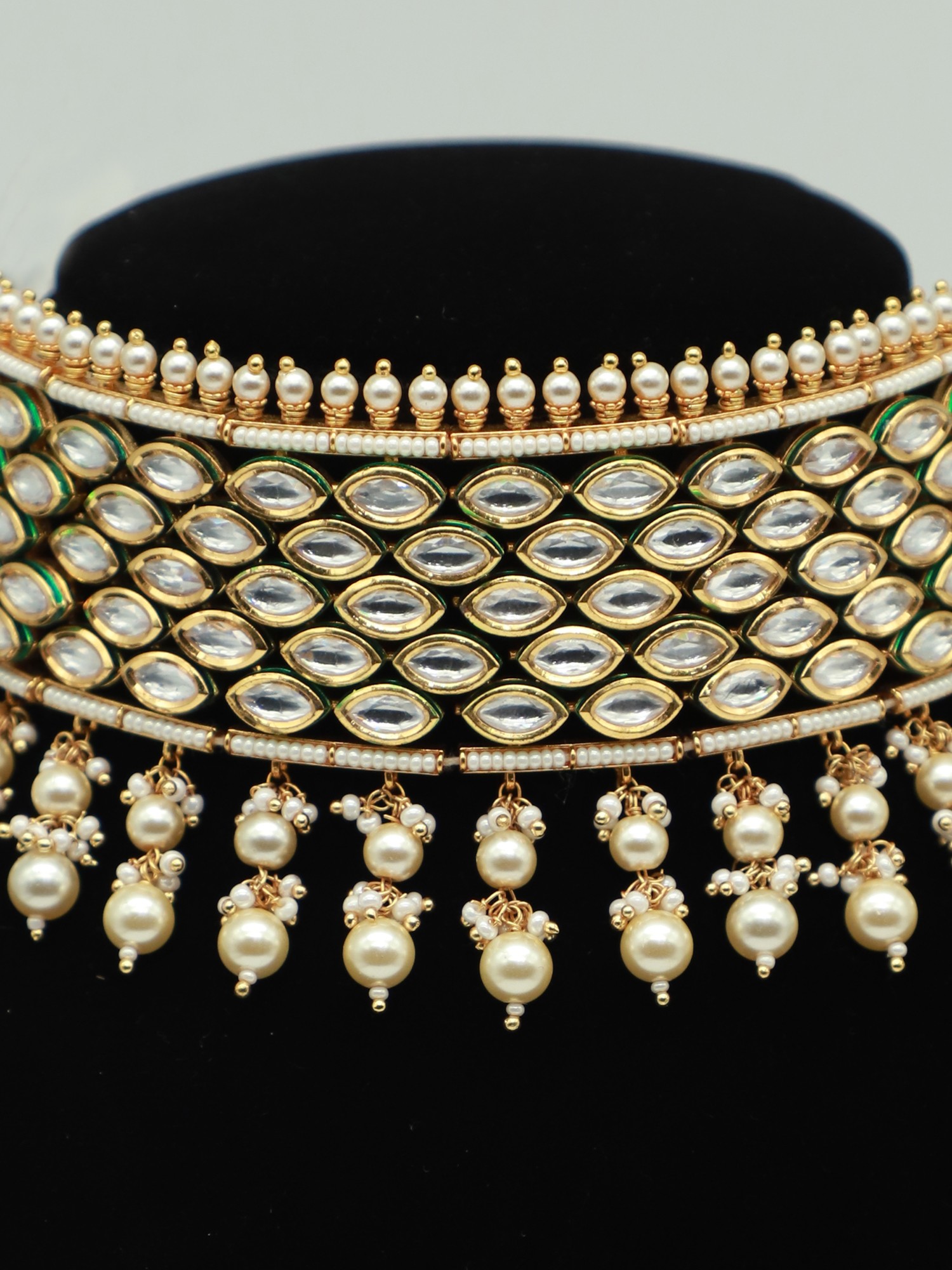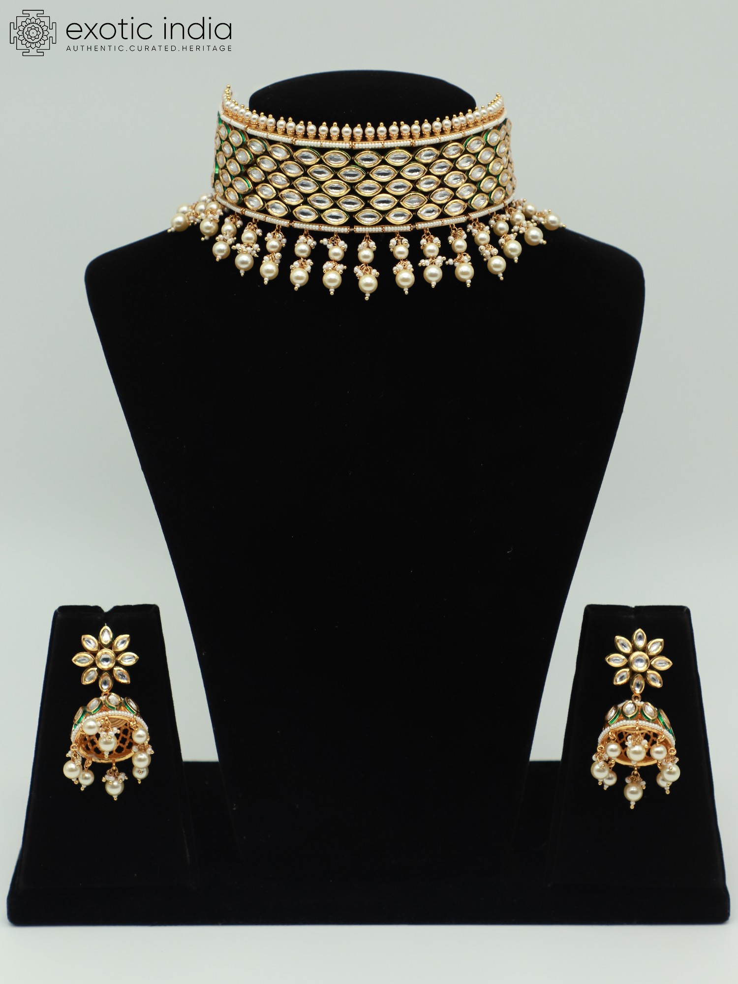 Beautiful Choker Necklace Set With Hanging Beads And Earrings In Brass