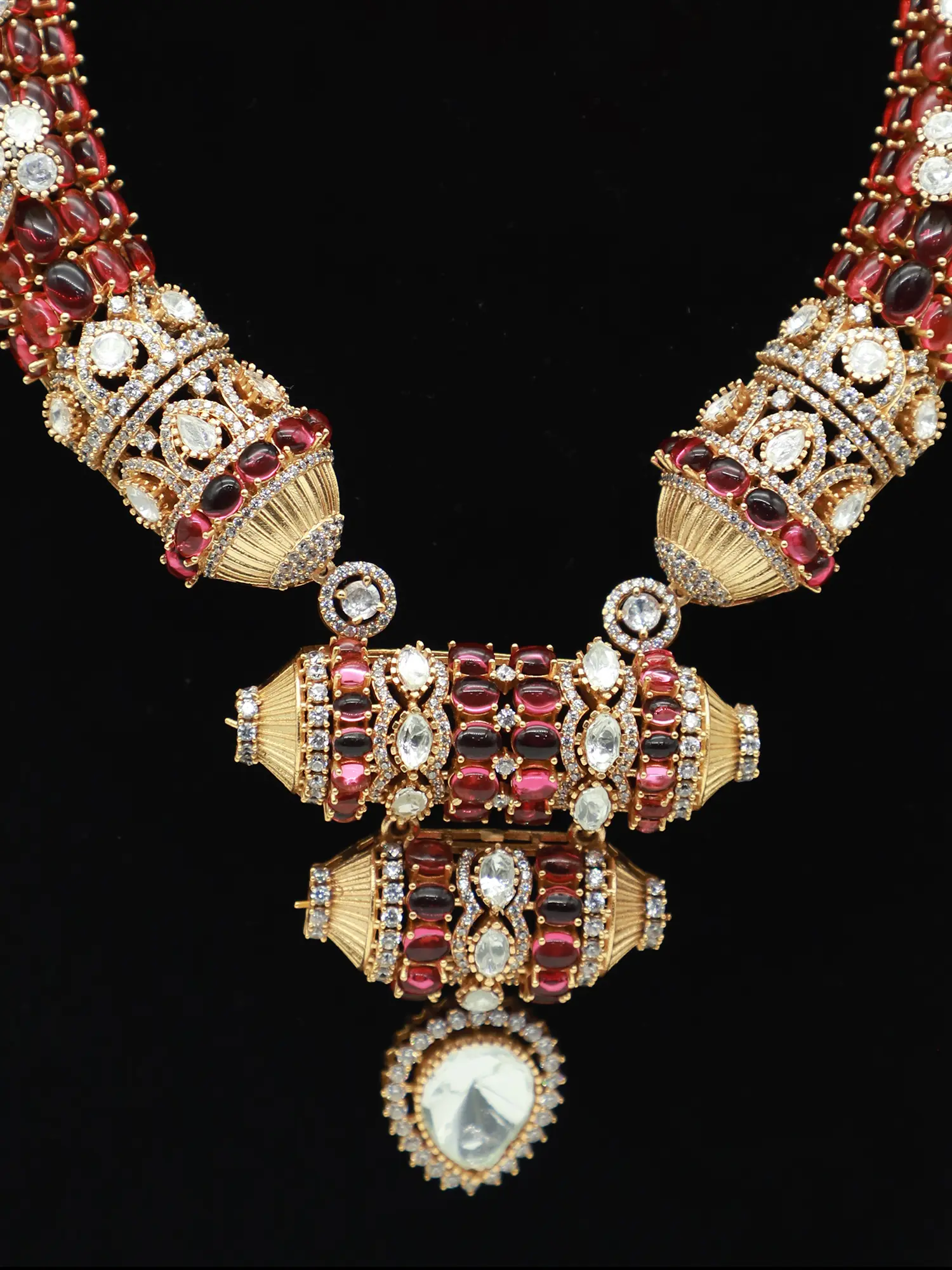 Traditional Moissanite Necklace Set With Doublet Stone And Antique Polish Earrings