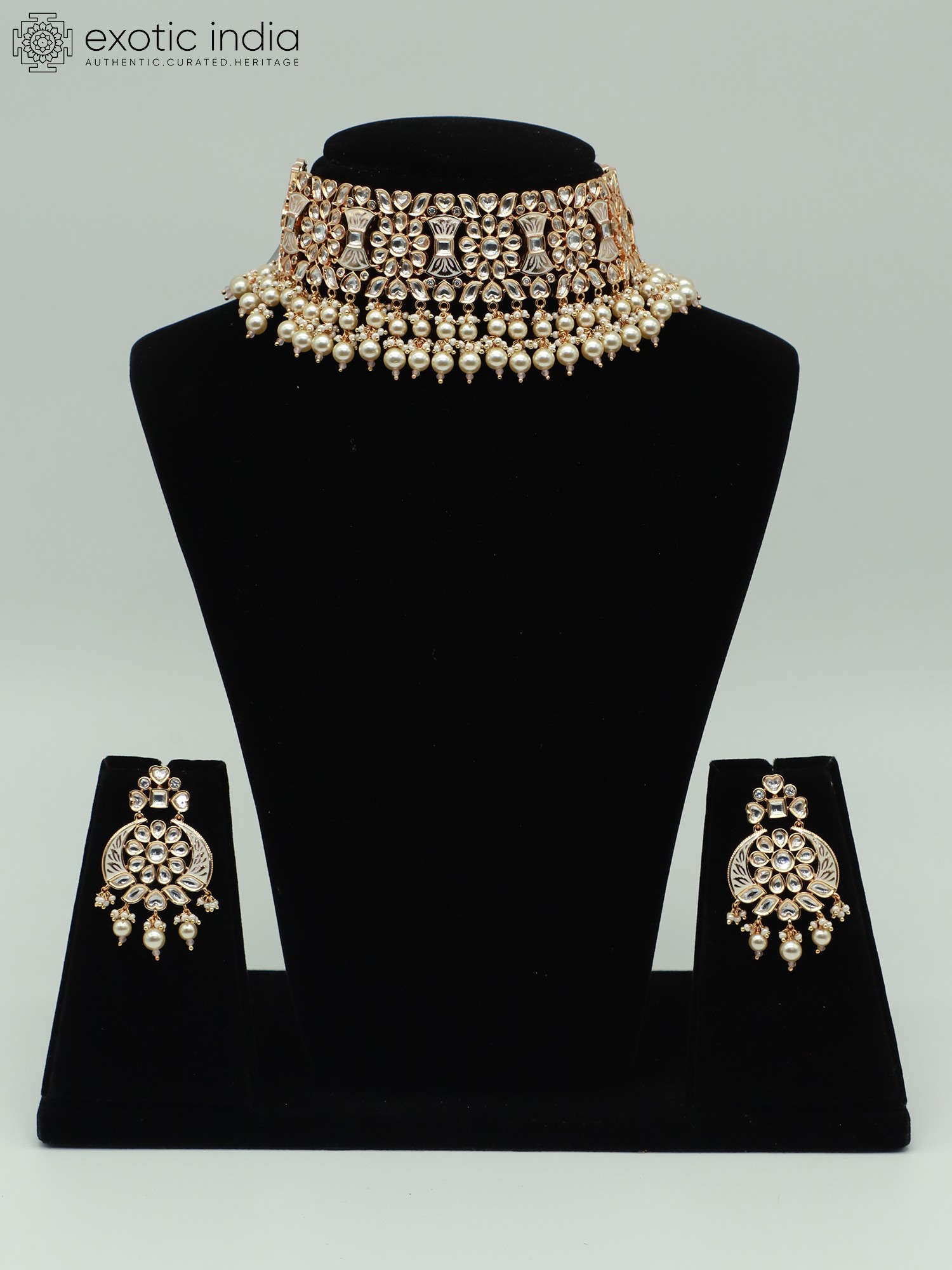 Kundan Studded Meenakari Choker Necklace With Beads And Earrings