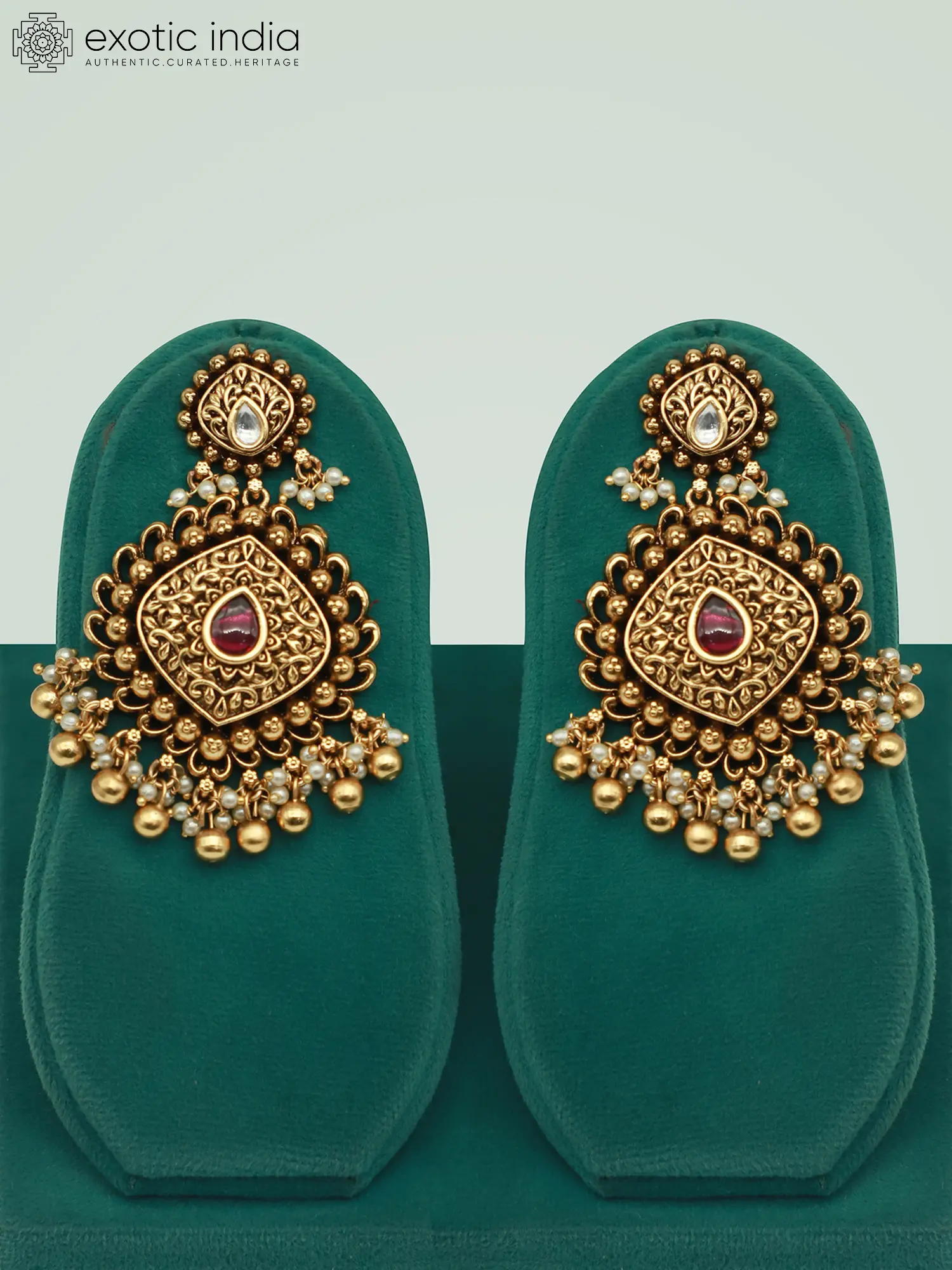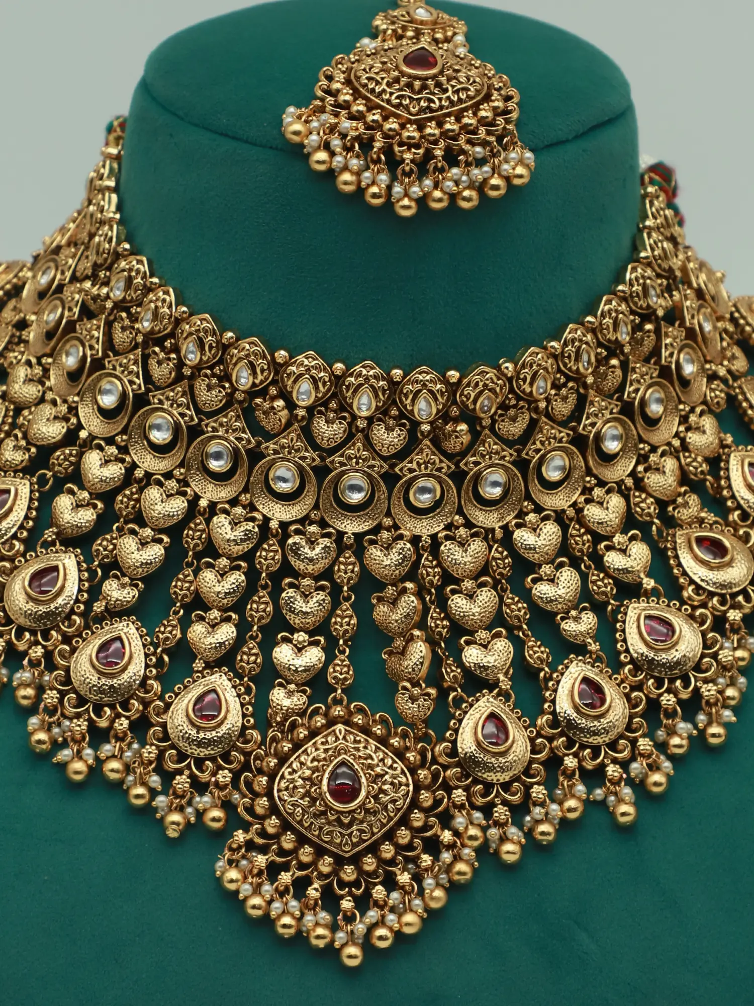 Golden Coloured Brass Choker Set with Pearl Drop