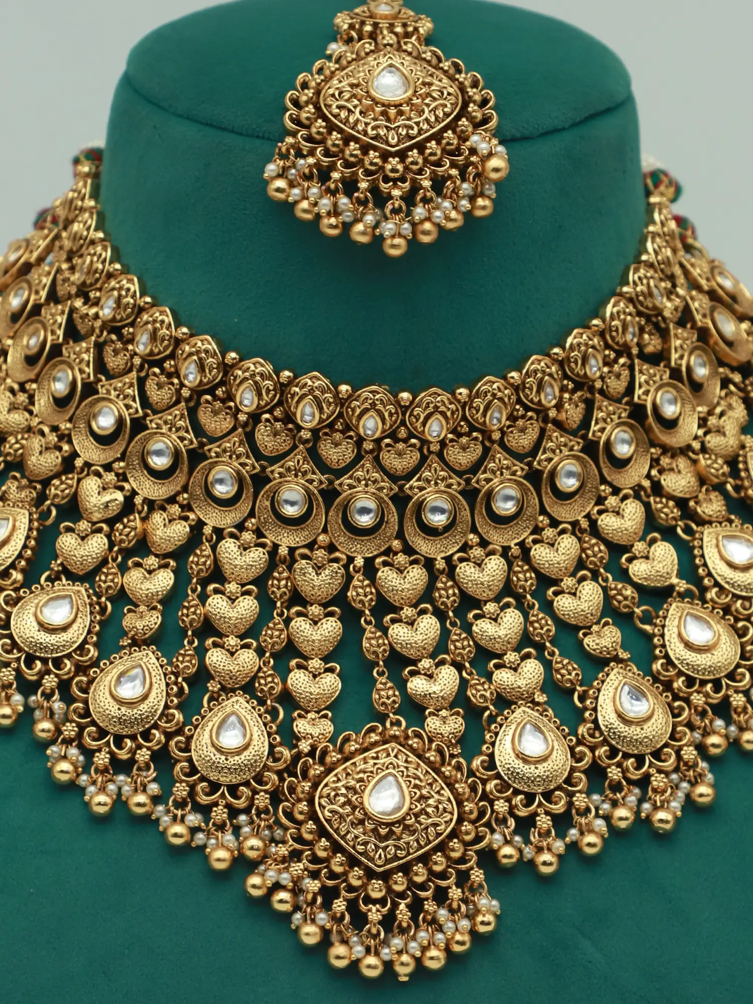 NECKLACE : 17.7 INCH LENGTH X 9.2 INCH WIDTH EARRINGS : 2.5 INCH HEIGHT X 1.5 INCH WIDTH Mangtika - 5 Inch Length