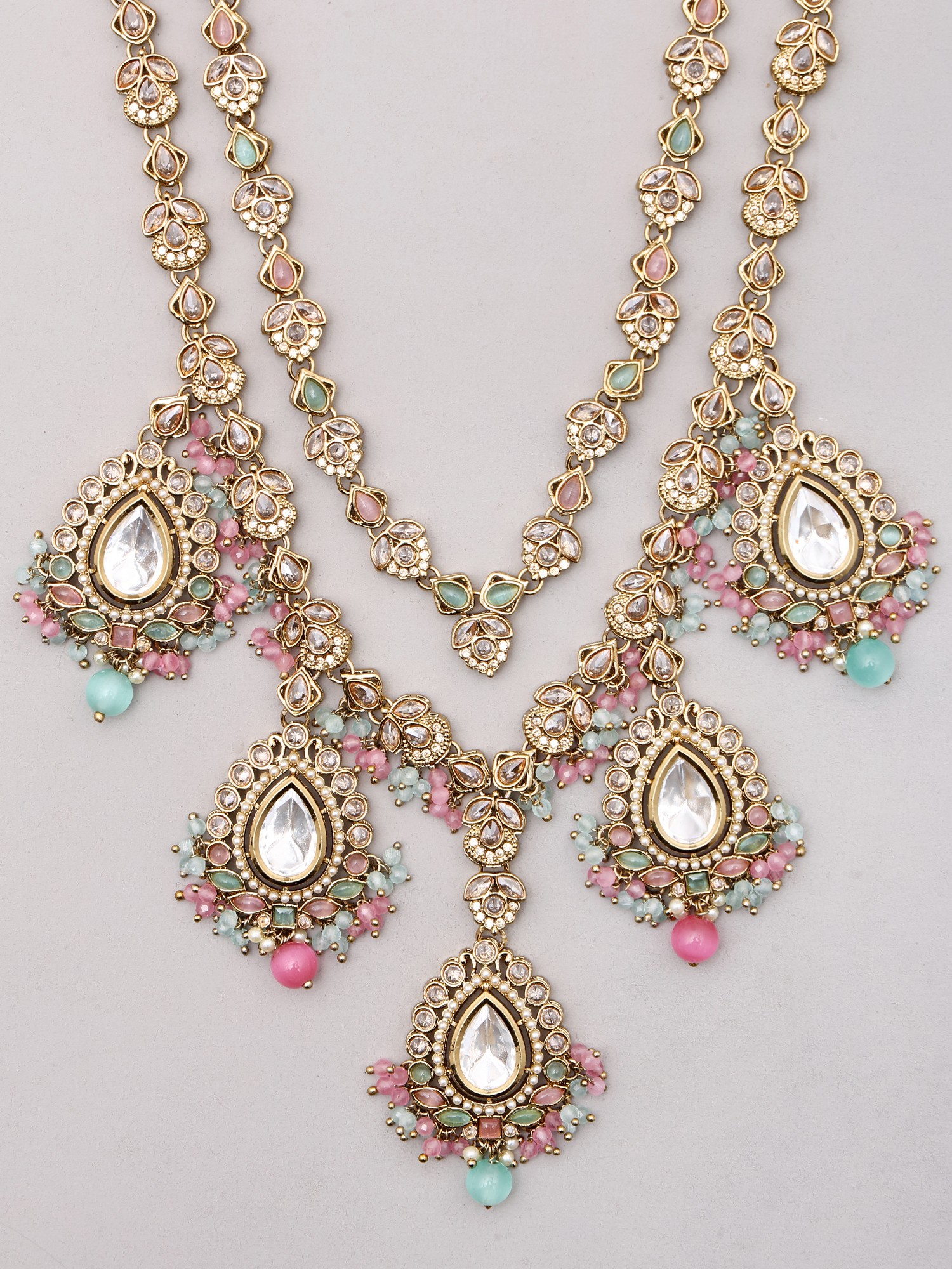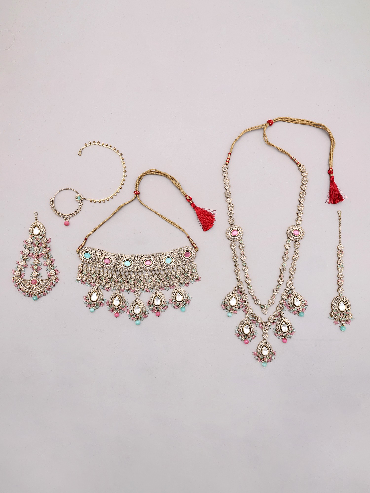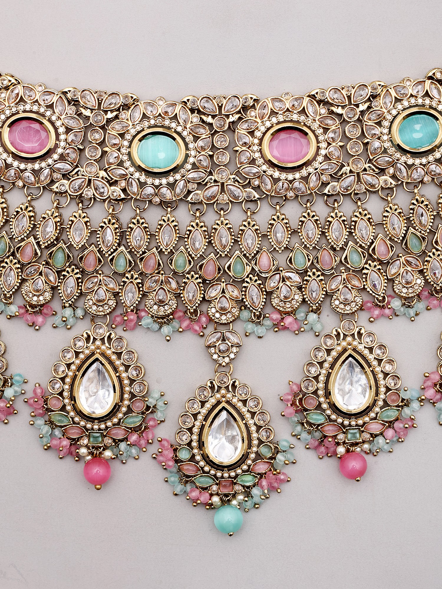 Traditional Pastel Stone Studded Kundan Bridal Jewelry Set