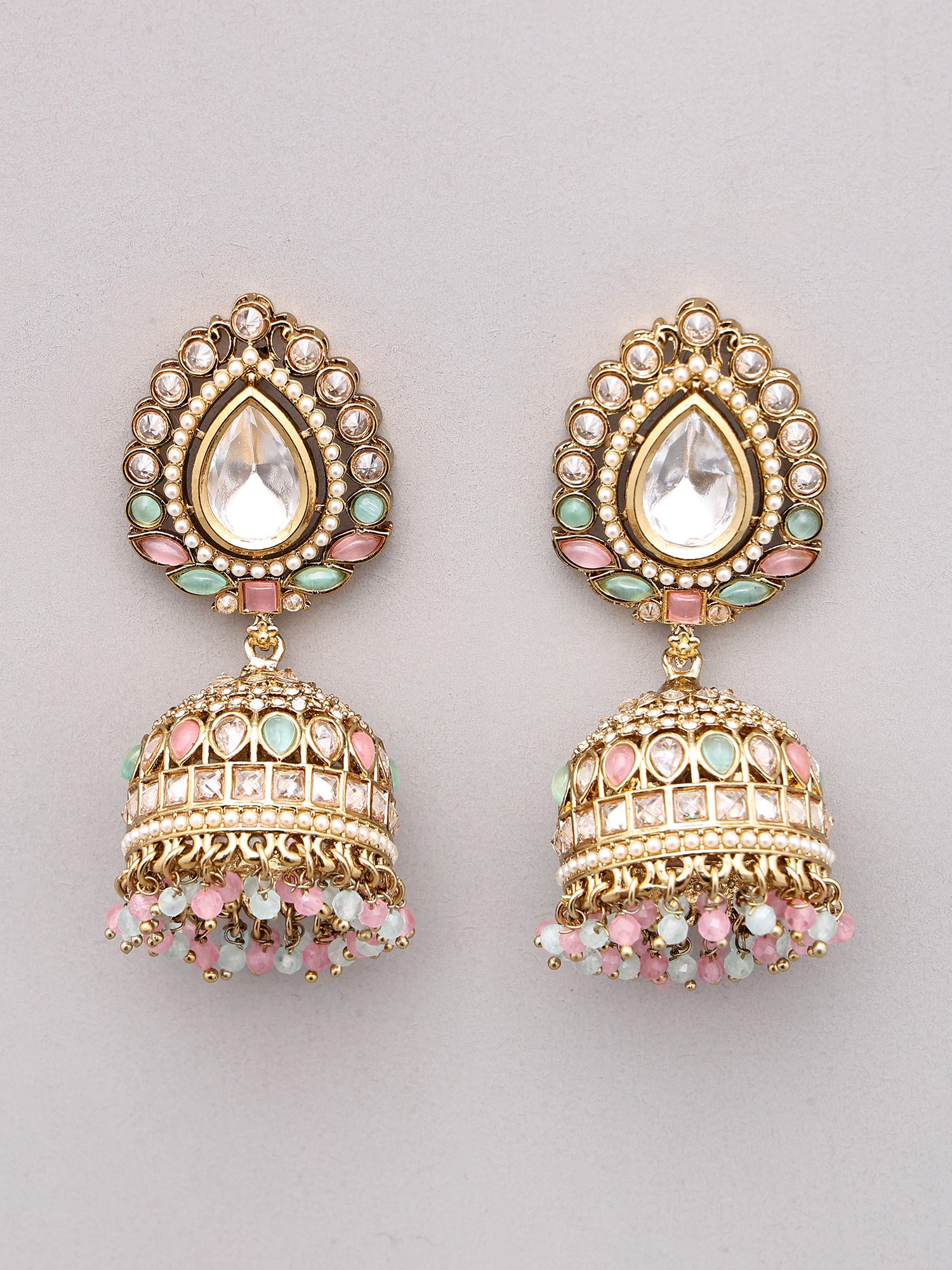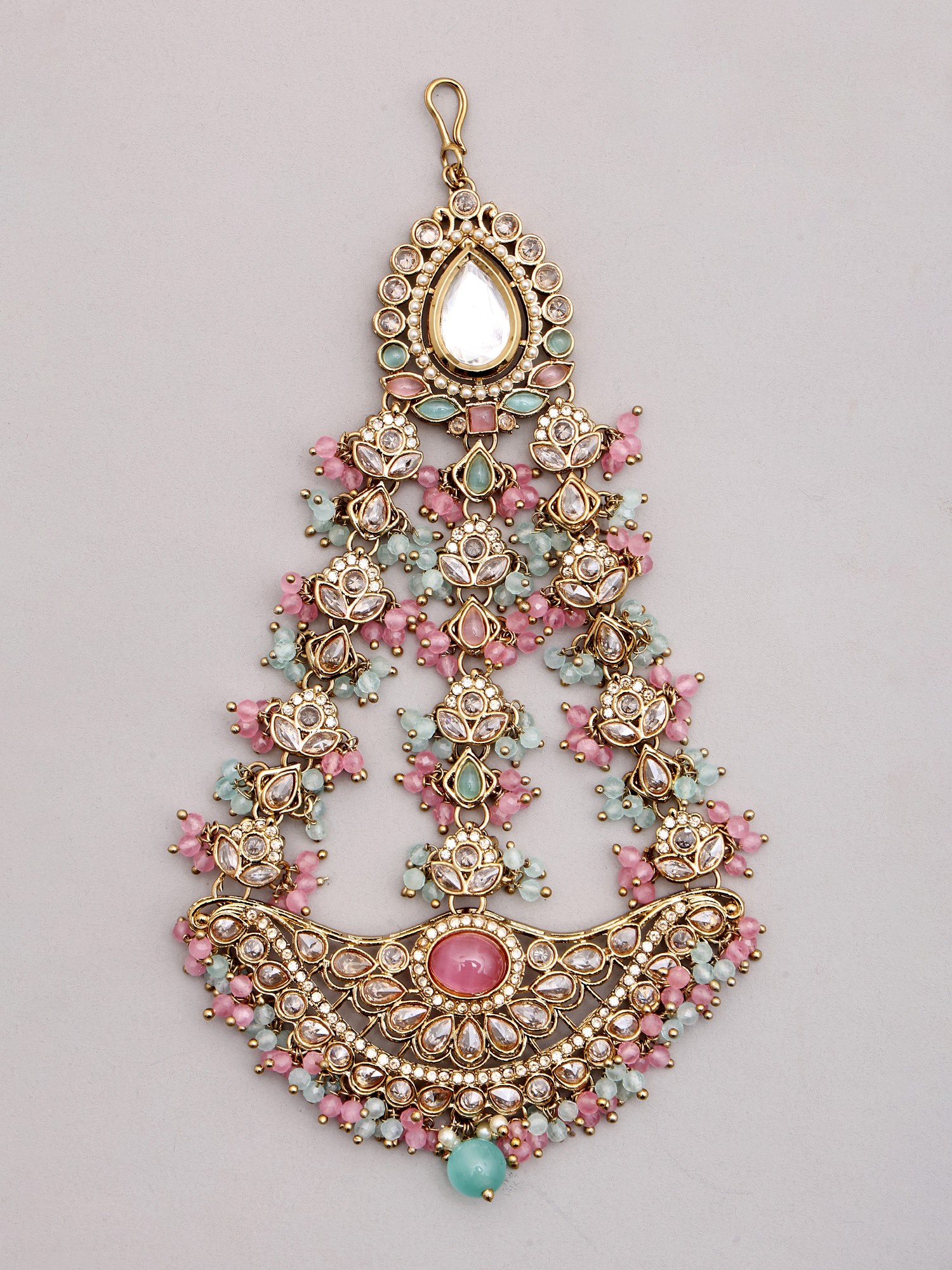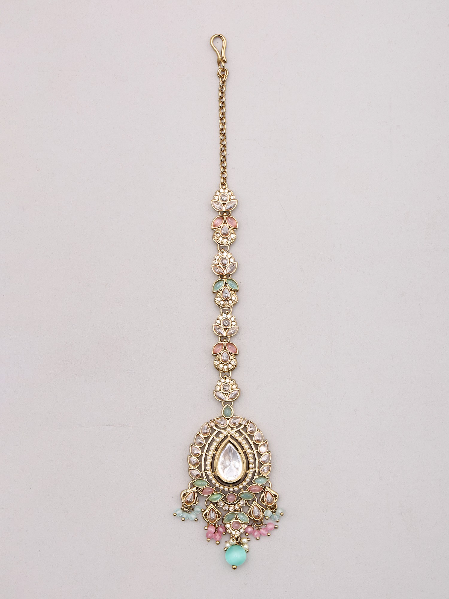 Traditional Pastel Stone Studded Kundan Bridal Jewelry Set