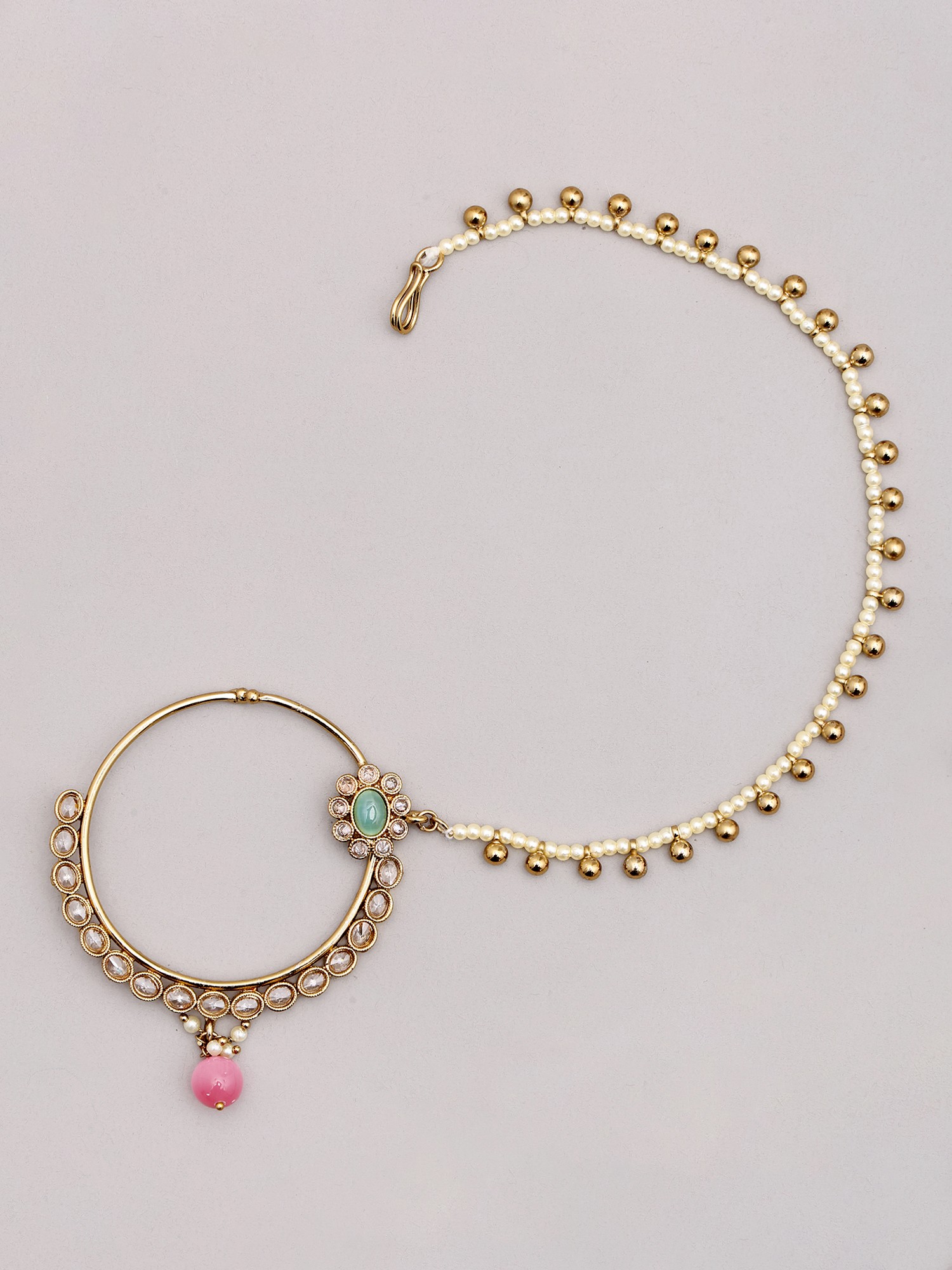 Mangtika - 7.5 Inch Length Nose Ring : 2.5 Inch Height | Chain : 7.7 Inch Length
