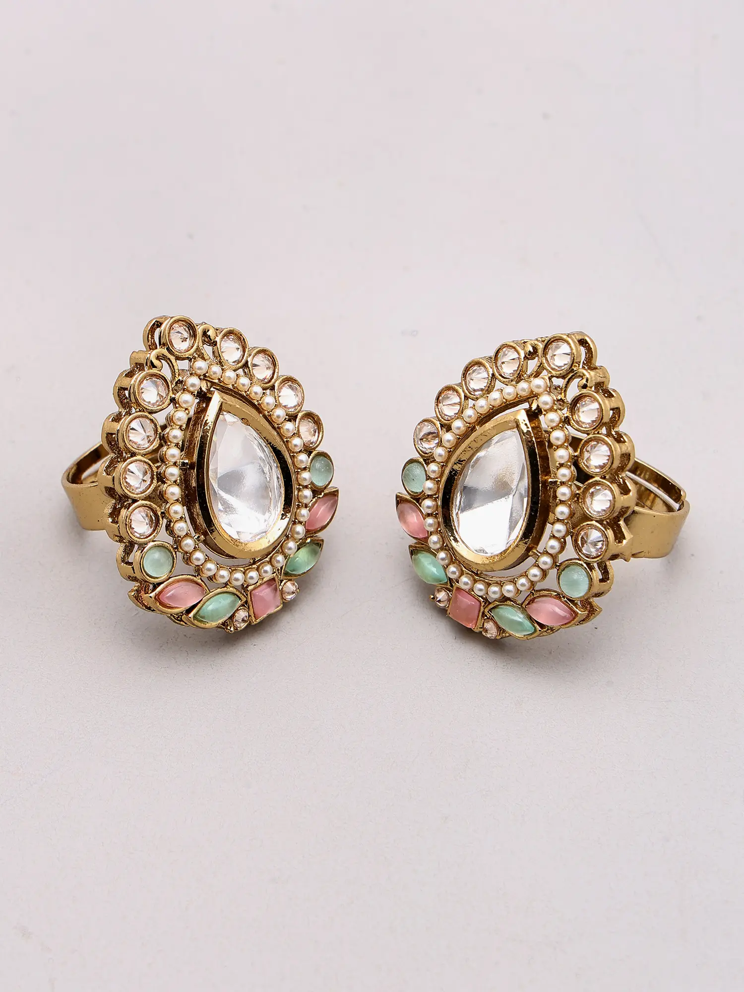 Constructed from high-quality brass, this jewelry set is designed for both beauty and durability. The brass provides a robust foundation for the intricate stone settings and delicate metalwork, ensuring that these treasured pieces can be passed down through generations. The craftsmanship guarantees a lustrous finish that will retain its brilliance over time, making it an enduring symbol of love and commitment. This set is more than just adornment; it's an heirloom in the making, designed to be cherished and celebrated.