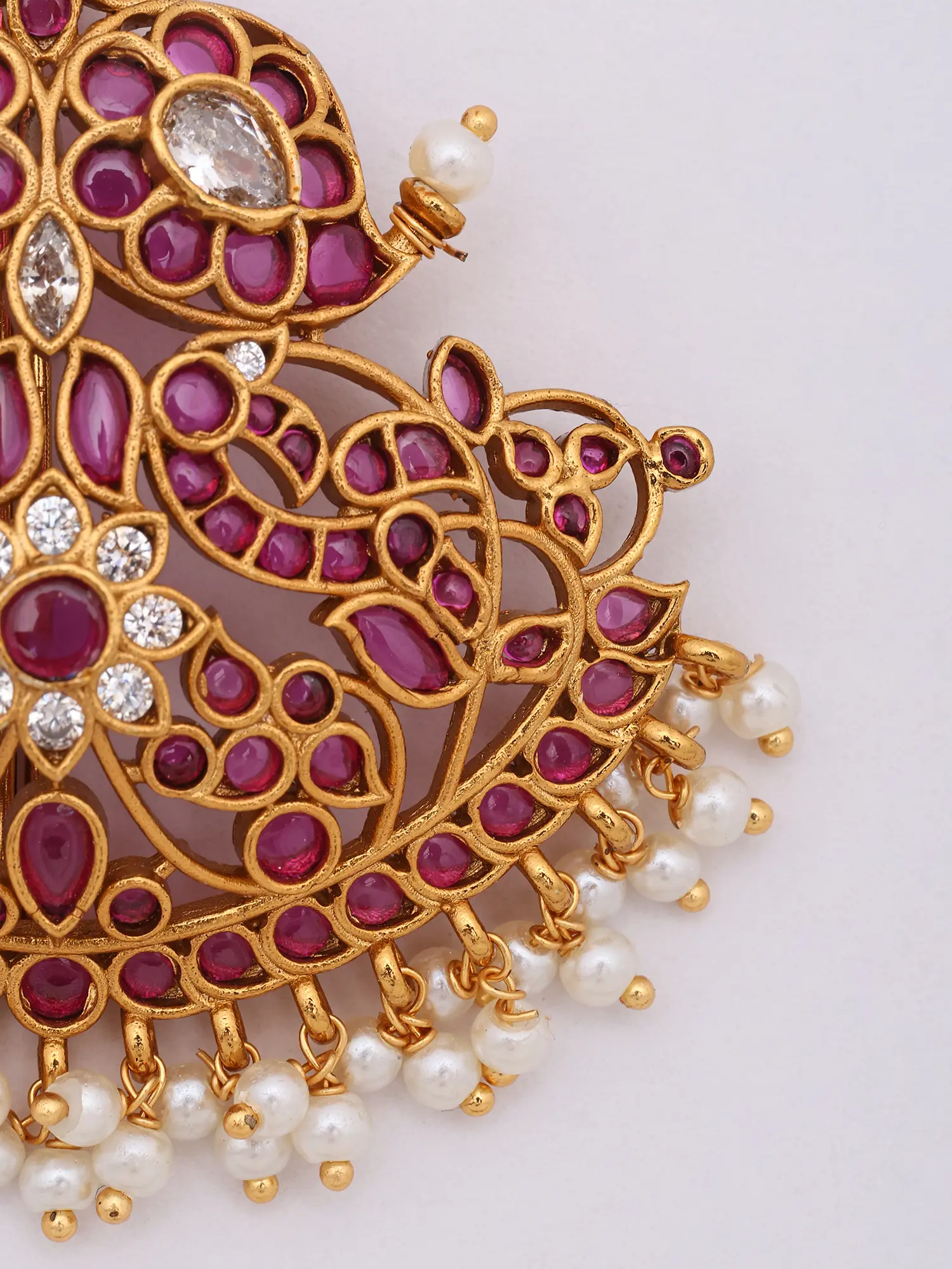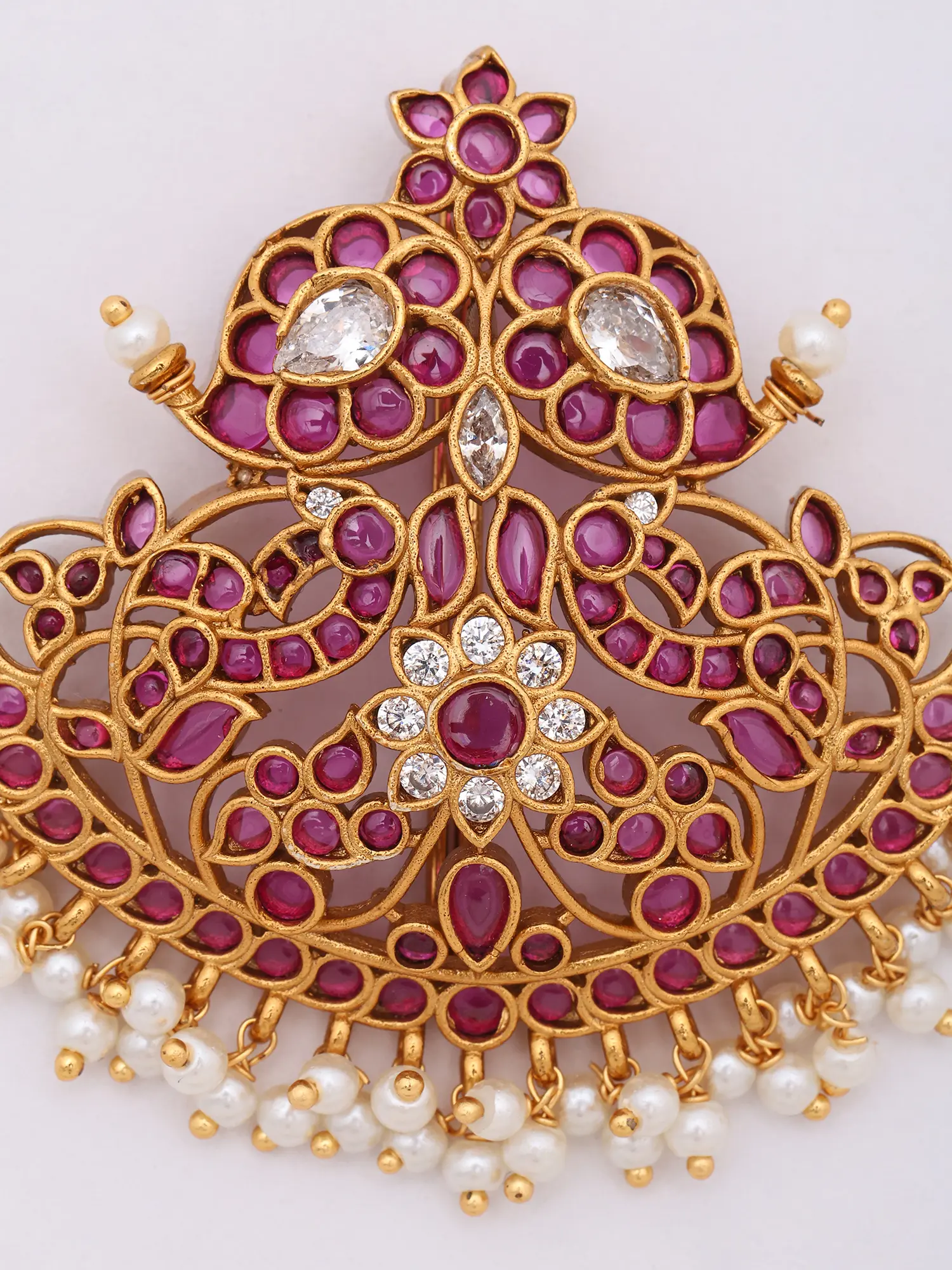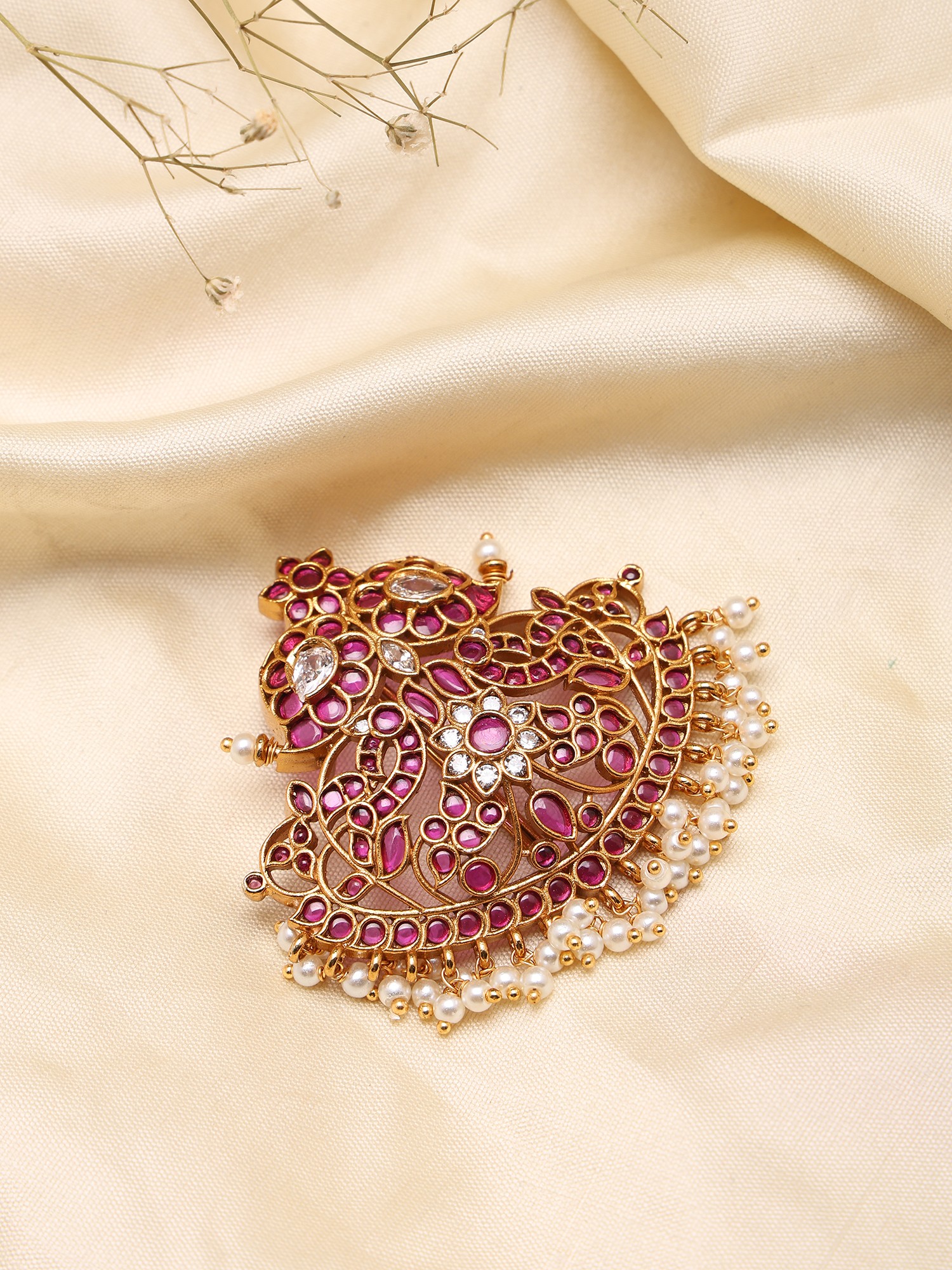 Traditional Stone-Studded Bun Billai (Juda Pin) with Pearl Drops