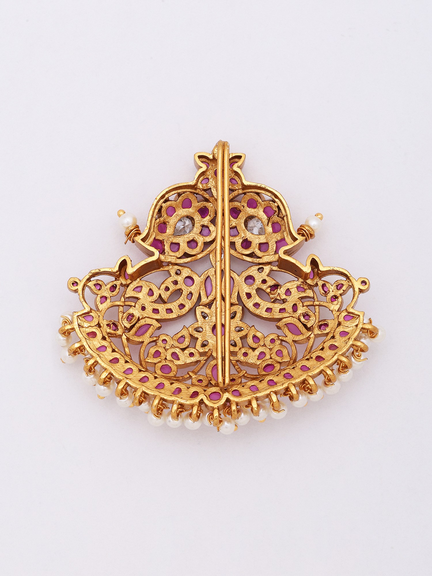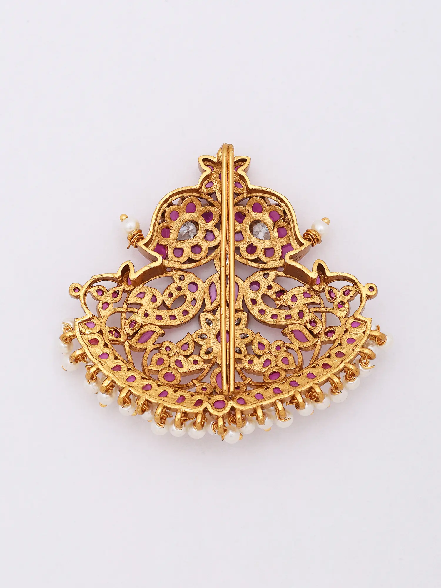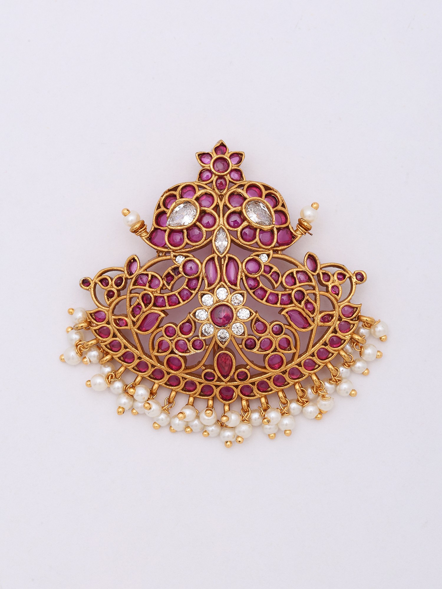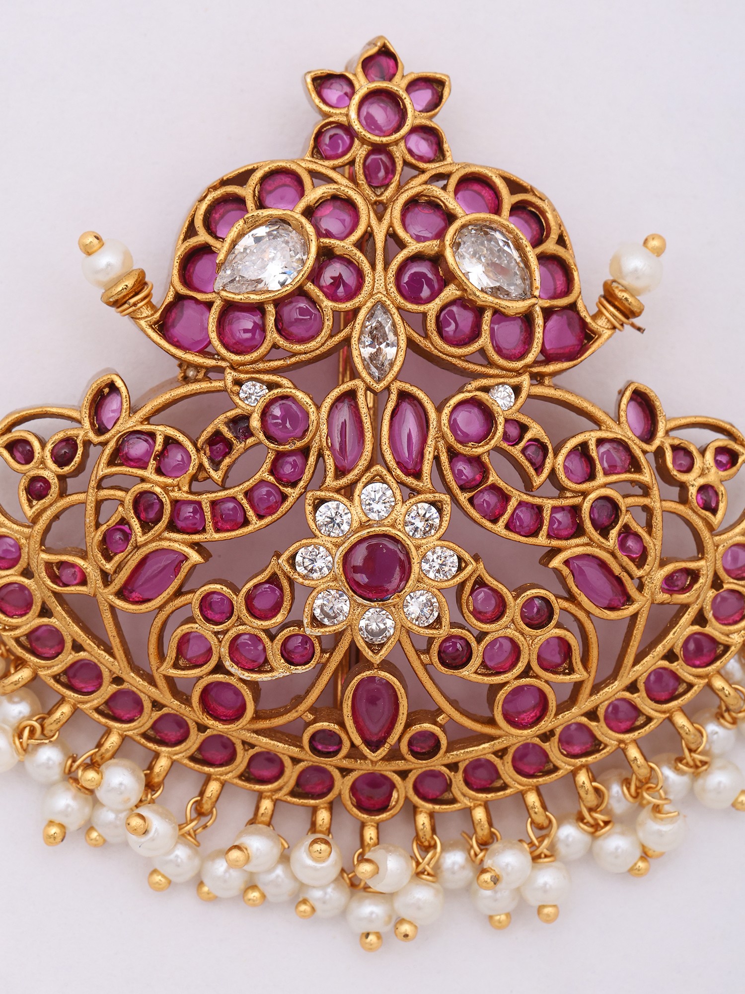 Traditional Stone-Studded Bun Billai (Juda Pin) with Pearl Drops
