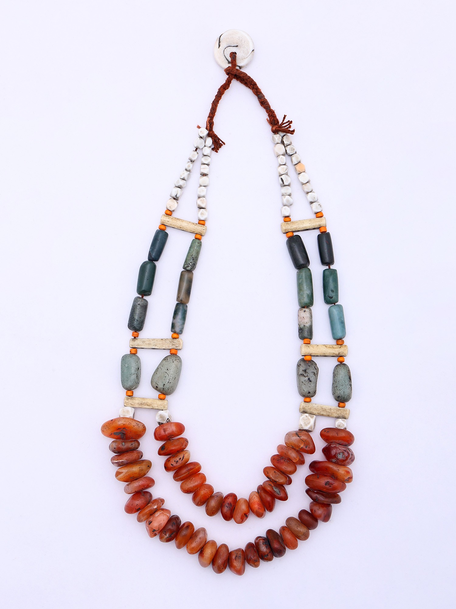 Tribal Style Multicolor Beaded Necklace with Thread Closure