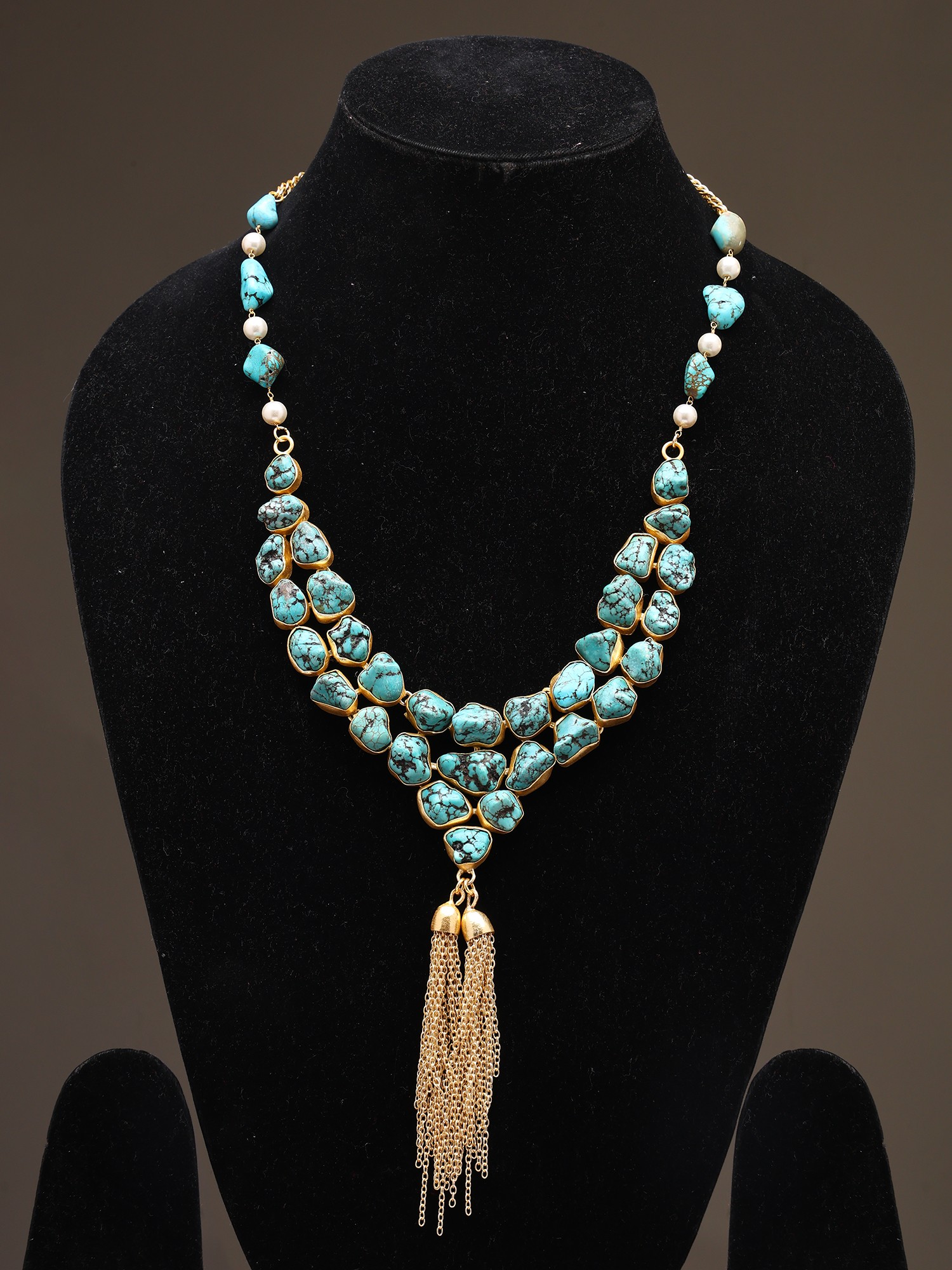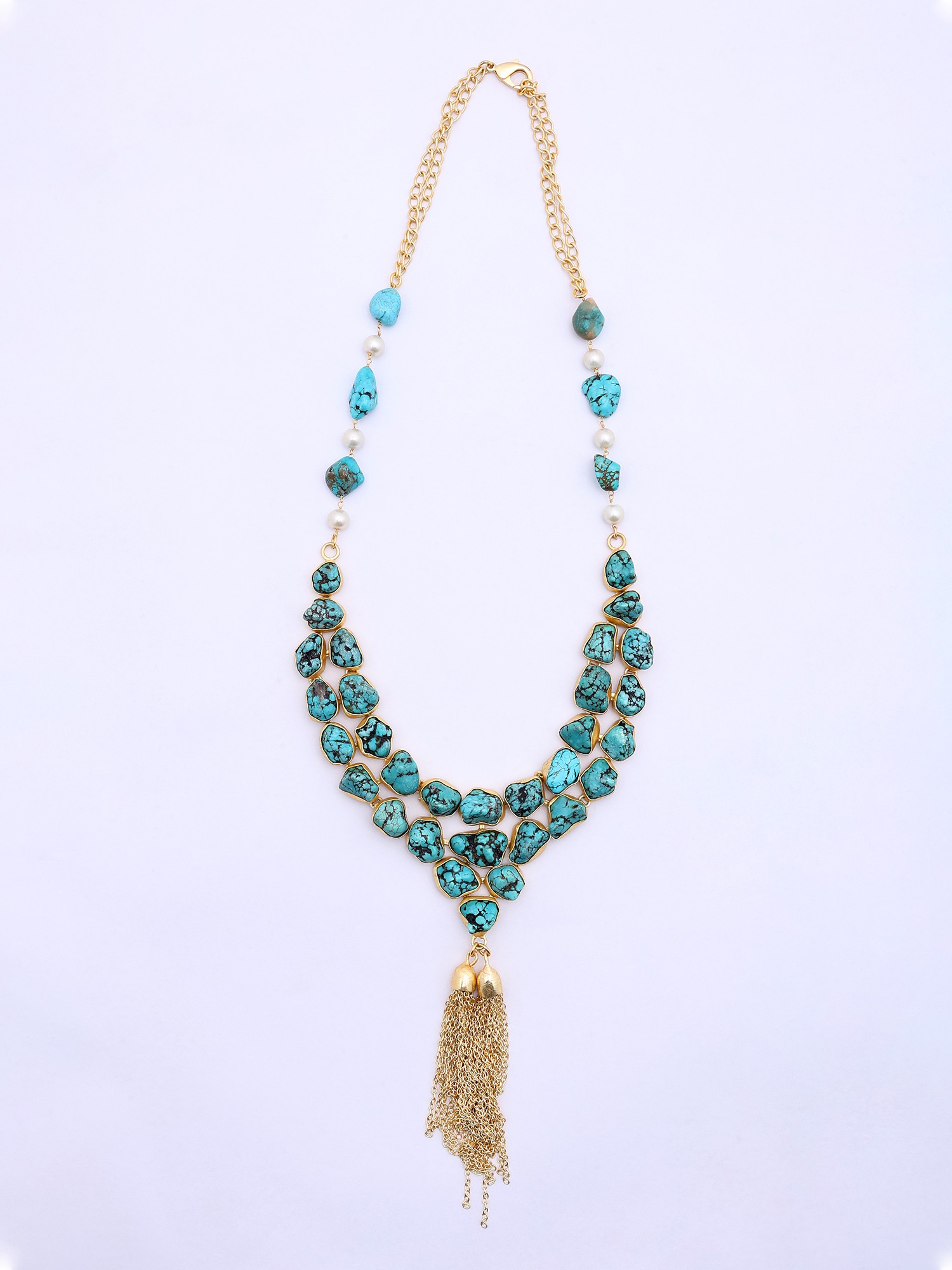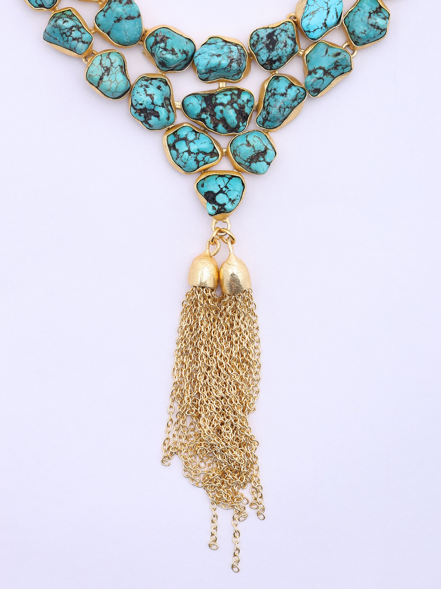 Turquoise-Look Multistone Necklace with Tassel Drop