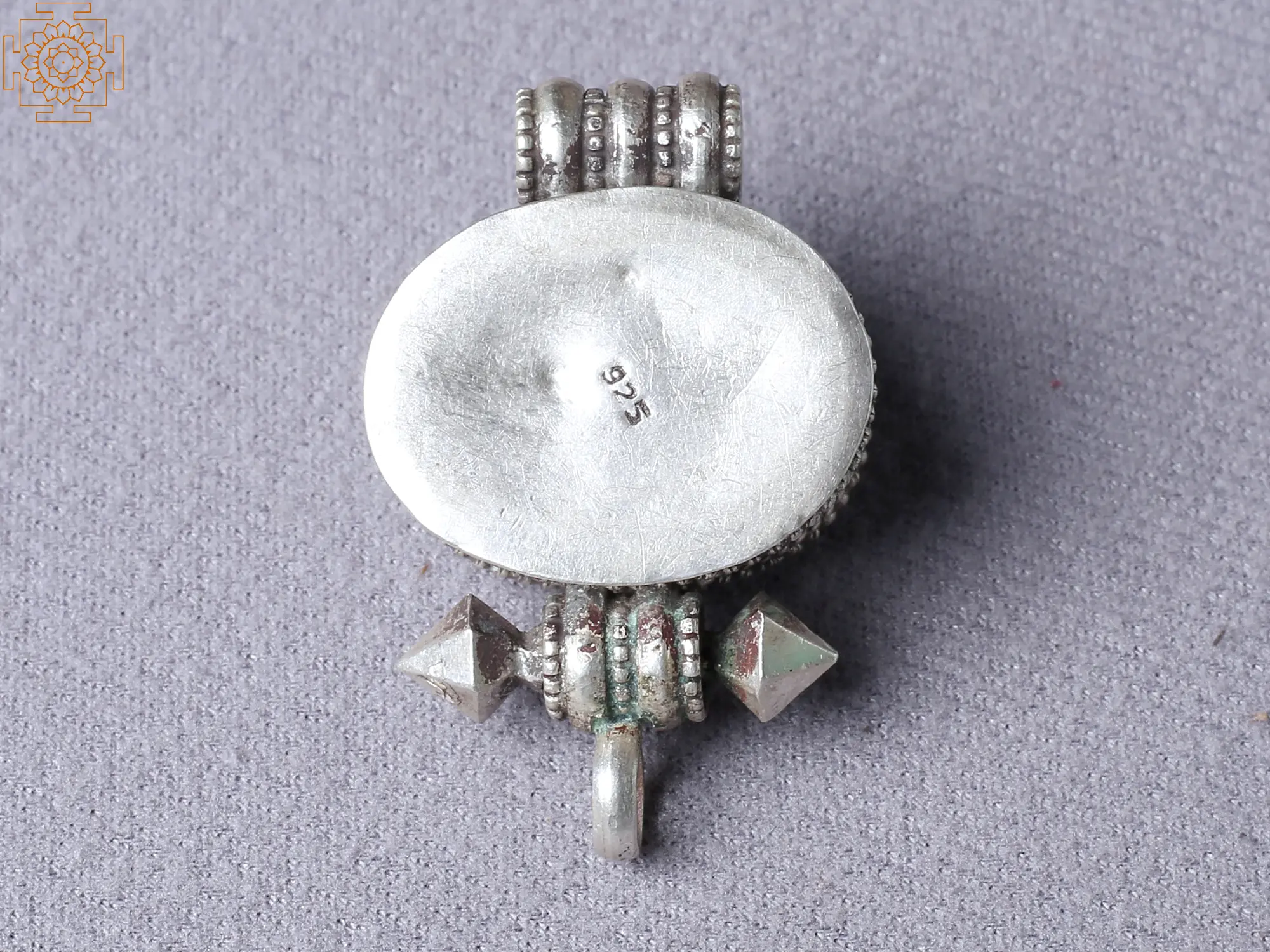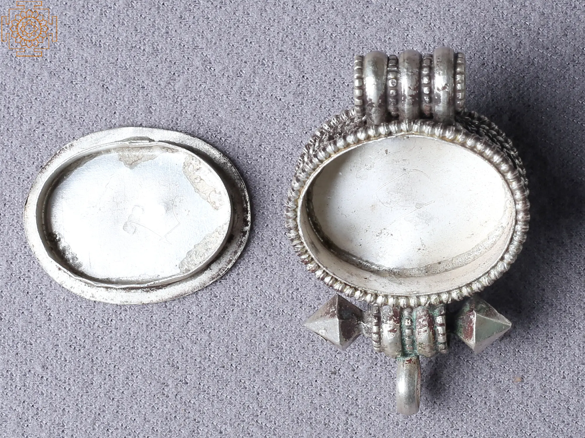 This Silver Ghau Pendant has been blessed by the goodness of turquoise. A big turquoise sits in the middle, surrounded by a silver frame of twisted wire. The chamber within is designed to contain prayer scrolls. The silver tone of the pendant is stunning and exudes heavenly life. It is suitable for wearing as a pendant or as an amulet. Turquoise is known as the 'Sky Stone' by Tibetans, who believe it comes from the skies. Furthermore, they think that the stone loses its color as the bearer ages, but regains its color and brilliance when passed down to a younger generation.