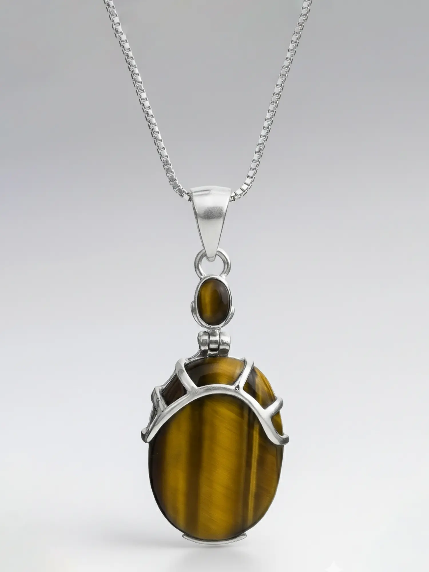 Sterling Silver Pendant with Large Tiger-Eye Gemstone