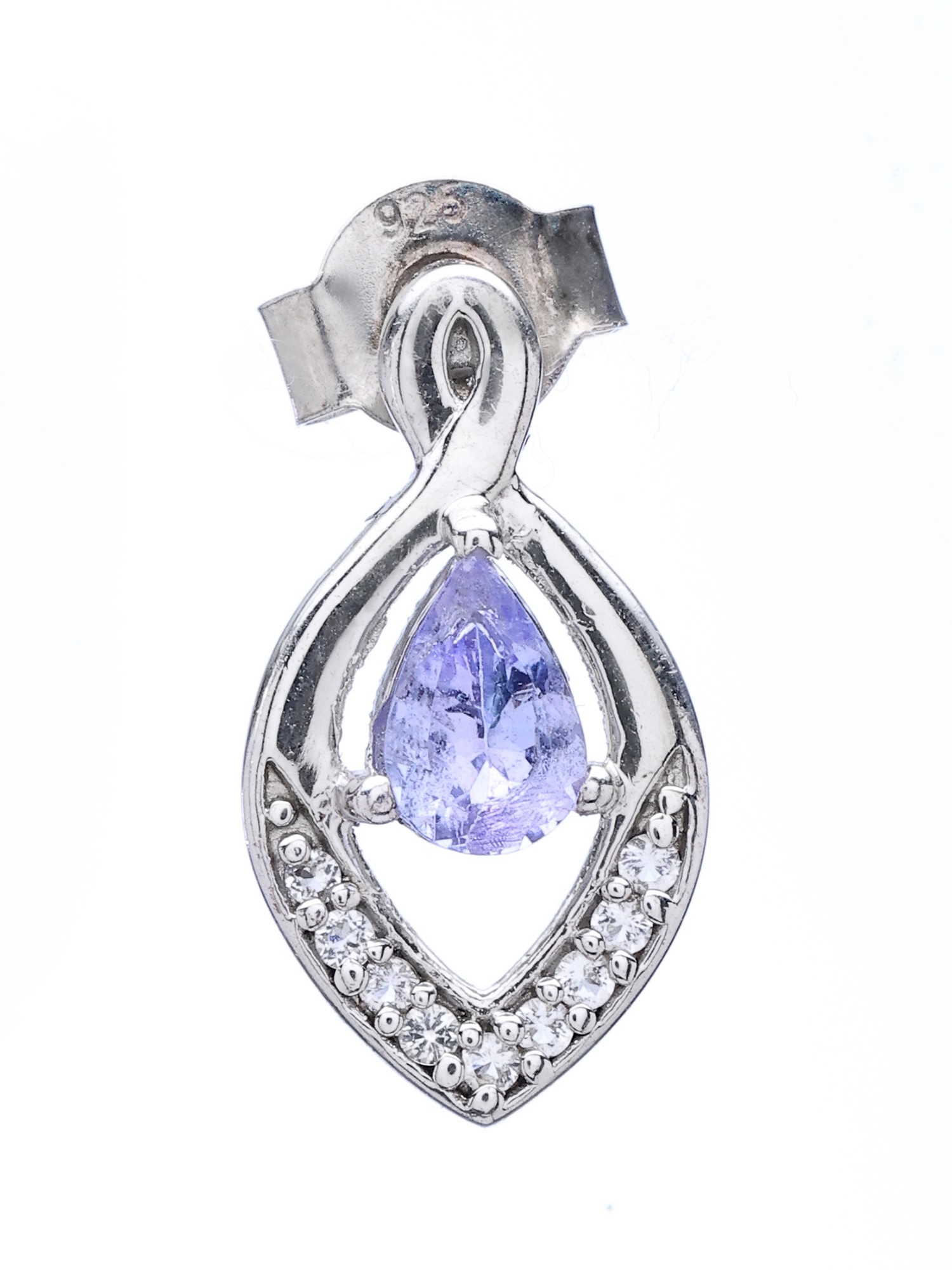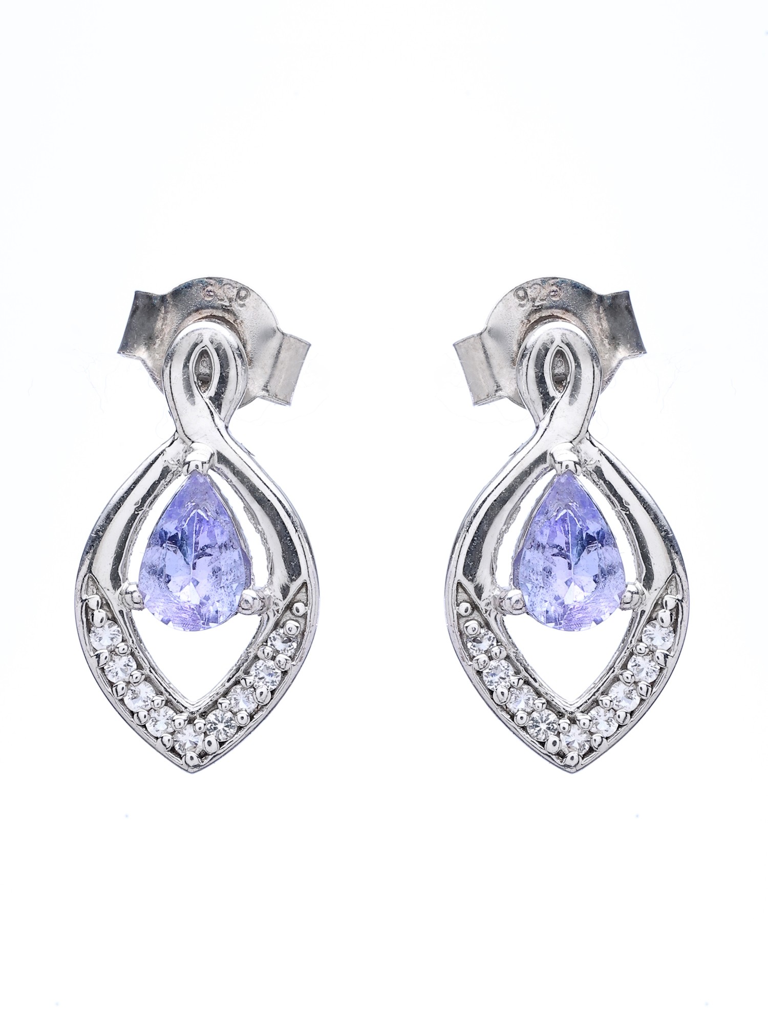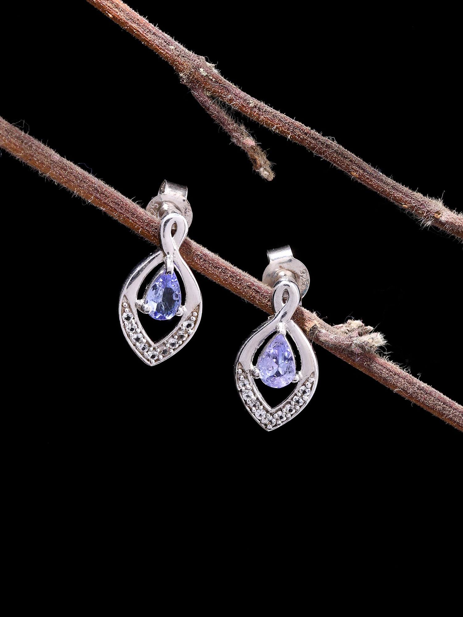 Twisted Sterling Silver Earrings with Faceted Tanzanite Gemstone