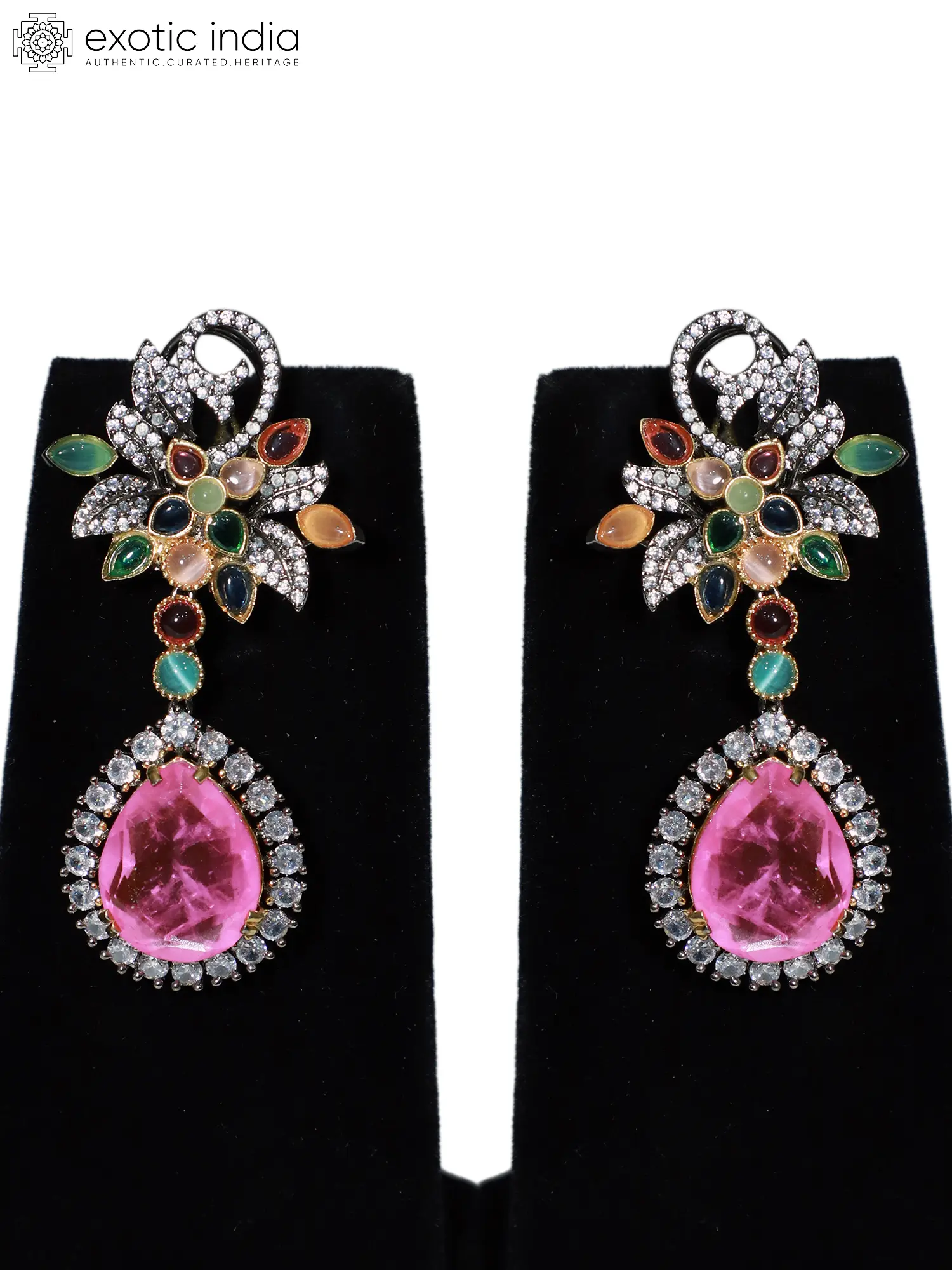 Floral Design Exquisite Stone Studded American Diamond Double Layered Necklace Set With Earrings
