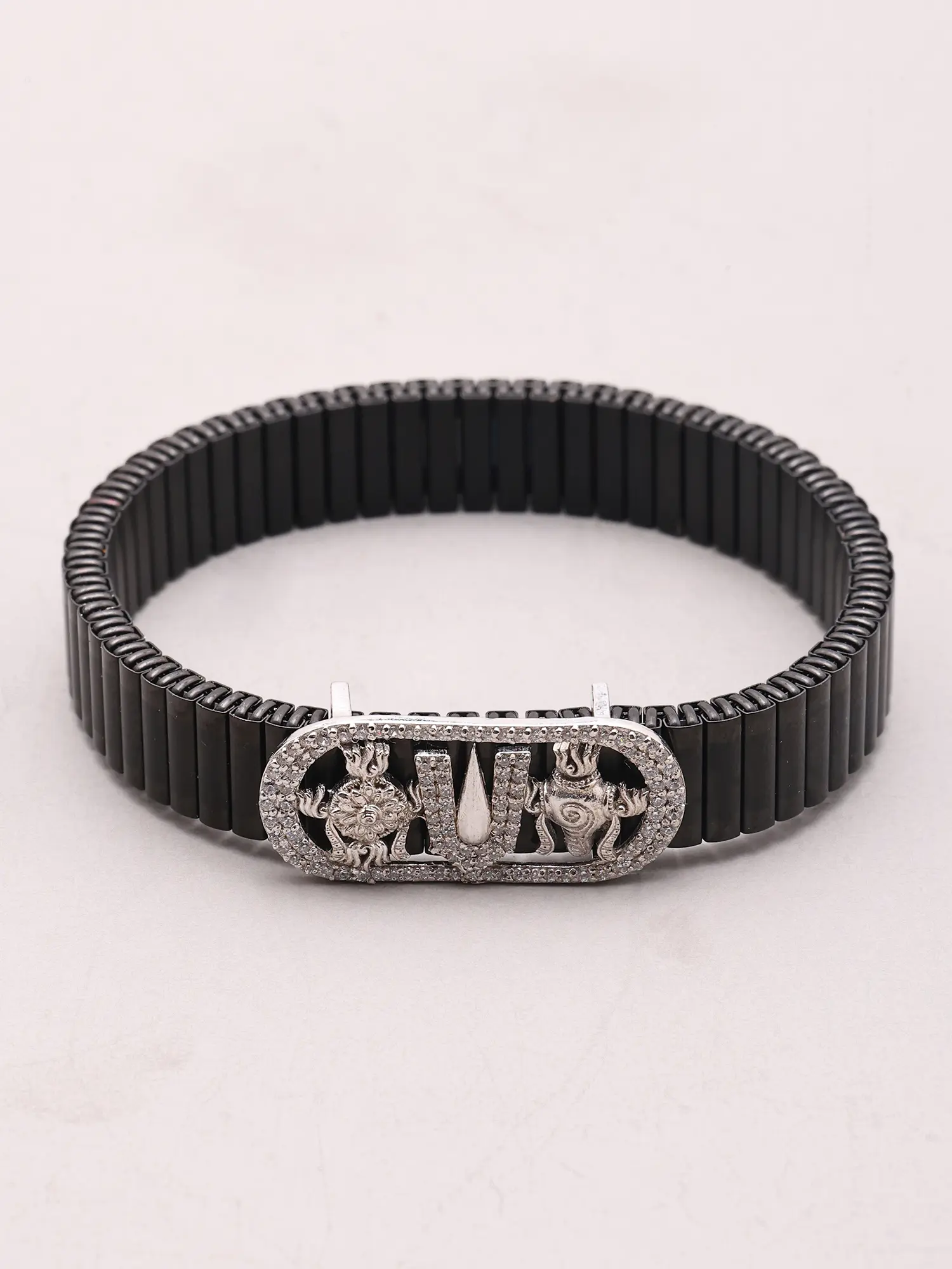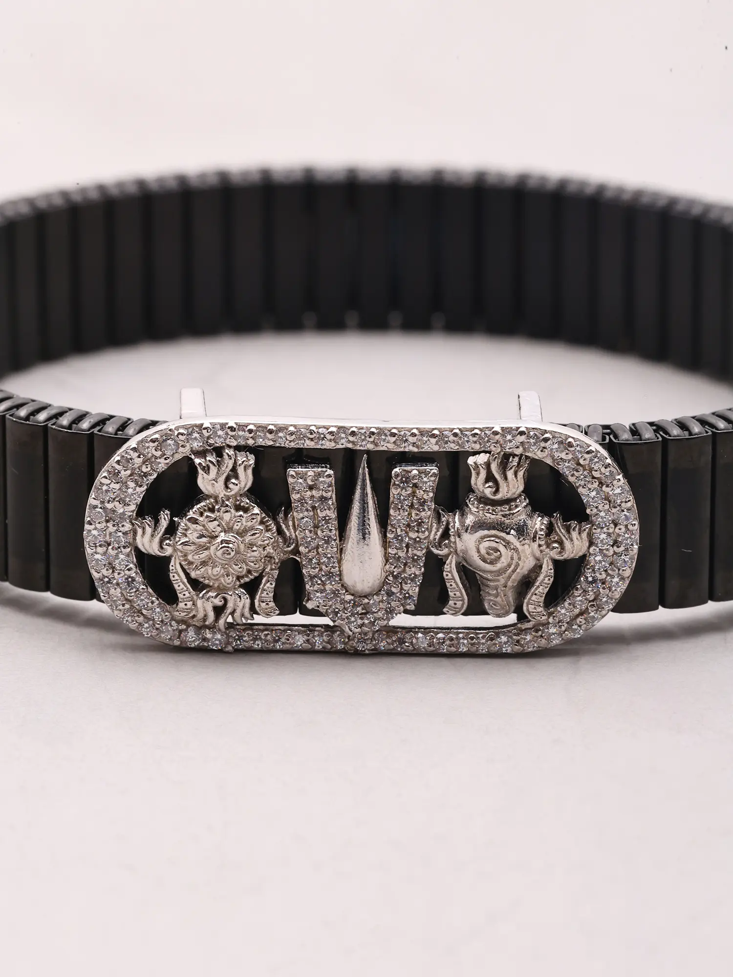 Stone Studded Elastic Shiva Trishul (Adjustable) Bracelet