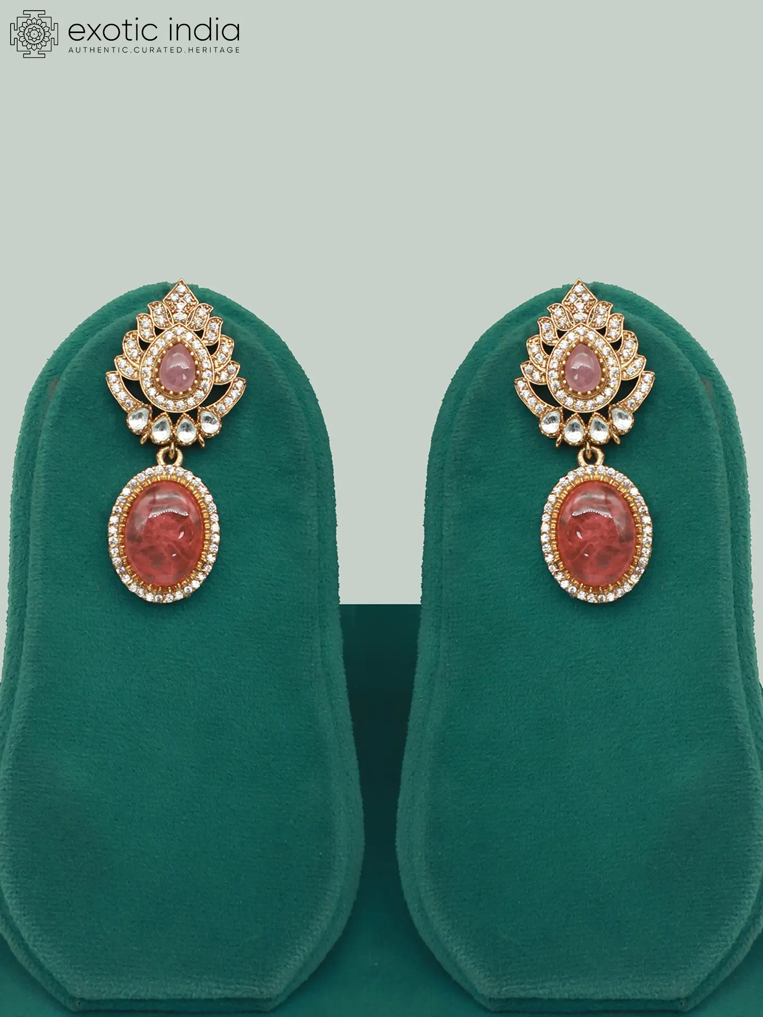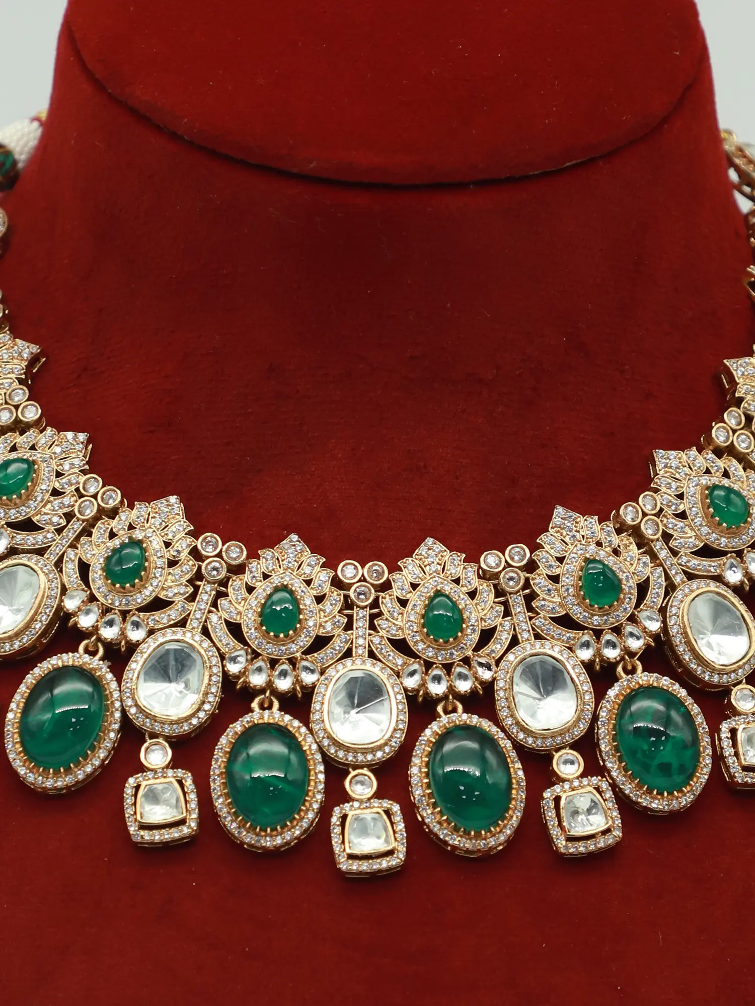 Moissanite Necklace Set In Embellished Design With Attractive Earrings And Doublet Stone