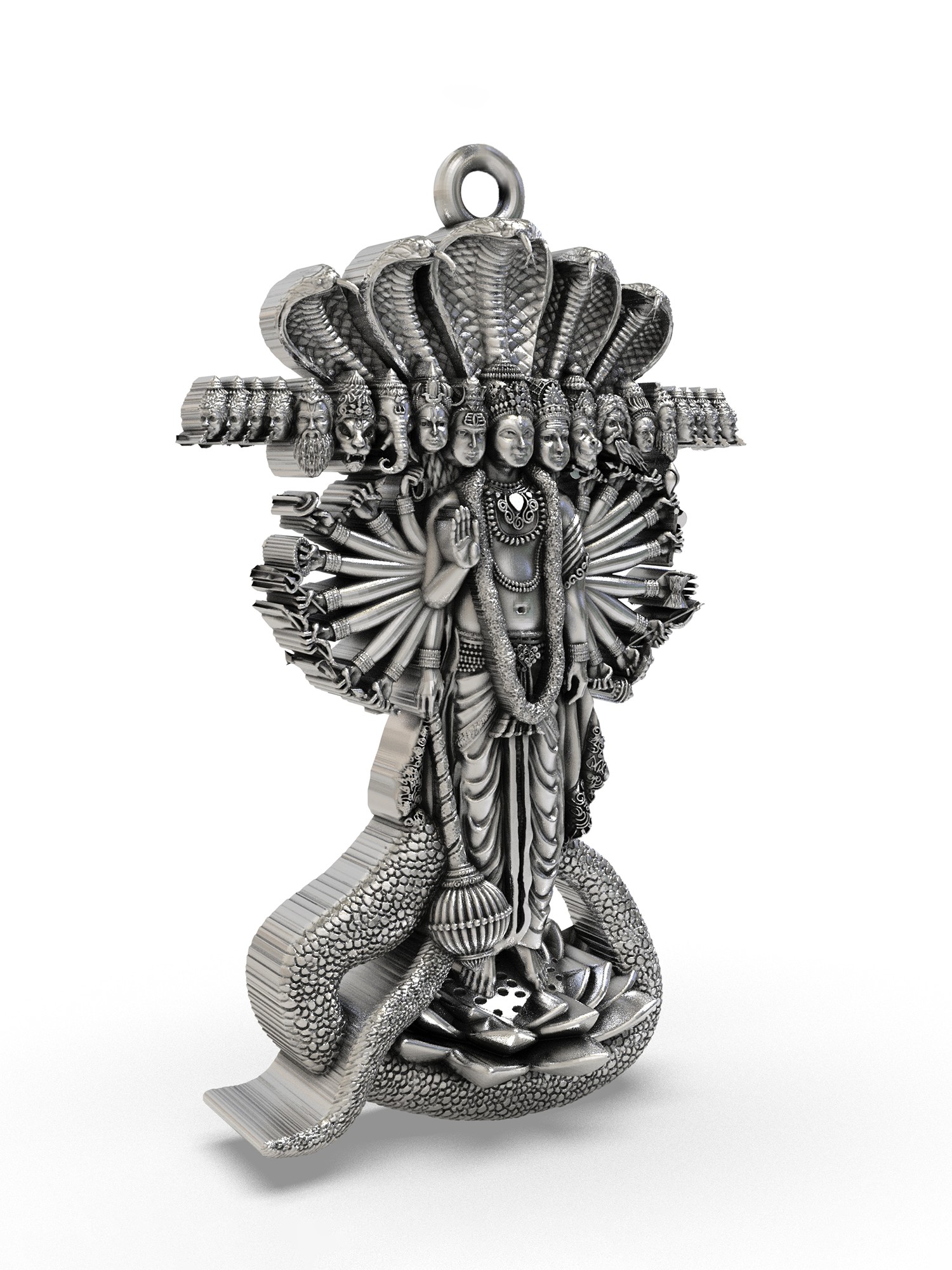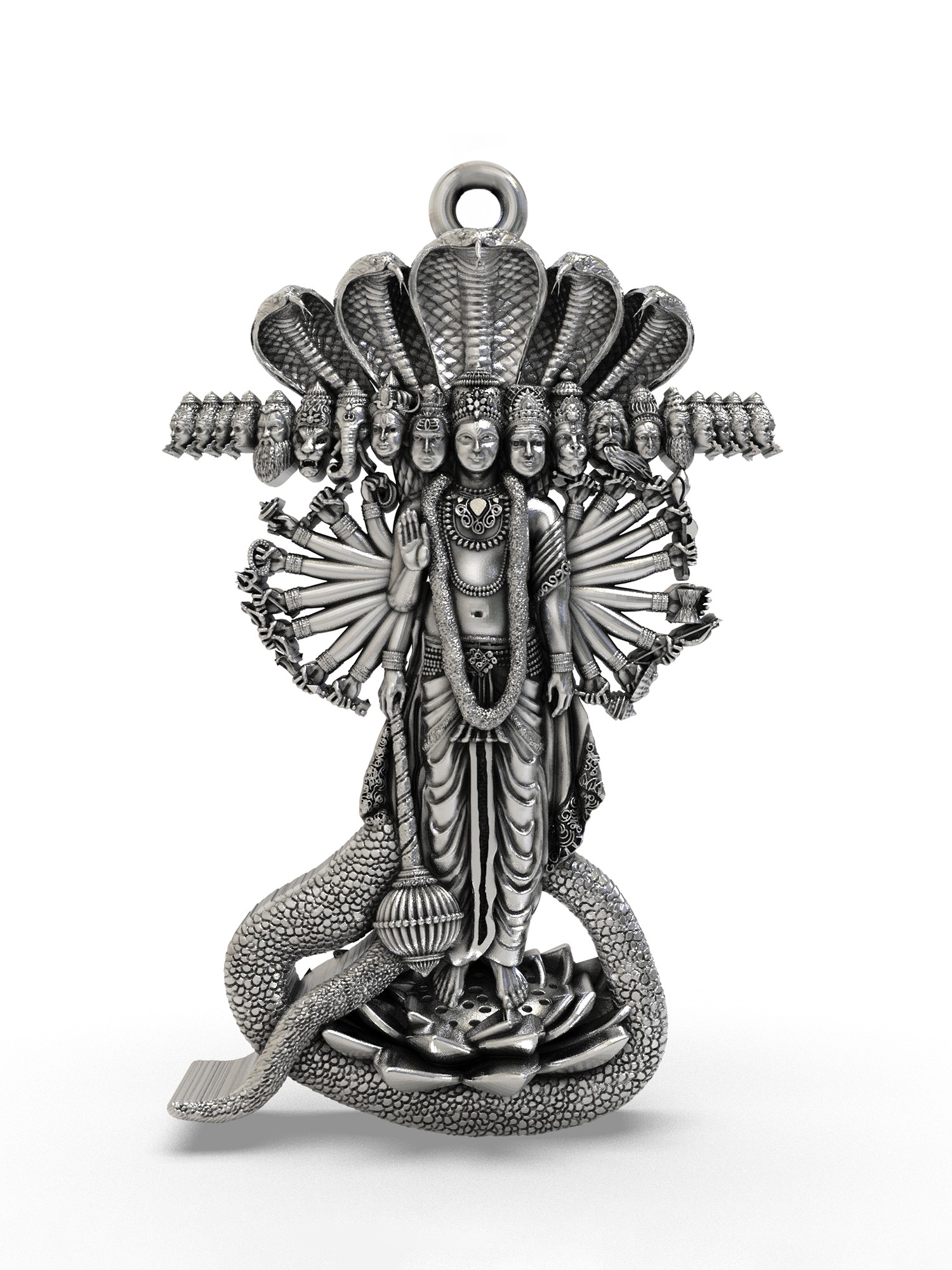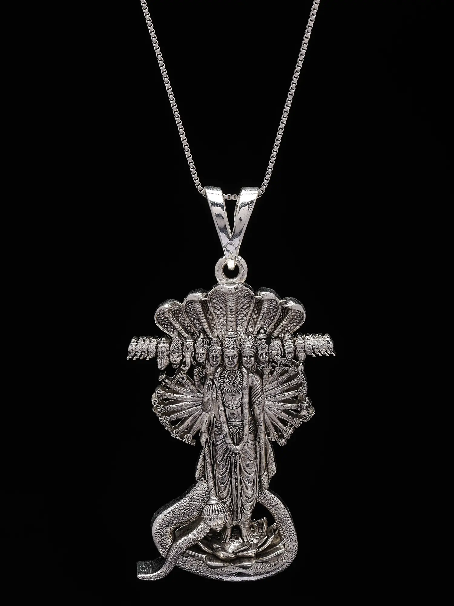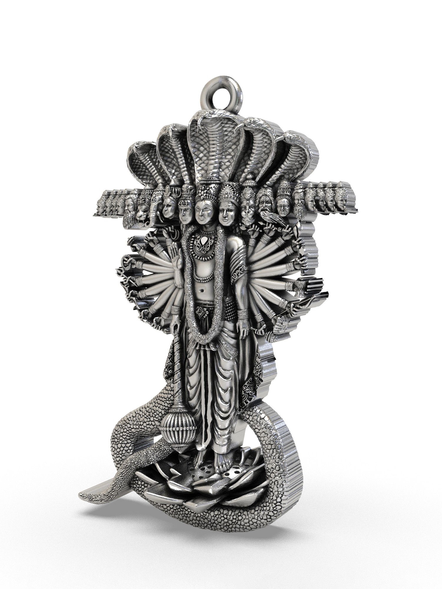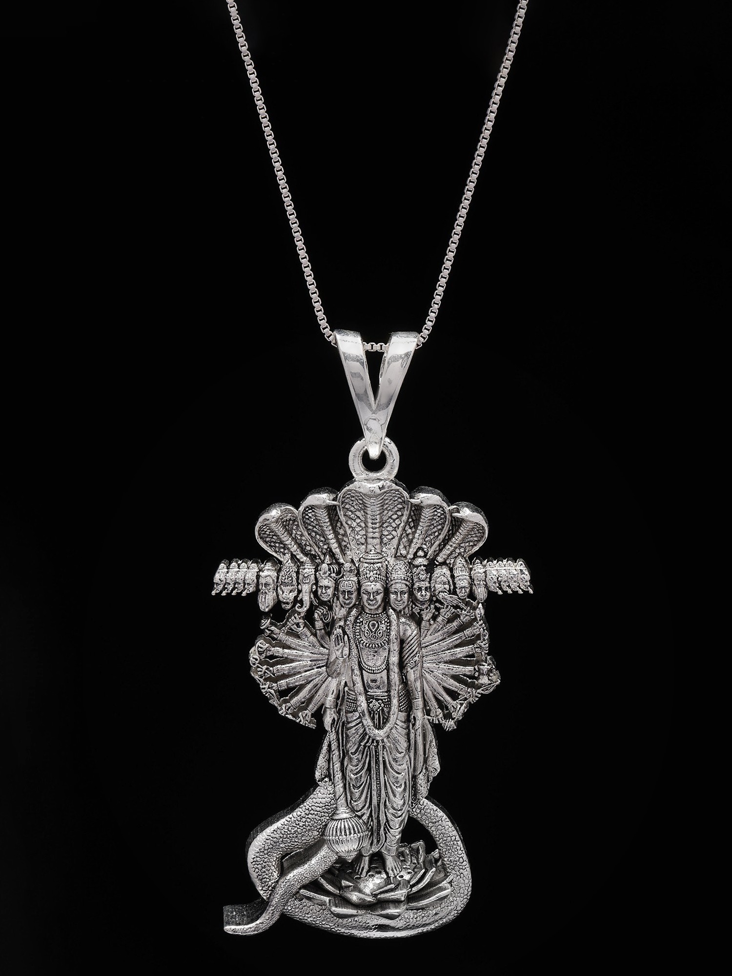 Chaturbhuja Vishnu Pendant with Pitra Dosh Nivaran Yantra on Reverse (Two Sided Pendant)