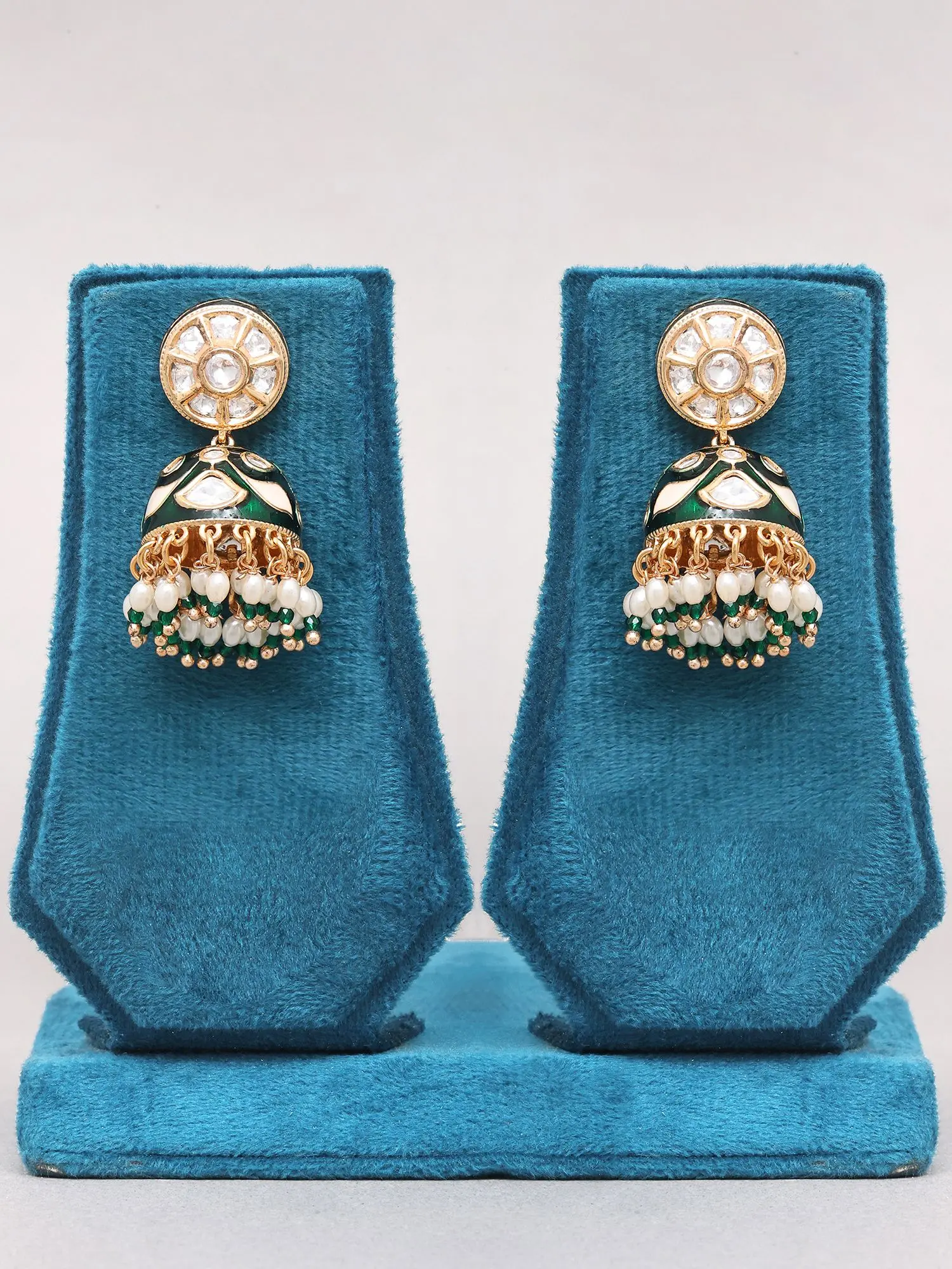 Adorned with intricate Kundan work and vibrant Meenakari detailing.
