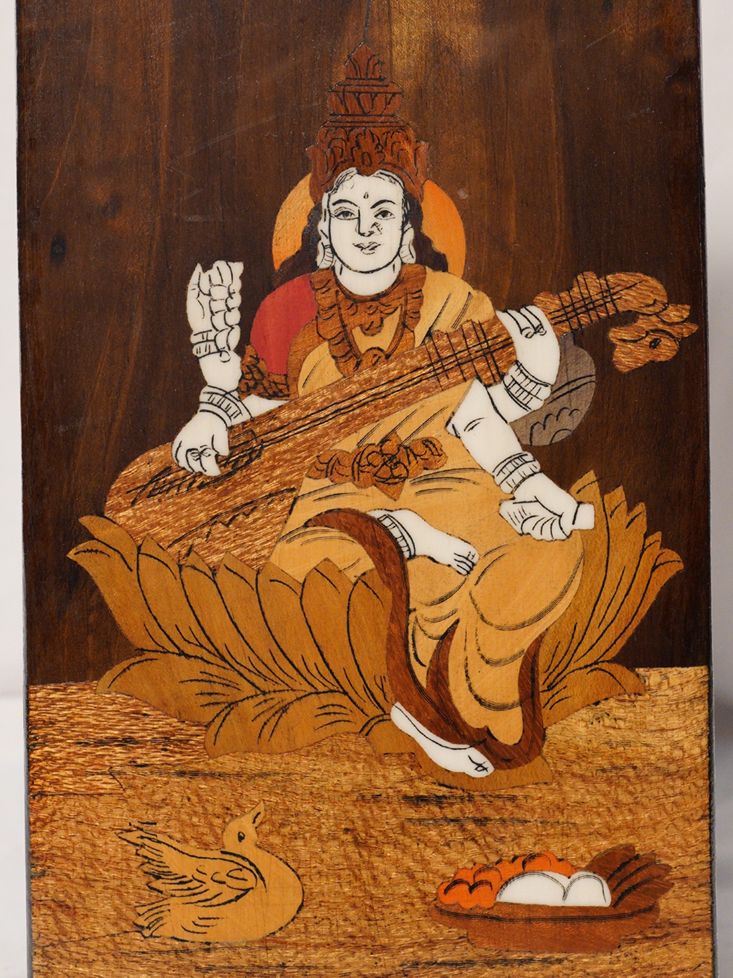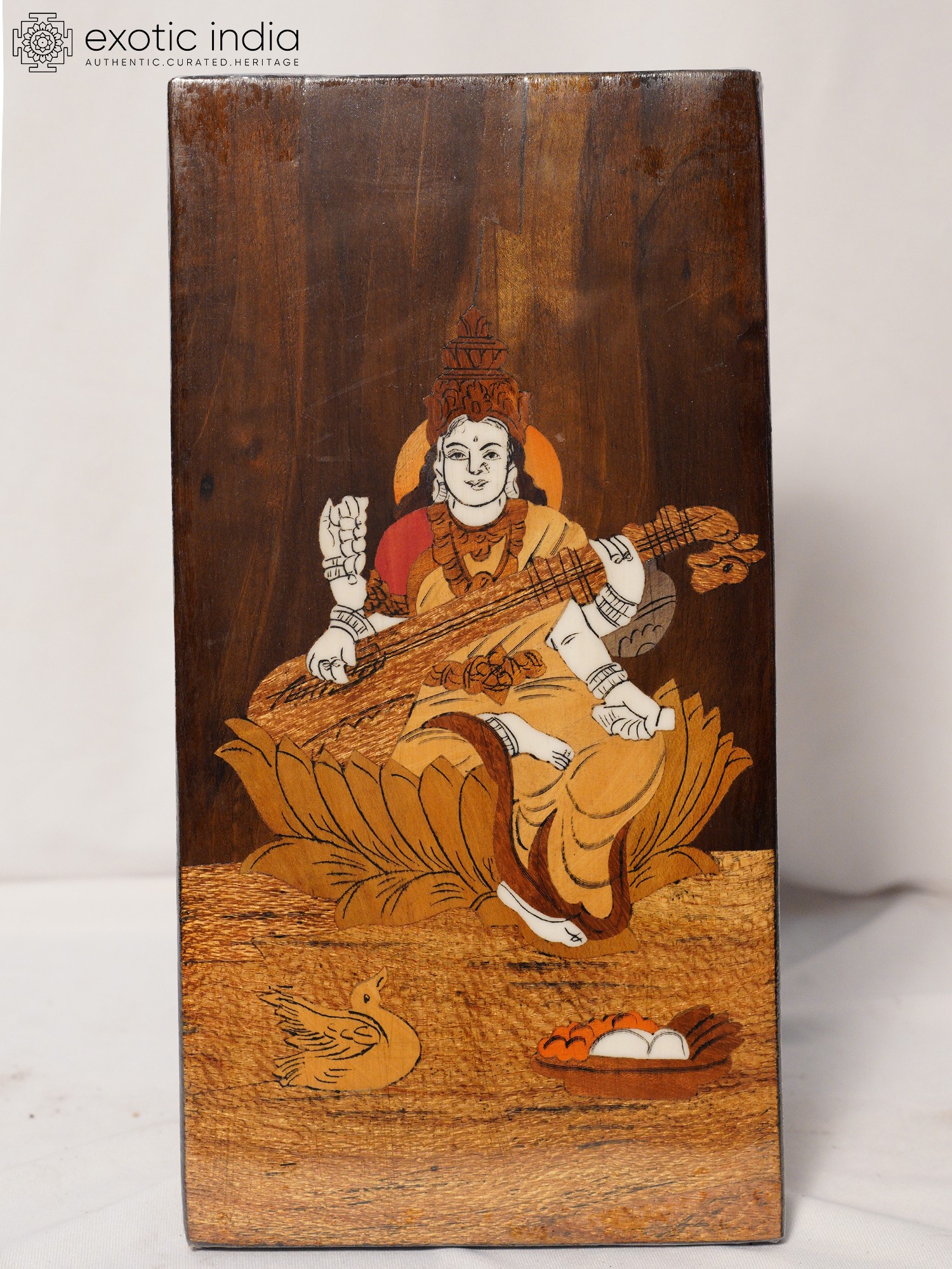19" Four Armed Goddess Lakshmi | Rosewood Panel With Inlay Work