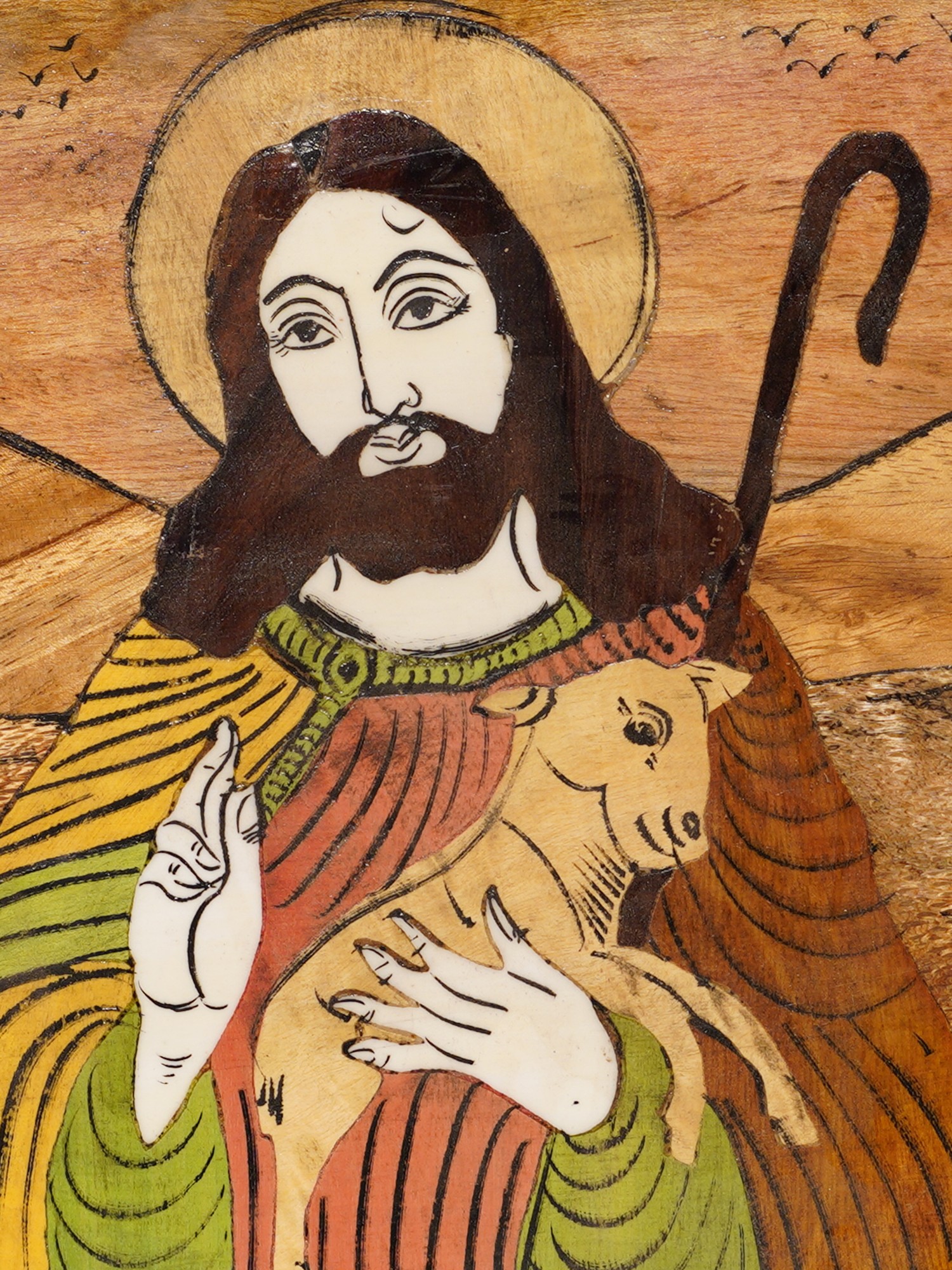 36" Beautiful Story Of Jesus Christ | Natural Color On Wood Panel With Inlay Work
