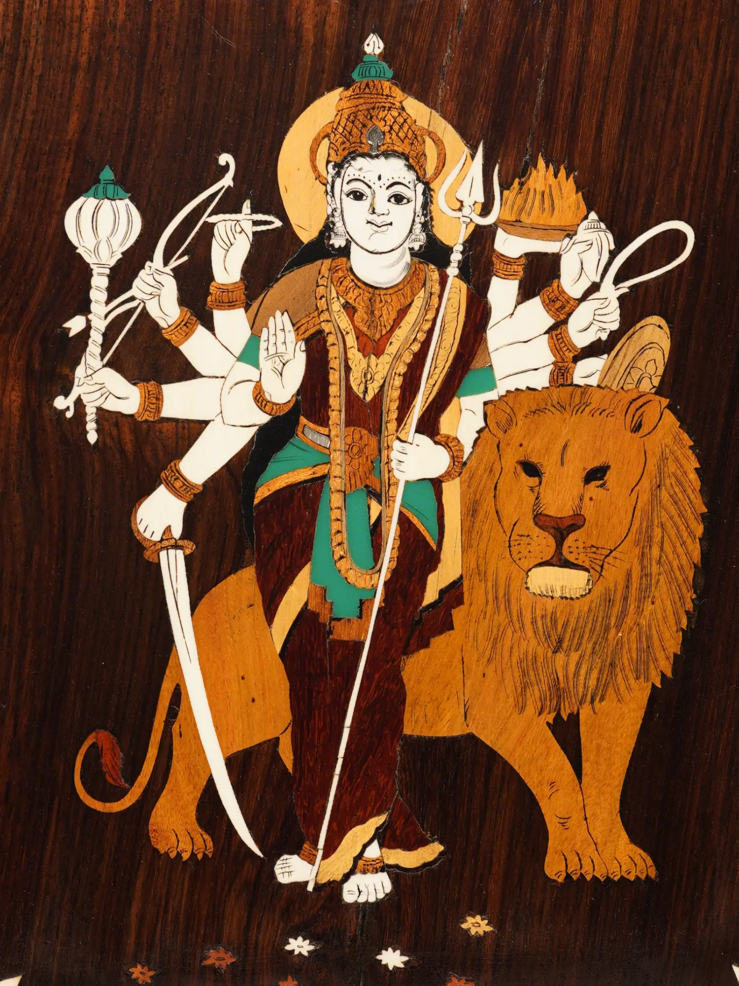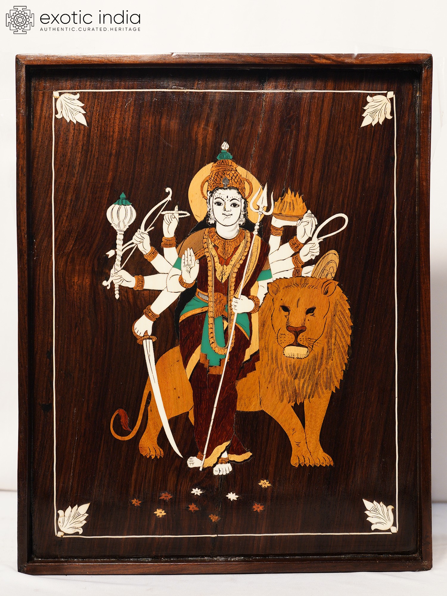 12" Mahalakshmi - Goddess Of Wealth | Rosewood Panel With Inlay Work