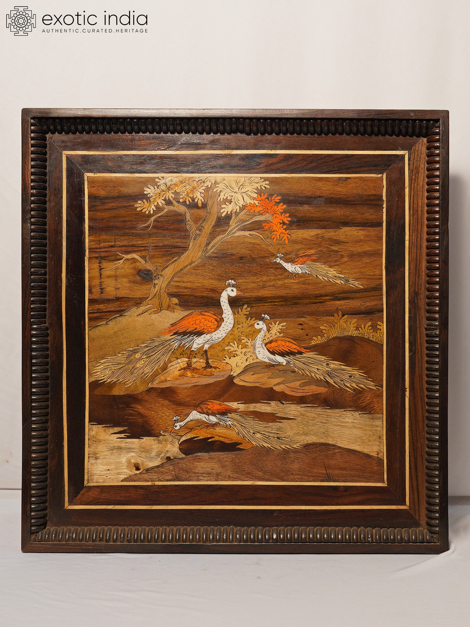 20" Women Filling Water Pots On River Side | Natural Color On Wood Panel With Inlay Work