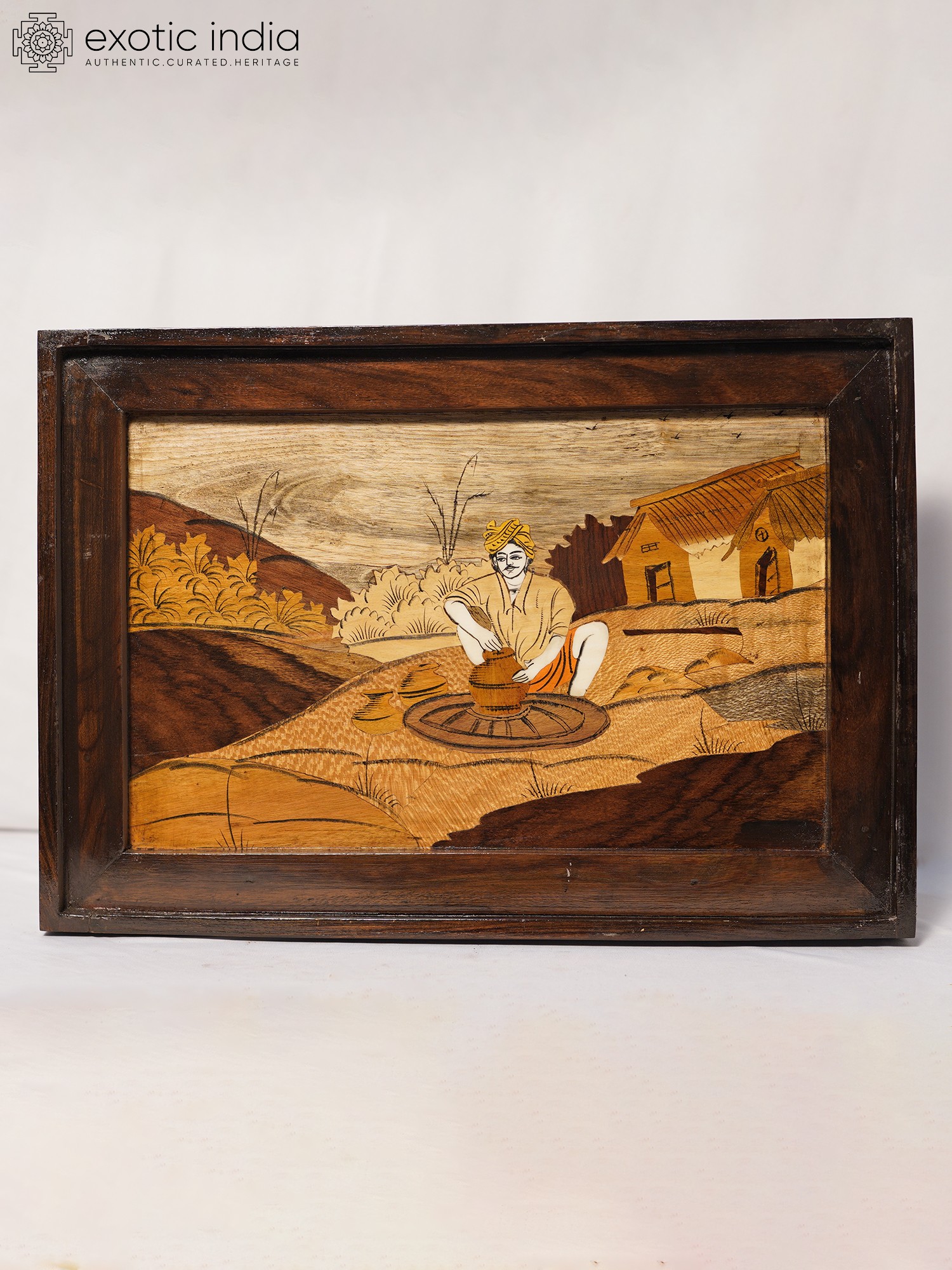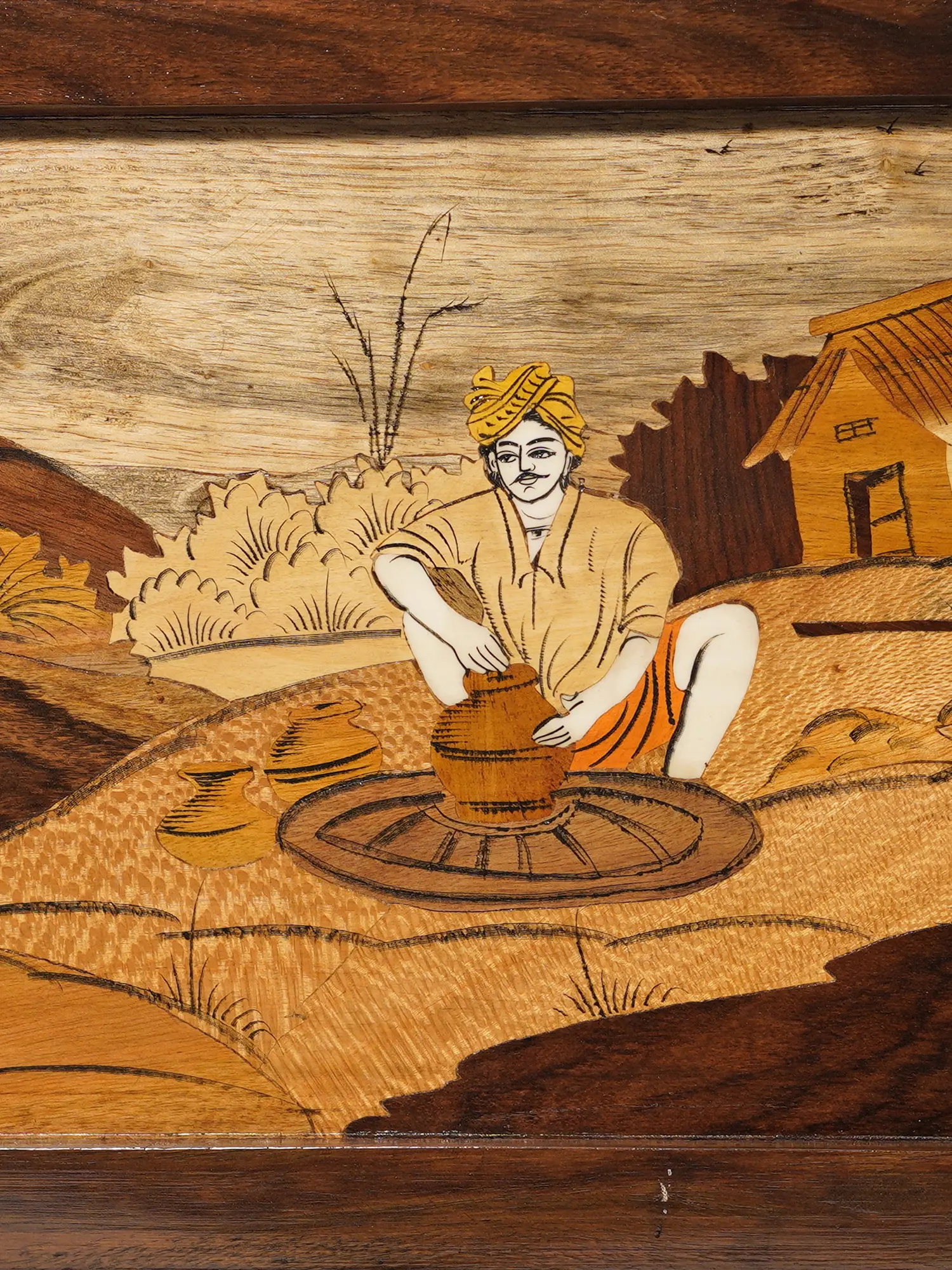 30" Working Farmers - Rural View of Village | 3D Wood Panel with Inlay Work