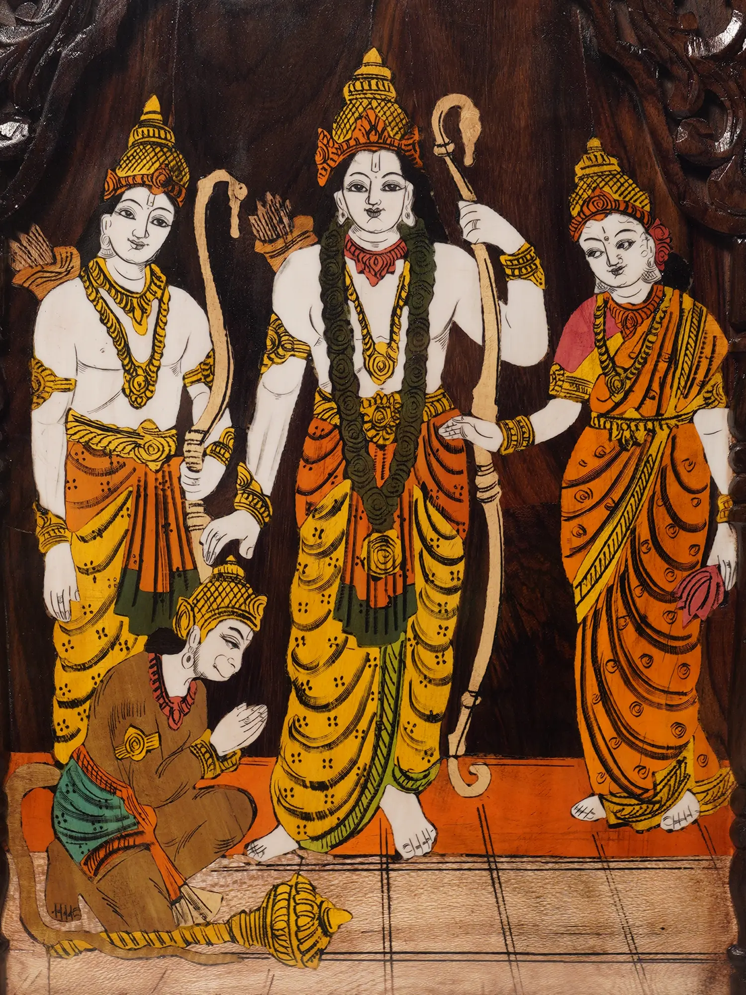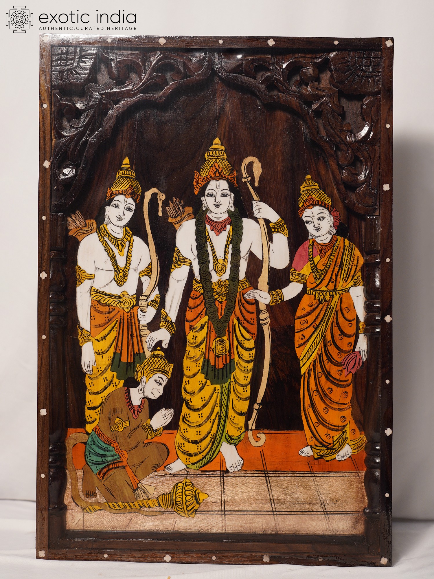 24" Sanjivani Hanuman | 3D Wall Panel in Rosewood with Inlay Work