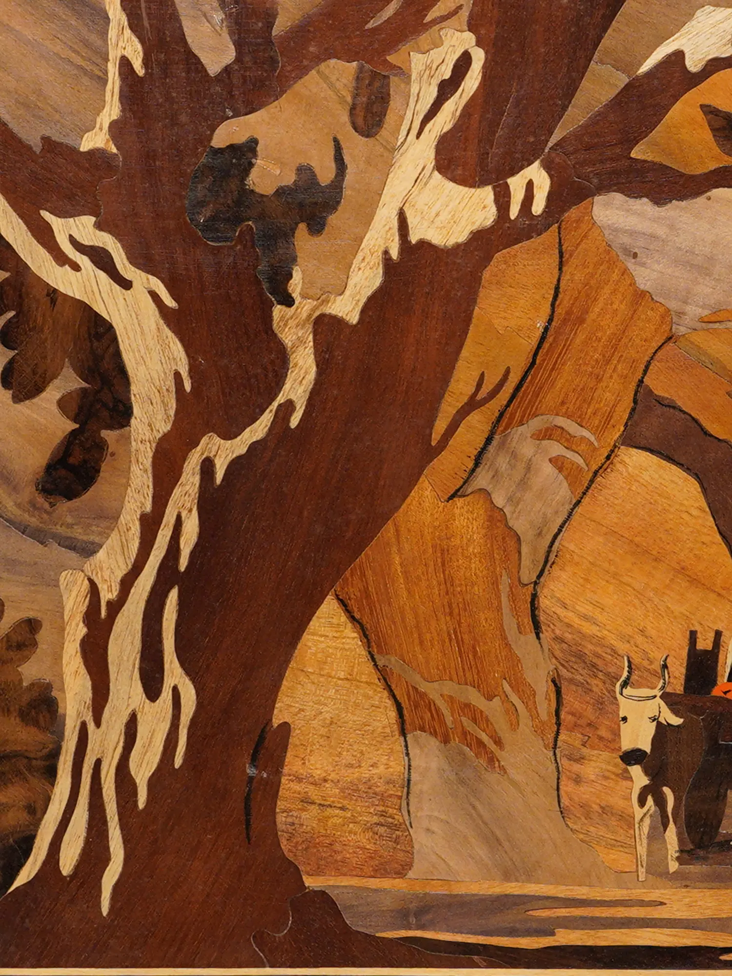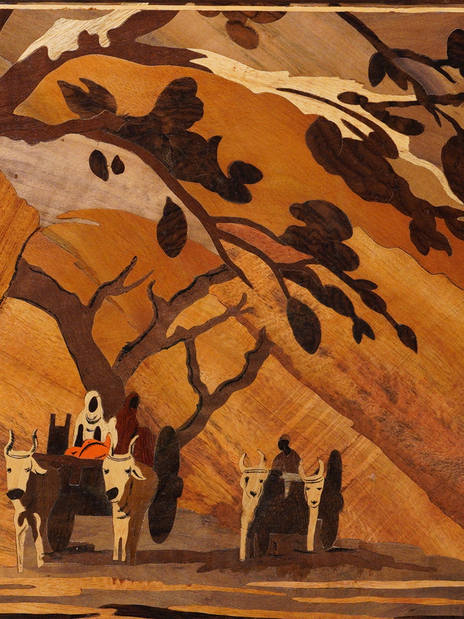 Villager Riding Bullock Cart | Wood Panel with Inlay Work