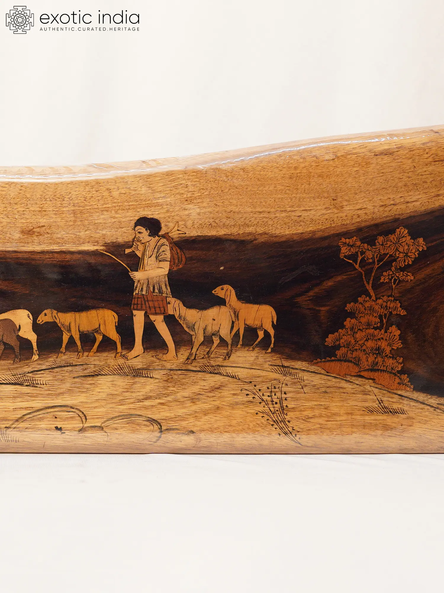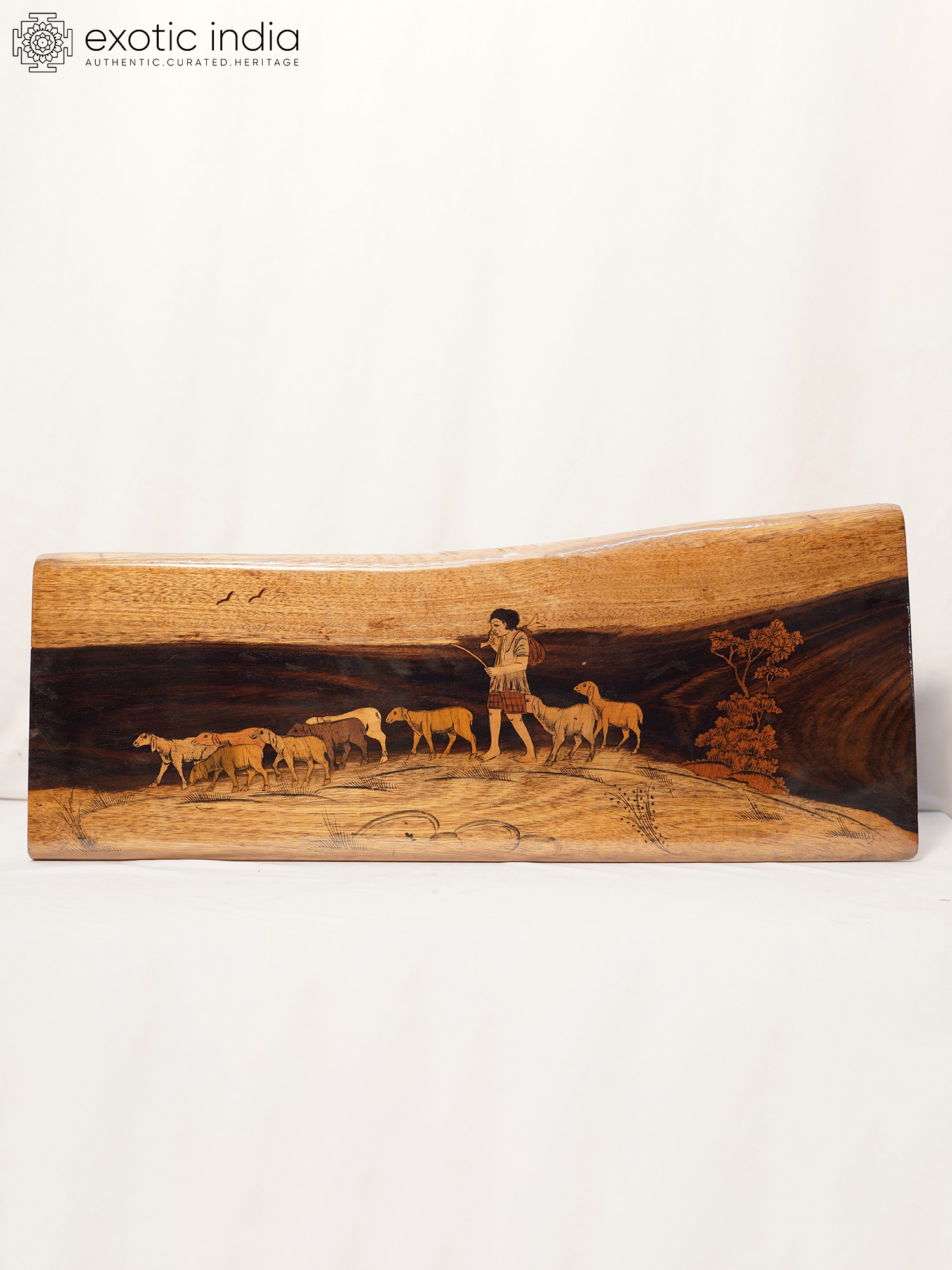 36" Beautiful View Of Rural Life Style | Natural Color On Wood Panel With Inlay Work
