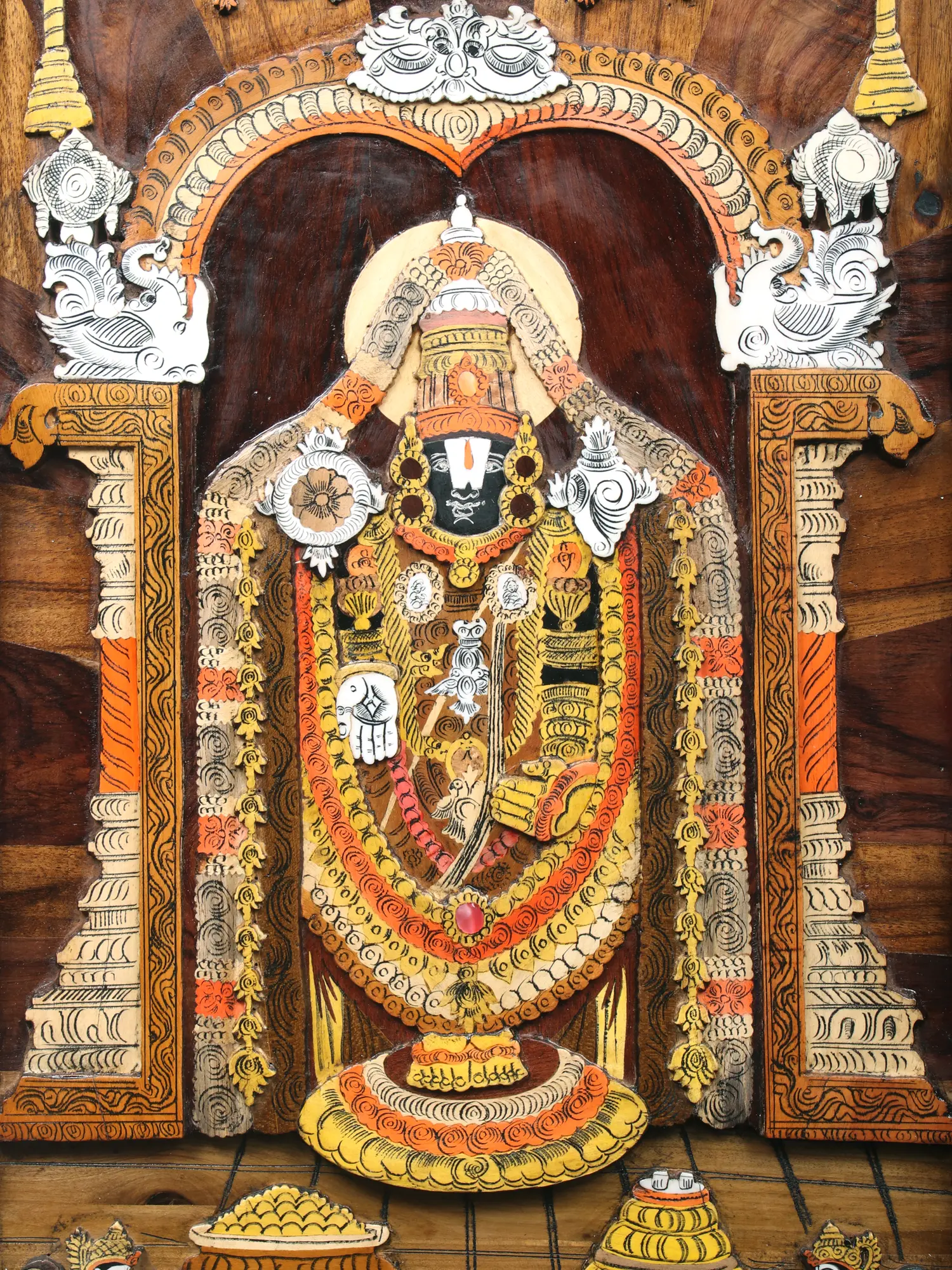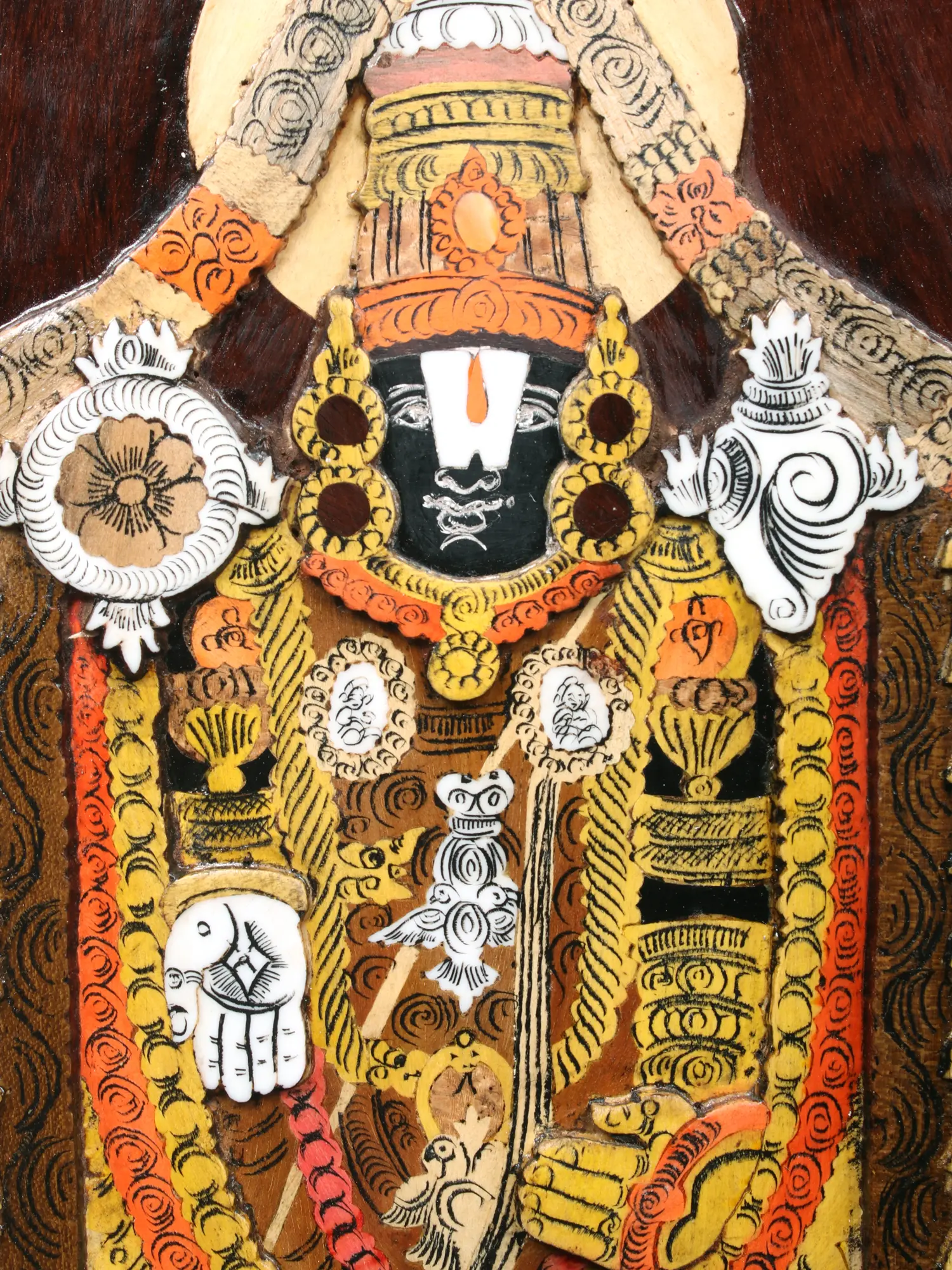 30" Lord Tirupati Balaji - Rajbhog | Natural Color On 3D Wood Painting With Inlay Work