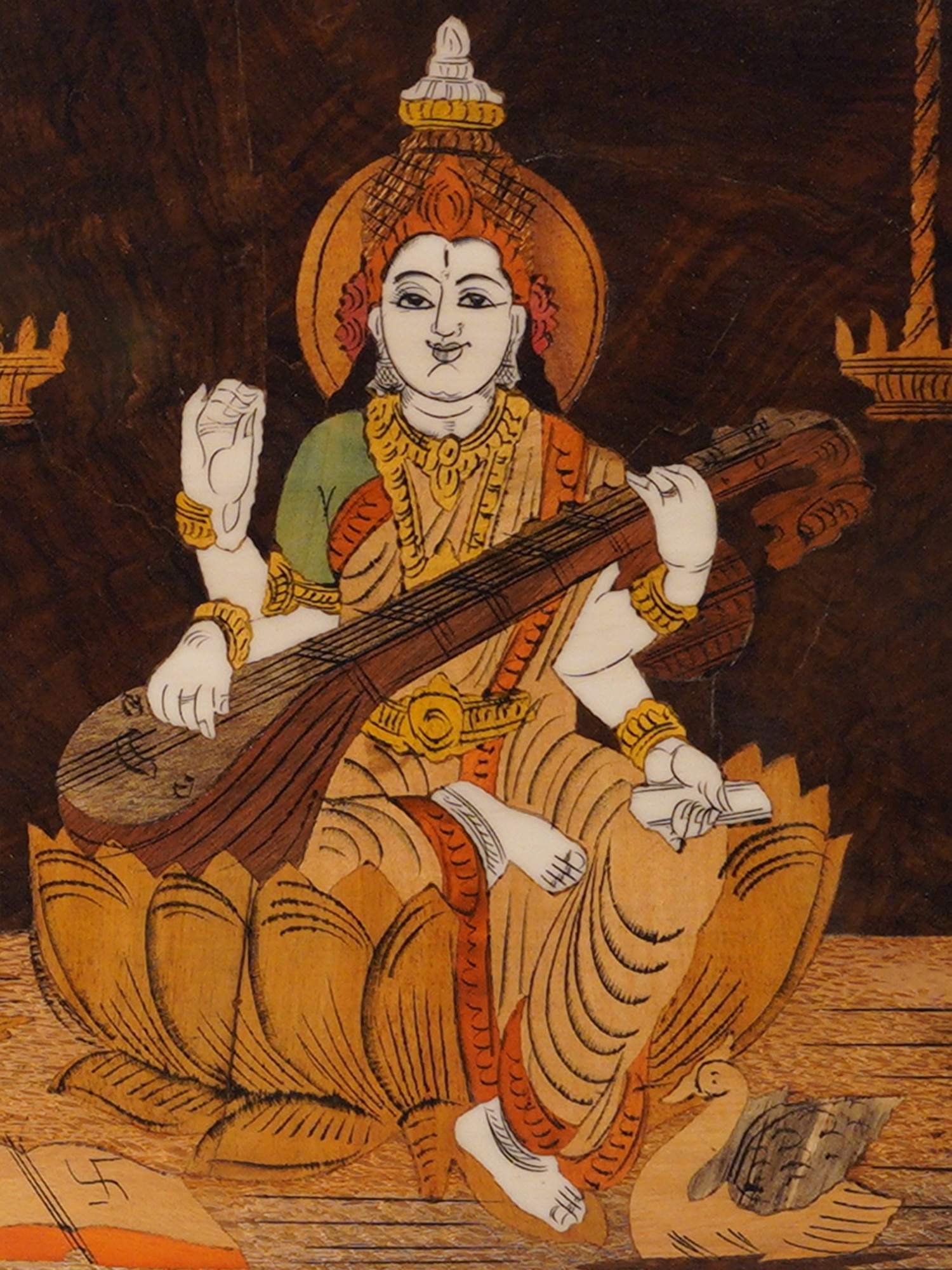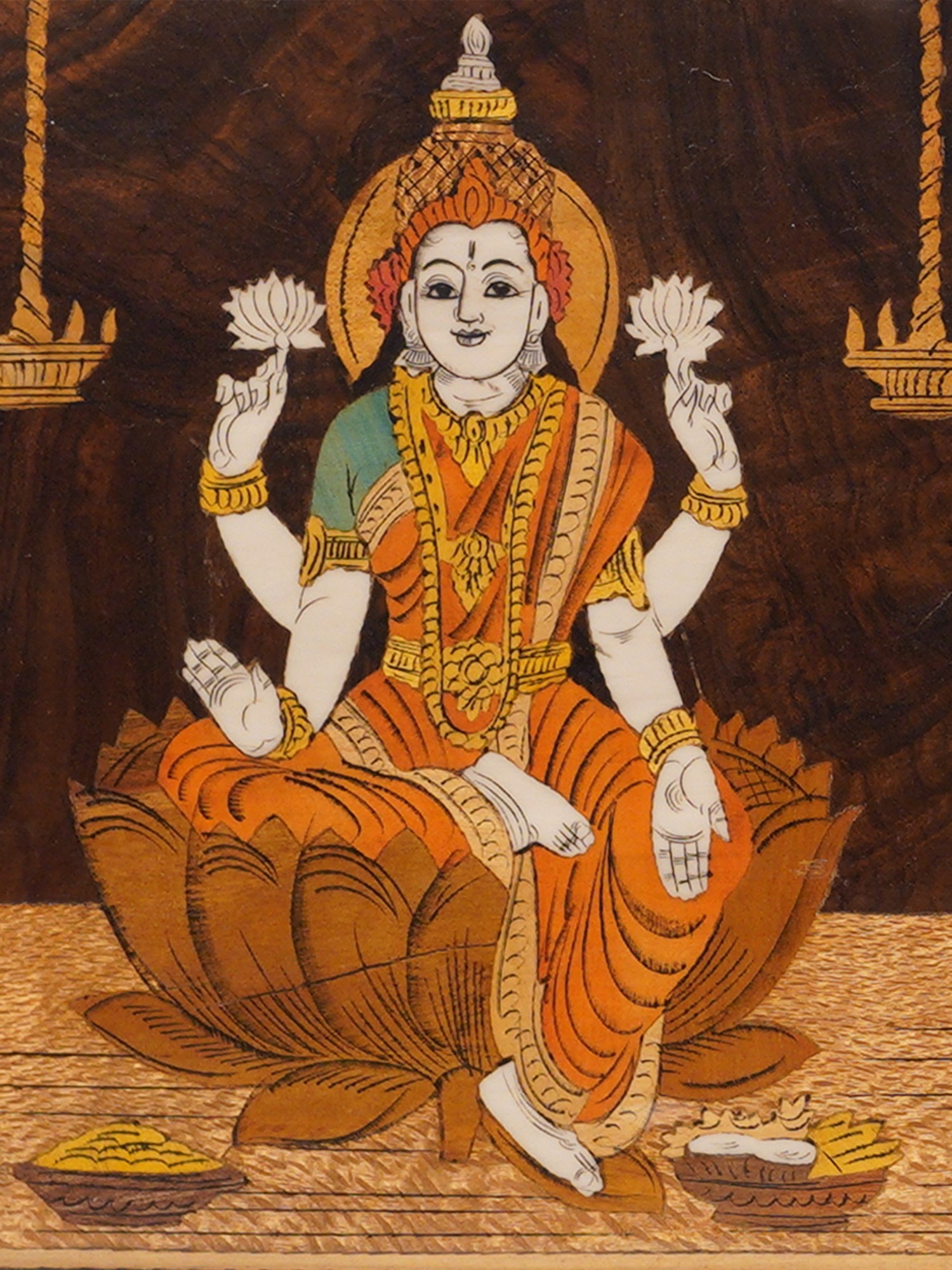 30" Hand Painted Lakshmi, Ganesha And Saraswati | | Natural Color On Wood