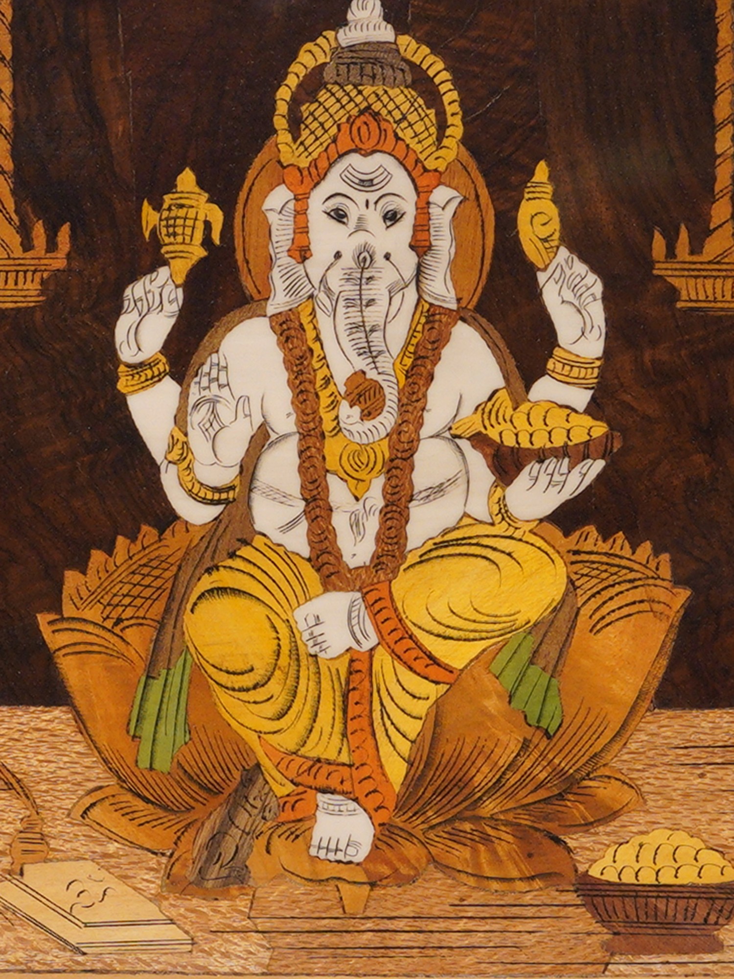 26" Chaturbhuja Lord Ganesha With Trident | Rosewood Panel With Inlay Work