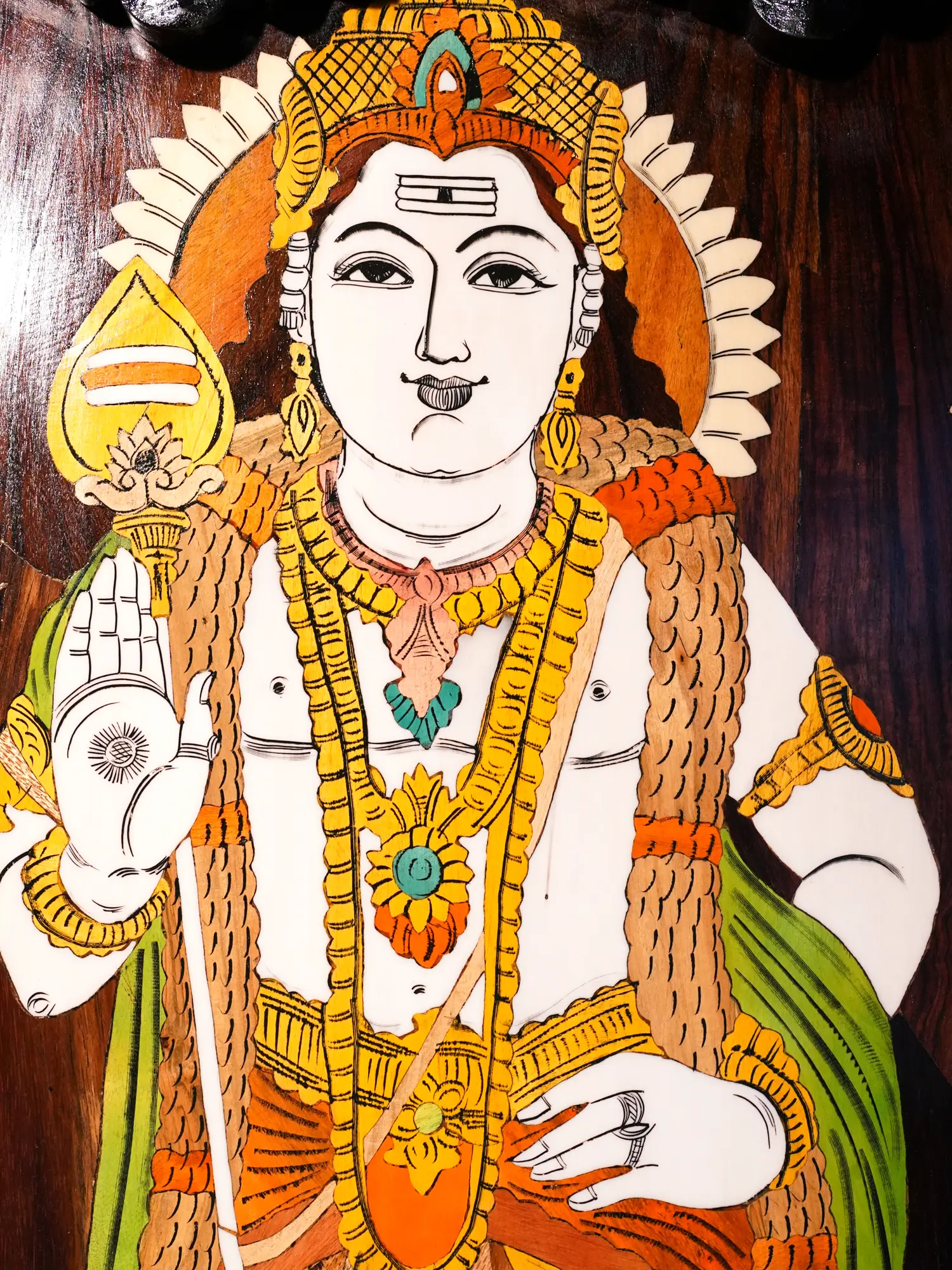 36" Divine Lord Murugan | Natural Color On Wood Panel With Inlay Work