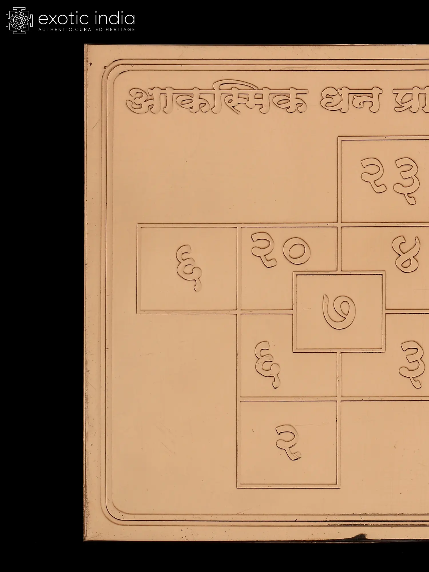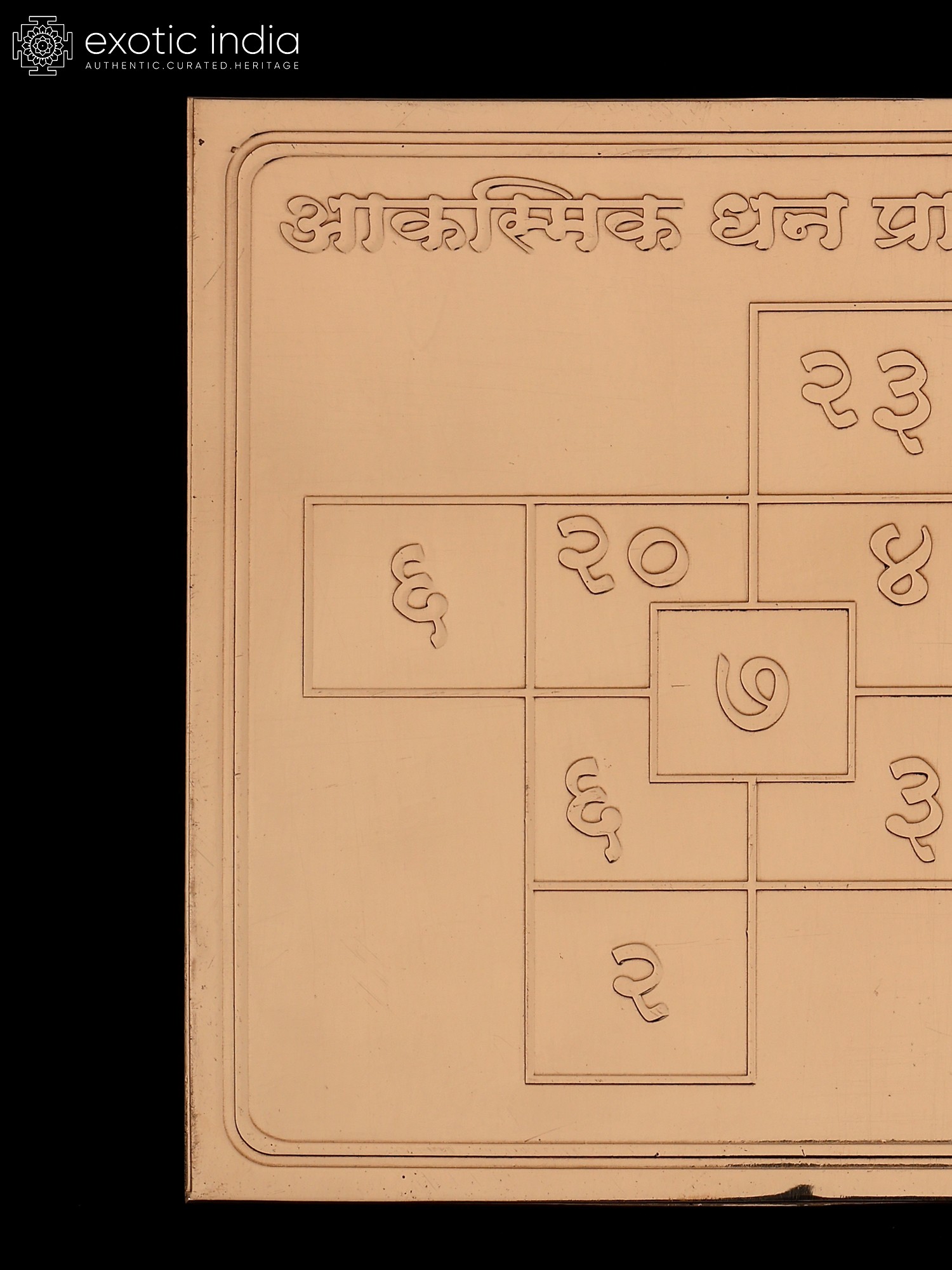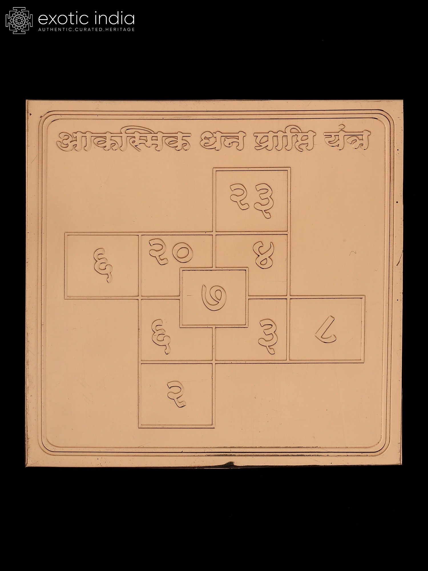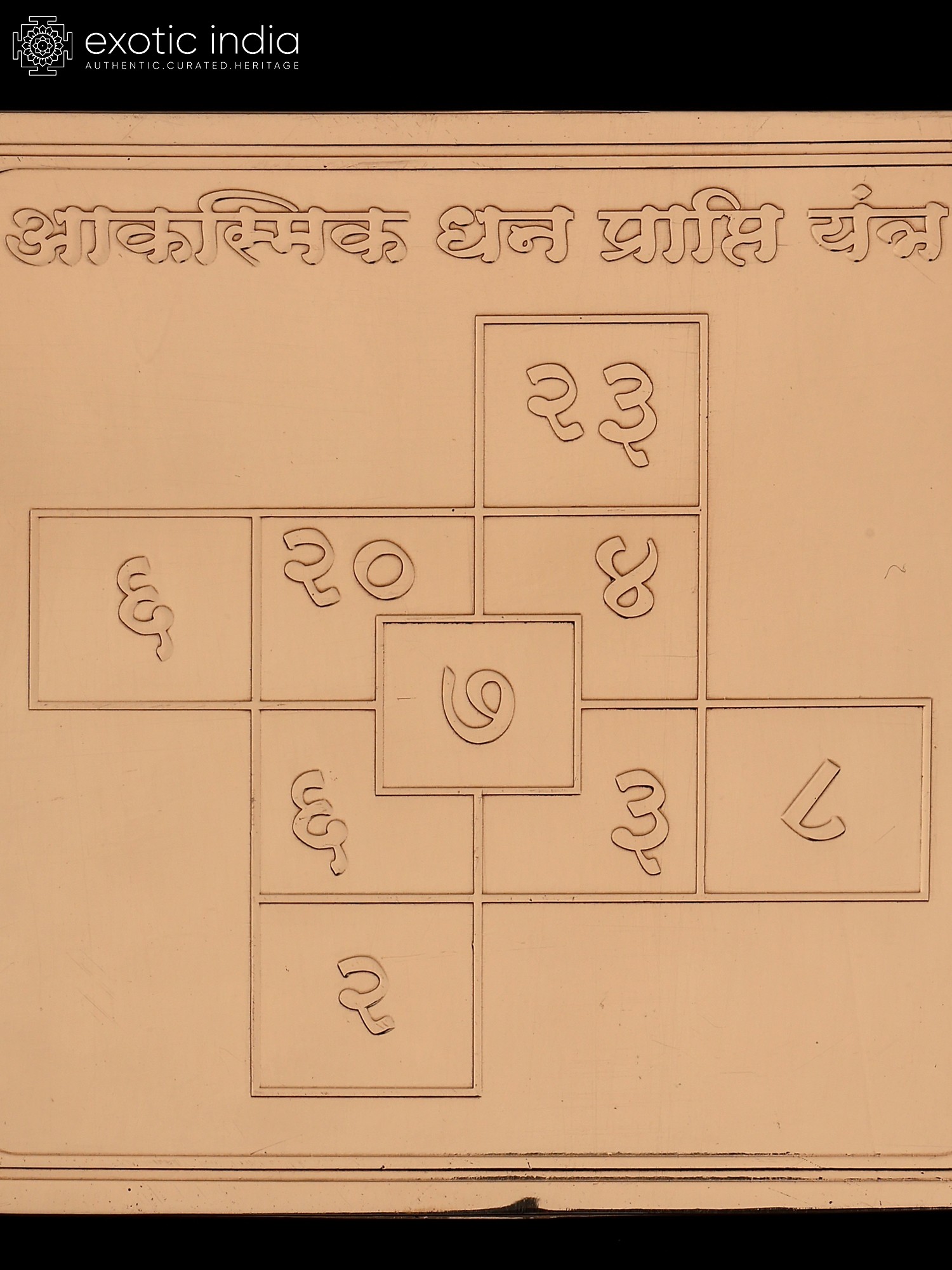 Embark on a journey towards financial prosperity with this exquisitely crafted copper Yantra, designed to draw serendipitous wealth into your life. The Sanskrit inscription at its apex, "आकस्मिक धन प्राप्ति यंत्र" (Akasmik Dhan Prapti Yantra), translates to "Instant Wealth Attraction Yantra," a clear declaration of its potent purpose. This sacred geometric diagram, intricately etched onto a durable copper plate, is more than just an artifact; it is a conduit for divine blessings and a focal point for manifesting abundance.