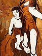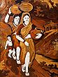 15" Cowherding Lady | Natural Color on Wood Panel with Inlay Work