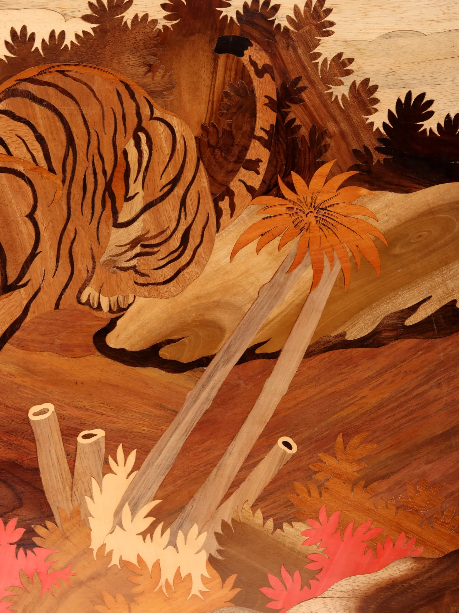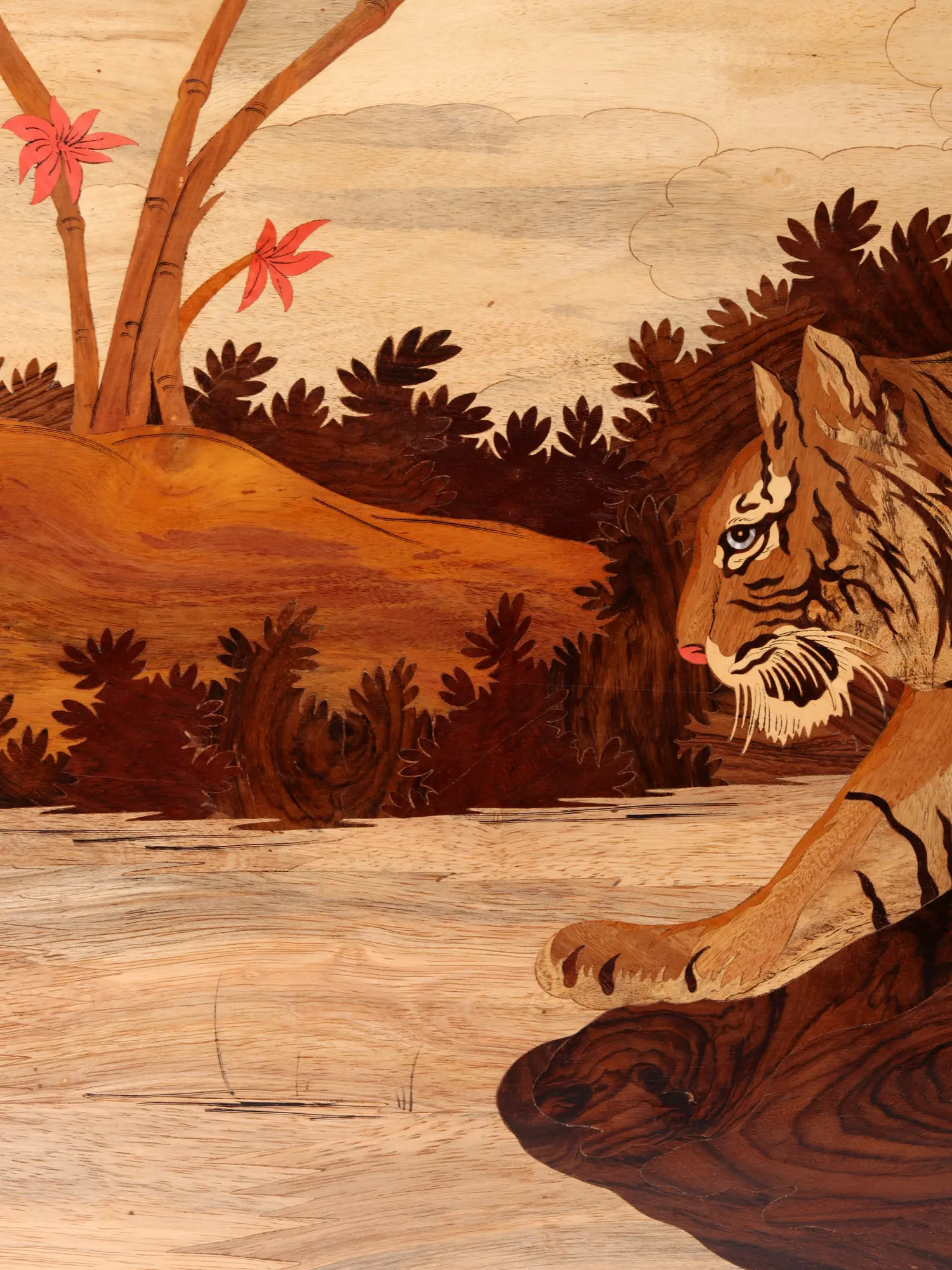 48" Hunting Tiger | Natural Color On Wood Panel With Inlay Work