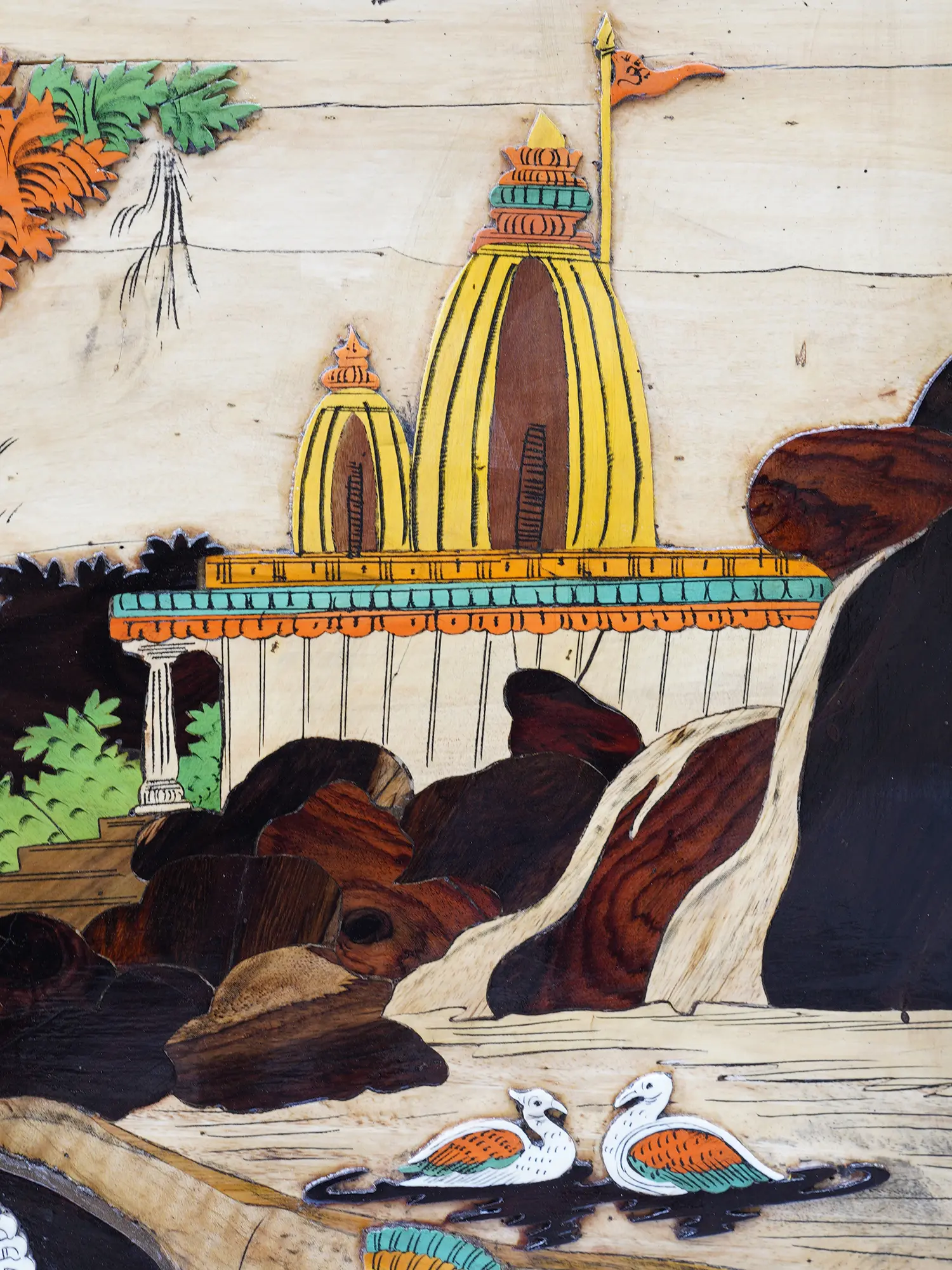61" Radha Krishna Swinging in the Vana | Rosewood 3D Panel with Inlay Work