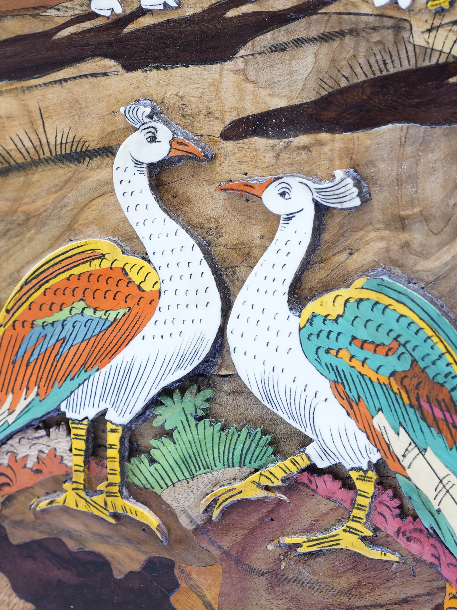 48" Divine Radha And Krishna In Vrindavan | Natural Color On 3D Wood Painting With Inlay Work