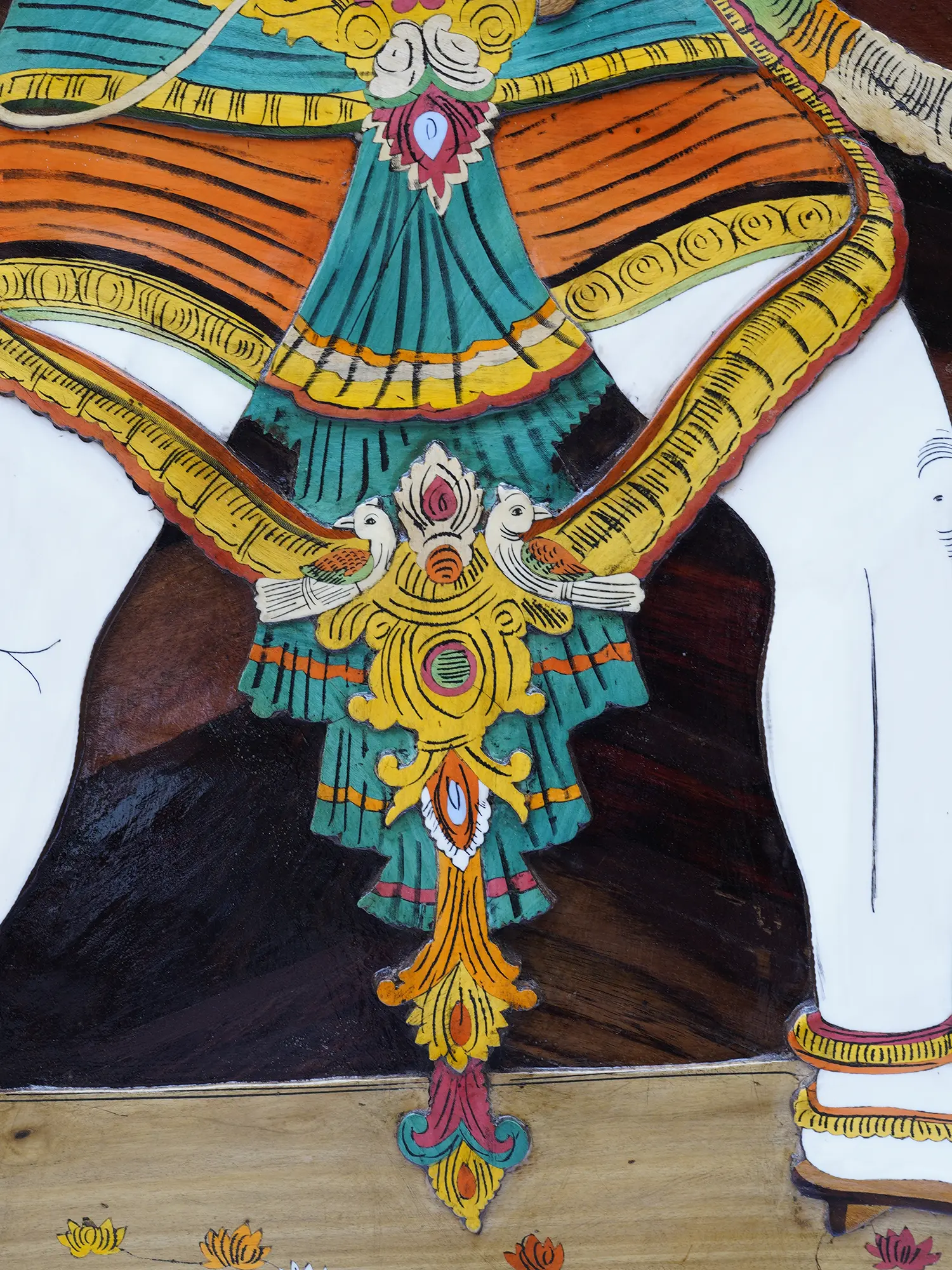 36" Lord Narsimha With Goddess Lakshmi | Natural Color On 3D Wood Painting With Inlay Work