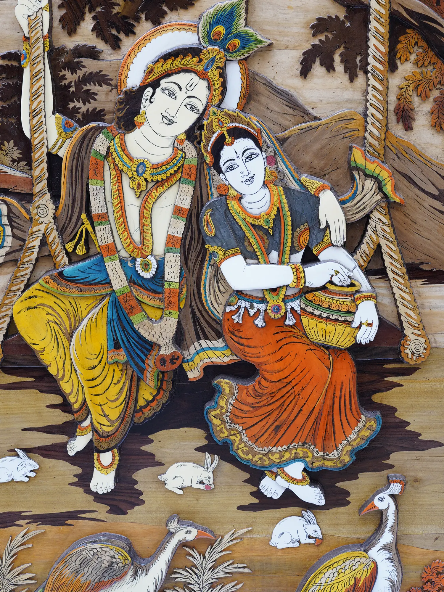 96" The Great Life Story of Radha Krishna | Rosewood 3D Panel with Inlay Work